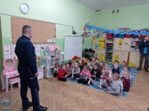 W ostatnim tygodniu przed przerwą zimową dla uczniów szkół m.in. województwa kujawsko-pomorskiego mł. asp. Andrzej Marks – dzielnicowy z Kcyni, przeprowadził pogadanki dla dzieci z oddziałów od zero do pięć Szkoły Podstawowej w Mycielewie. Wychowankowie placówki oświatowej rozmawiali o niebezpieczeństwach czyhających podczas ferii zimowych.