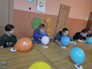 Druga część warsztatów fizyczno-magicznych odbyła się 15 listopada 2022 roku dla nieco starszych uczniów z oddziałów III-VI. Tym razem uczestnicy zbudowali własnego poduszkowca, poznając jego działanie i zastosowanie. Gotowe prace zabrali do domu, aby przekazać zdobyte doświadczenie rodzinie. Wielkie pobudzenie wzbudziła przejażdżka modelem poduszkowca po korytarzu świetlicy.
