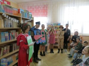 Podróż „Lokomotywą” J. Tuwima mile zaskoczyła dzieci. Wszystkie napotkane po drodze przeszkody udało się szczęśliwie pokonać, dzięki czemu drzwi biblioteki otworzyły się dla pierwszoklasistów. Tam na dzieci czekała „Królowa Książka”, która przypomniała jak należy postępować z pożyczonymi lekturami. Dzieci złożyły uroczyste przyrzeczenie i zostały pasowane na czytelników przez panią bibliotekarkę.