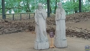 Wielką atrakcją była dla nas przeprawa tratwą przez jezioro Lednica, a padający przez chwilę deszcz, pdkreślał dodatkowo uroki zwiedzanych miejsc.