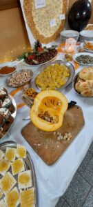 Dynię dobrze zbadaliśmy, poznaliśmy jej walory zdrowotne, a także różnorodność. Dowiedzieliśmy się że występuje ona w różnych rodzajach, których zastosowanie wciąż jest nieograniczone i daje szeroki wachlarz możliwości kulinarnych. Już w czwartek zaczęły się pierwsze przygotowania, klasa pierwsza wykonała przekrój dyni z dynioliny, a także pyszne kanapki z dżemem dyniowym. Klasa druga przygotowała zupę dyniową w dwóch wersjach, z gruszką i dyni pieczonej z aromatycznymi ziołami. Klasa trzecia na technice wykonała dynie z rolek papieru, które pięknie przystroiły nam stołówkę nadając charakterystyczny jesienny klimat, a do posmakowania dostaliśmy ketchup dyniowy. Stołówkę wypełniły również inne dania z dyni takie jak babki dyniowe, bułeczki, dynia w occie, chipsy dyniowe, a nawet kompot. Oczywiście nie skupiliśmy się tylko na jej walorach smakowych, ale również działaliśmy technicznie, bo wykonaliśmy nietypowe latarnie z dyni, a także przeprowadziliśmy wspólną zabawę ruchową z dynią w tle.
