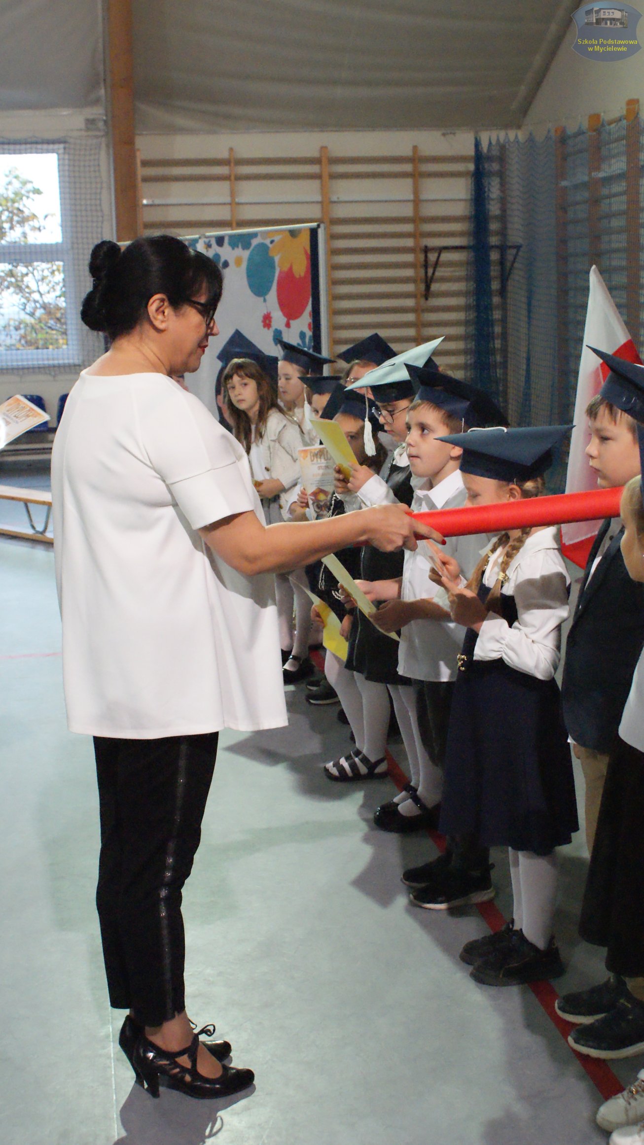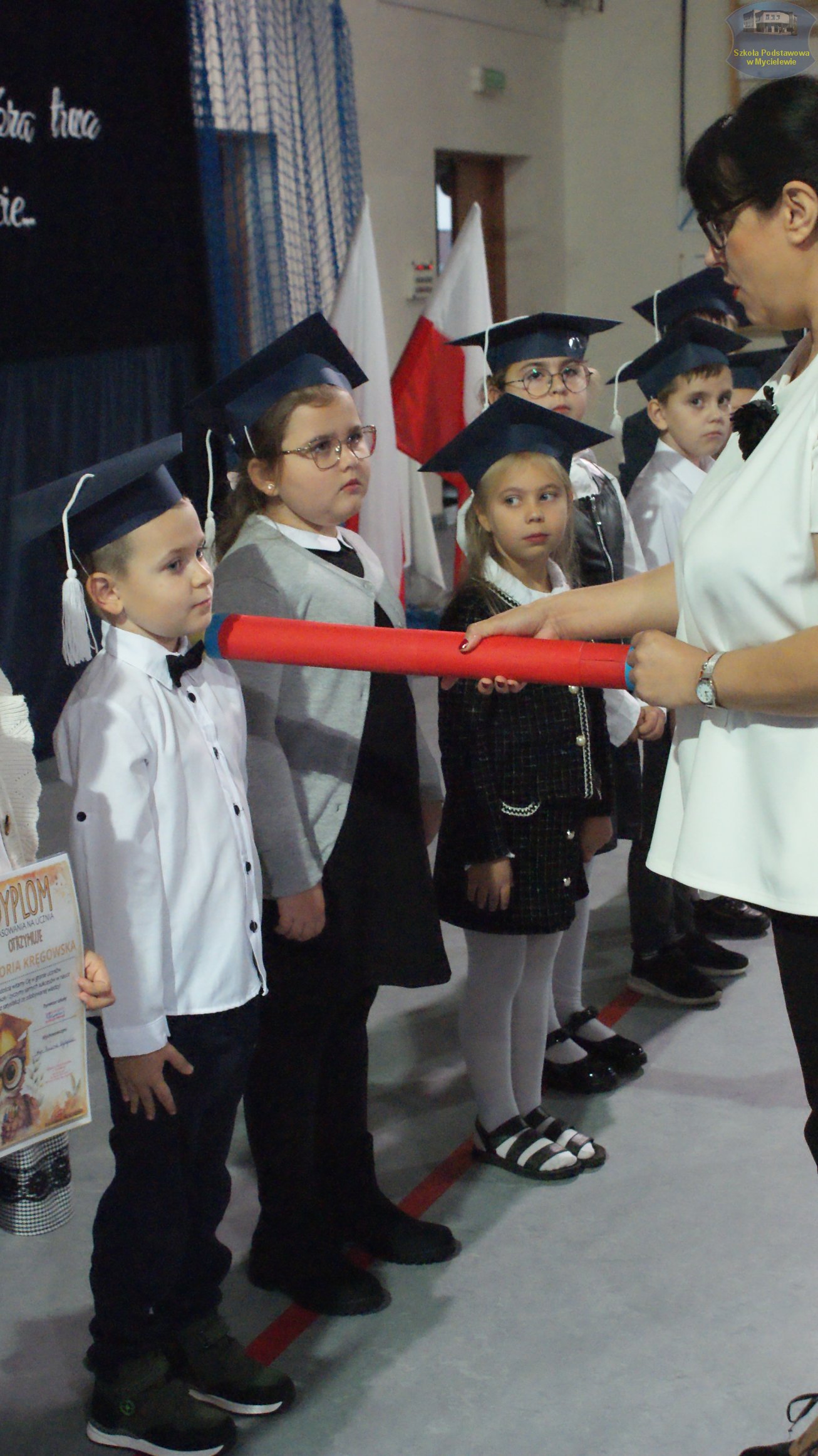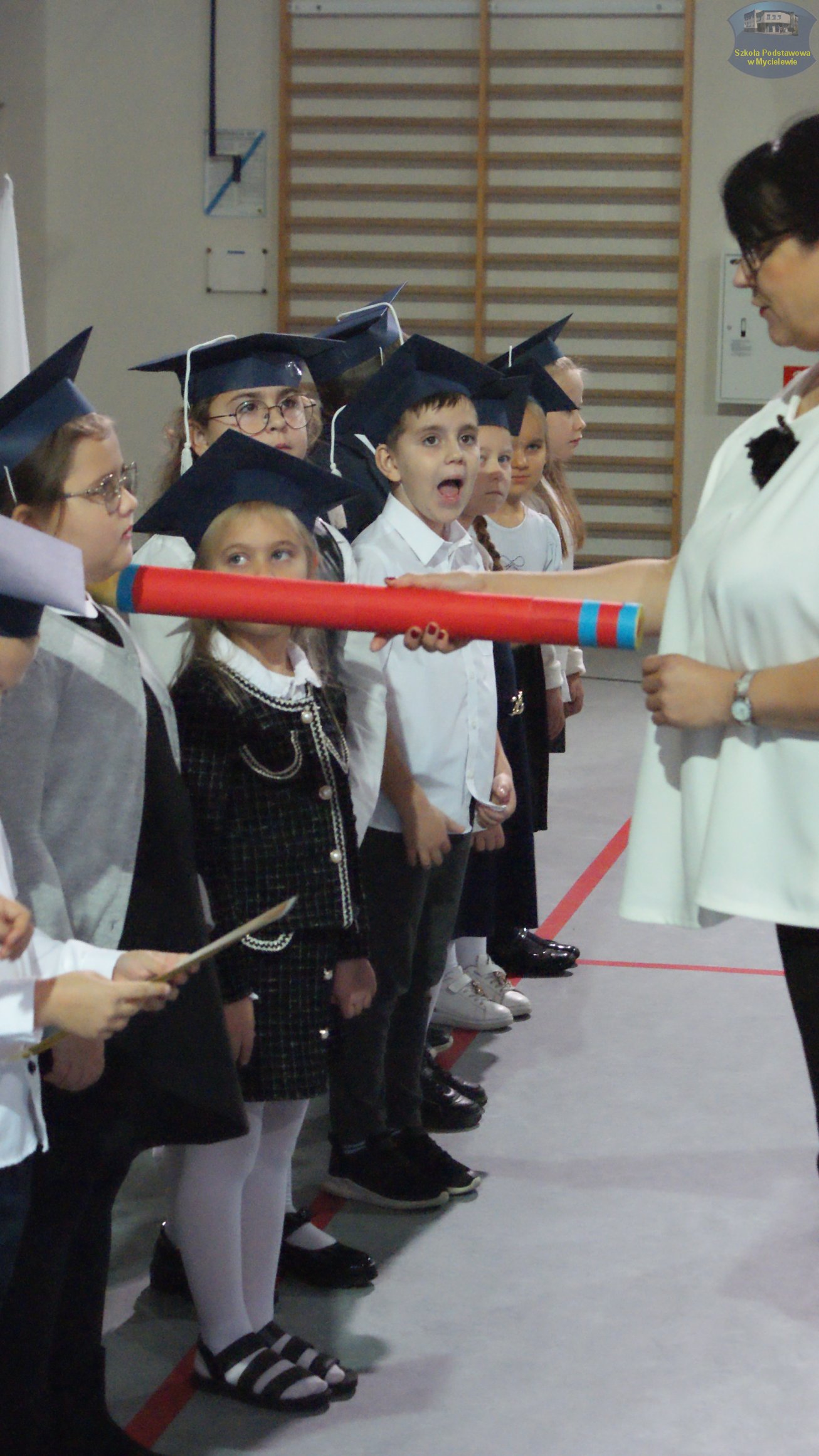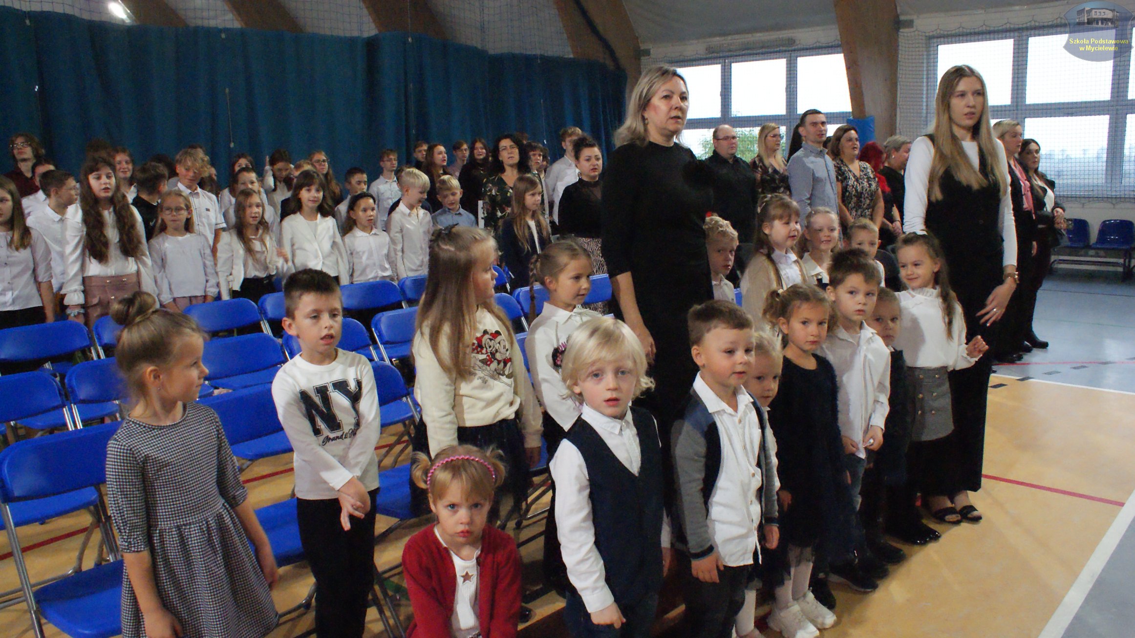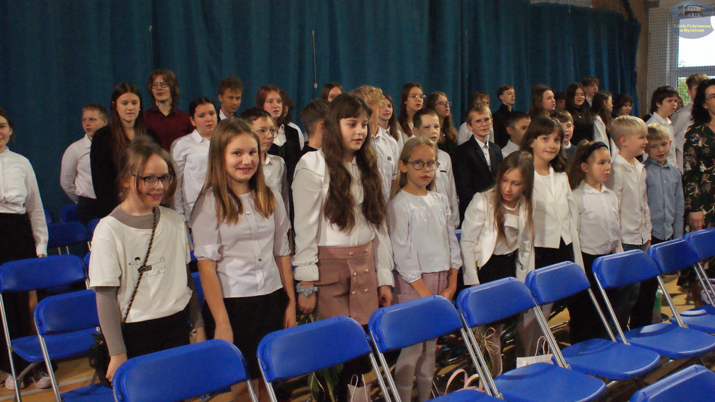 14 października 2025 roku w Szkole Podstawowej w Mycielewie odbyła się wyjątkowa uroczystość – Dzień Edukacji Narodowej, który na długo pozostanie w pamięci uczniów, nauczycieli, rodziców pierwszaków oraz pracowników szkoły. Tego dnia w murach naszej placówki panowała atmosfera podniosłości, wdzięczności i radości, a wspólne świętowanie stało się prawdziwym świętem edukacji, przyjaźni i szkolnej wspólnoty. Przygotowaniem i przebiegiem uroczystości zajęła się Paulina Dydyszko.