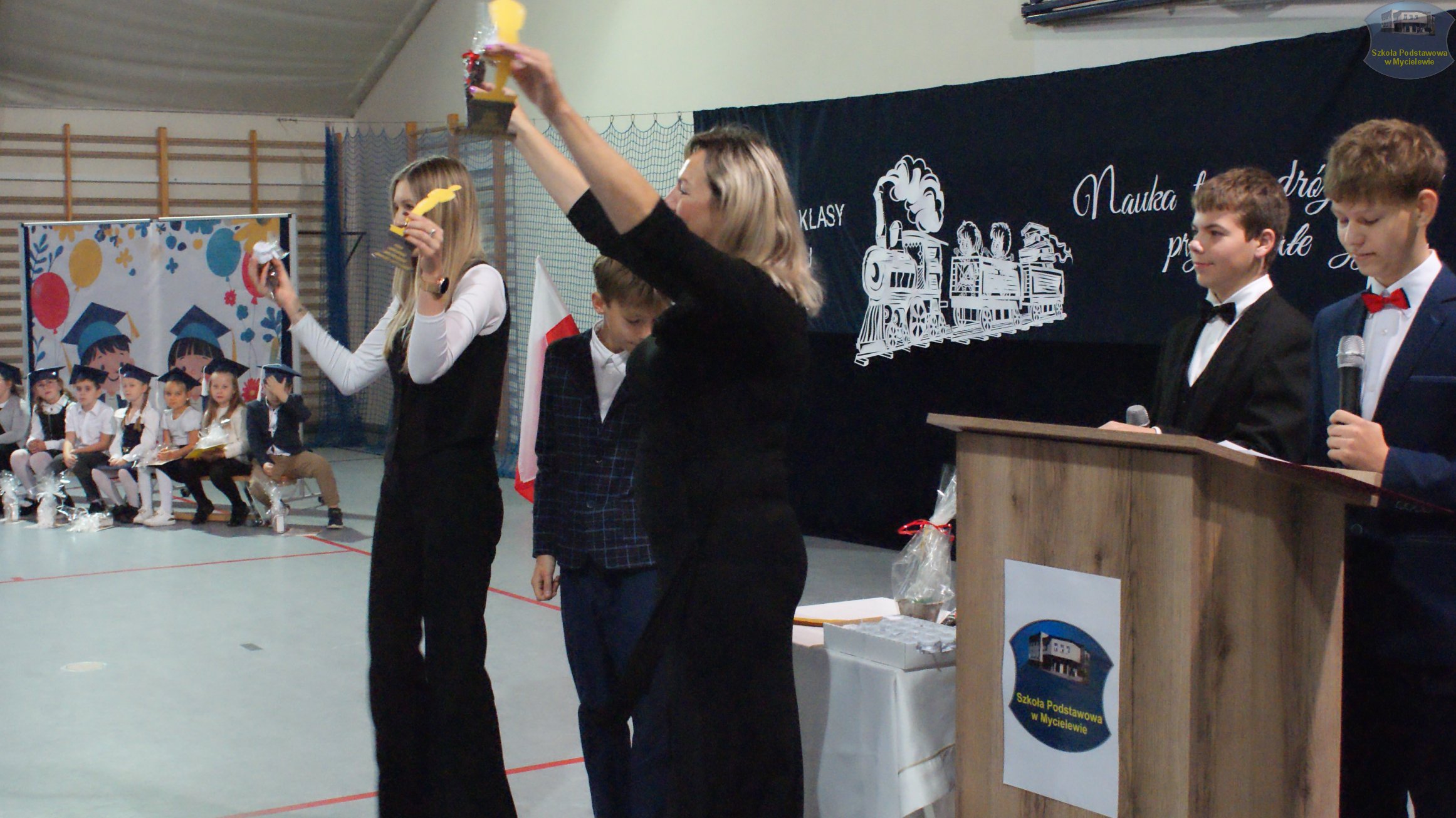 Podczas gali wręczono statuetki w 19 kategoriach, m.in.: „Szef wszystkich szefów”, „Gang Talesa i Archimedesa”, „Strażnicy poprawnej polszczyzny”, „Wszystkie dzieci nasze są”, „Znawca skanera i komputera”, „Wróżki czystości”, „Znawca chrząszcza i chrabąszcza”. Nie zabrakło śmiechu, serdecznych słów i szczerego uznania. Konferansjerami byli przedstawiciele Samorządu Uczniowskiego, którzy w pełni sprostali roli prowadzących – ich wystąpienia były pełne wdzięku i humoru, a całość utrzymana w eleganckim, filmowym klimacie. Przerywnikiem były wzruszające występy wokalne uczennic klasy V oraz uczniów klasy IV.