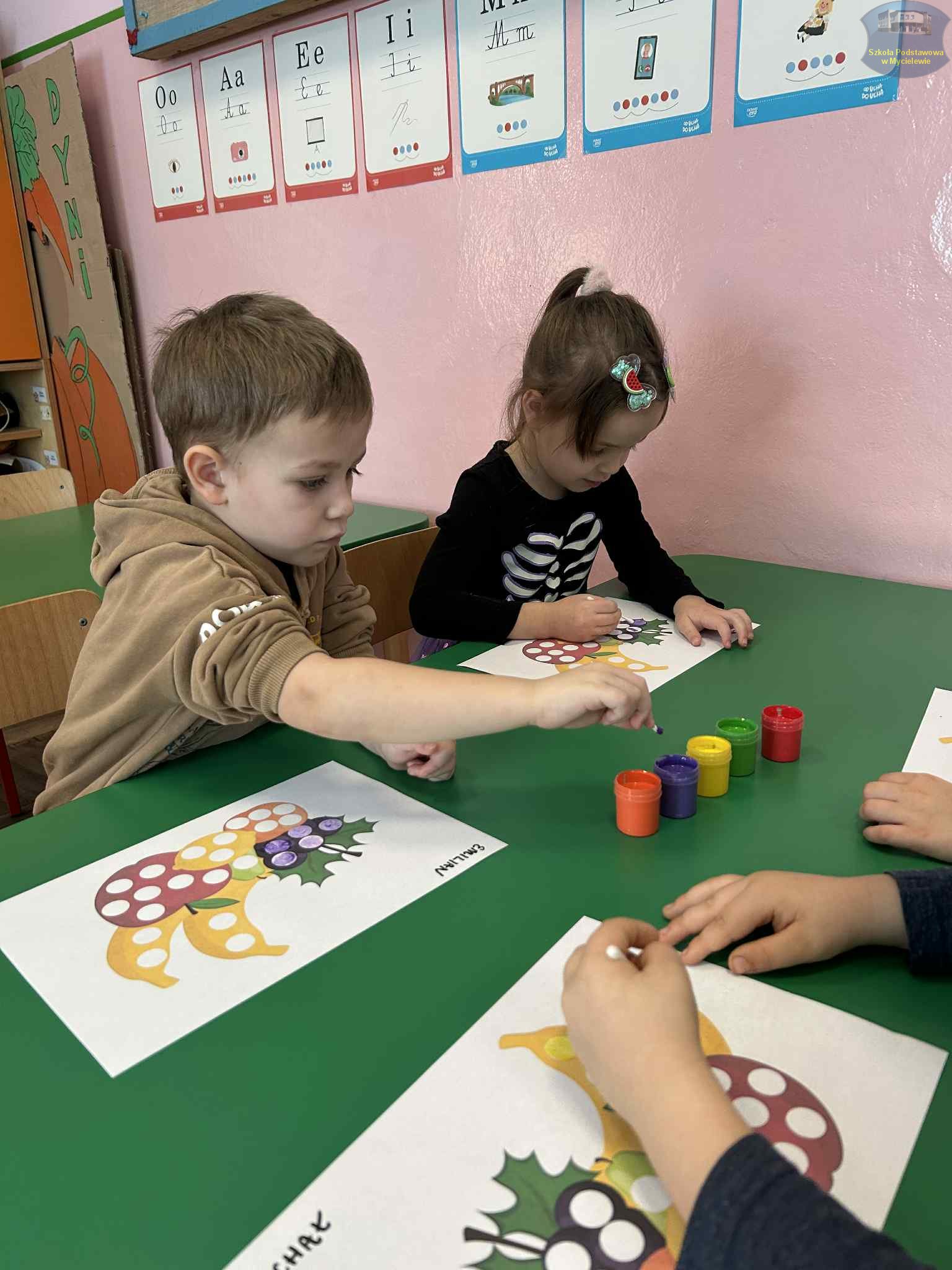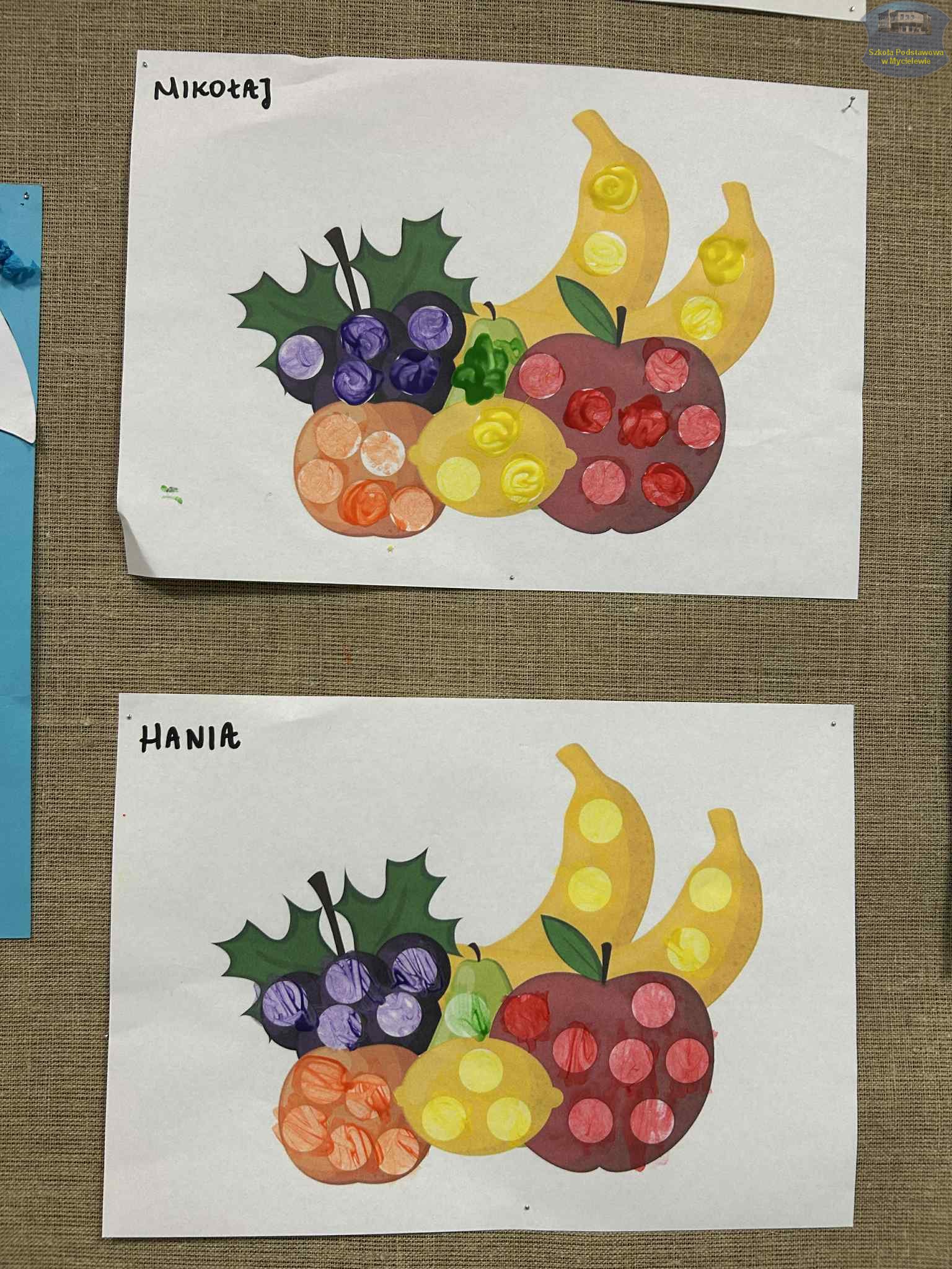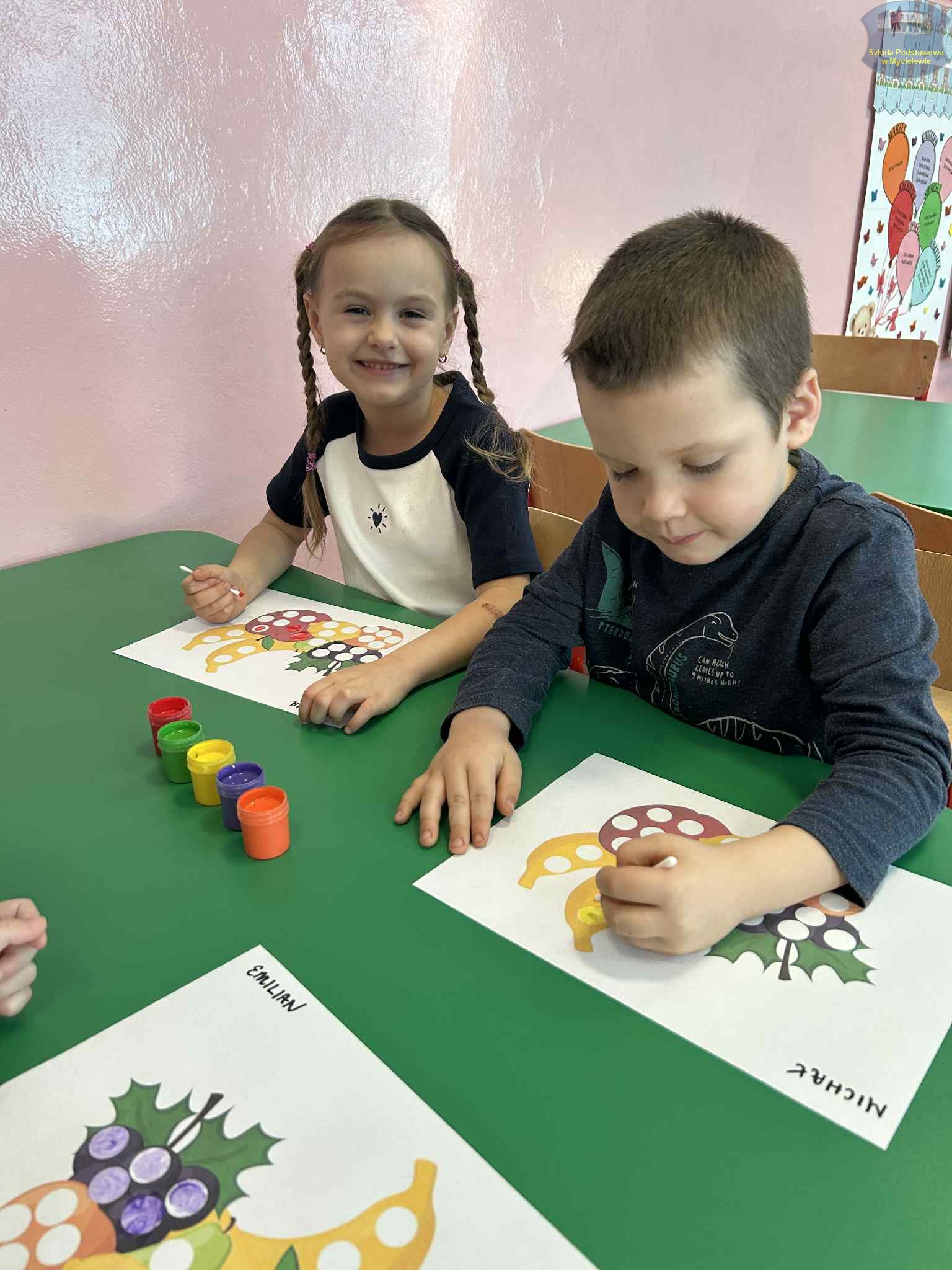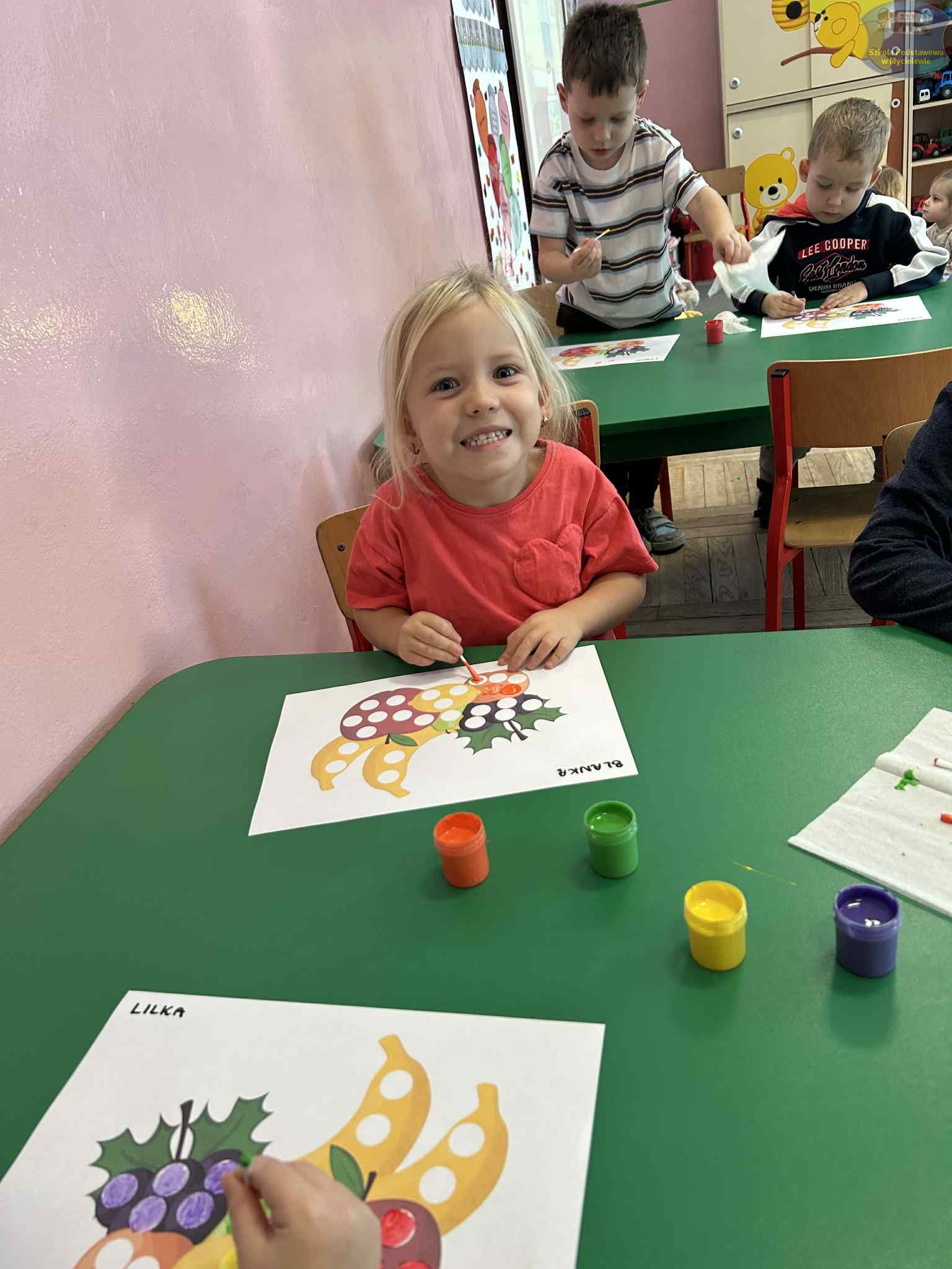 Po zakończeniu pracy dzieci samodzielnie uporządkowały stanowiska, a następnie przystąpiły do kolejnych aktywności związanych z Dniem Zdrowego Jedzenia. Kontynuowały temat poprzez krótką grę edukacyjną, obejrzenie filmu oraz wykonanie pracy plastycznej, utrwalając w ten sposób zdobytą wiedzę o zdrowym odżywianiu. Na zakończenie nie zabrakło także wesołych zabaw ruchowych, podkreślających znaczenie aktywności fizycznej w codziennym życiu.
