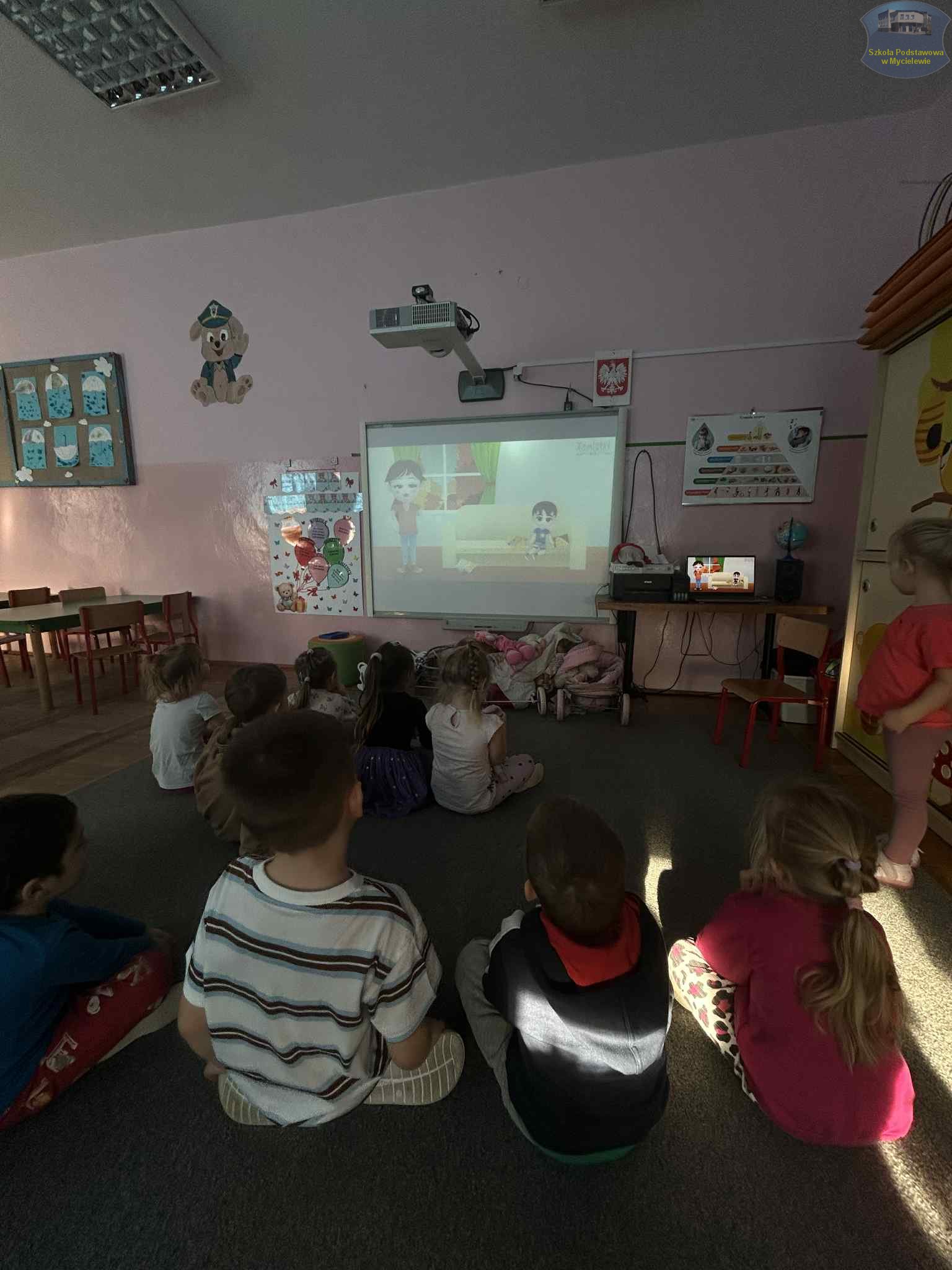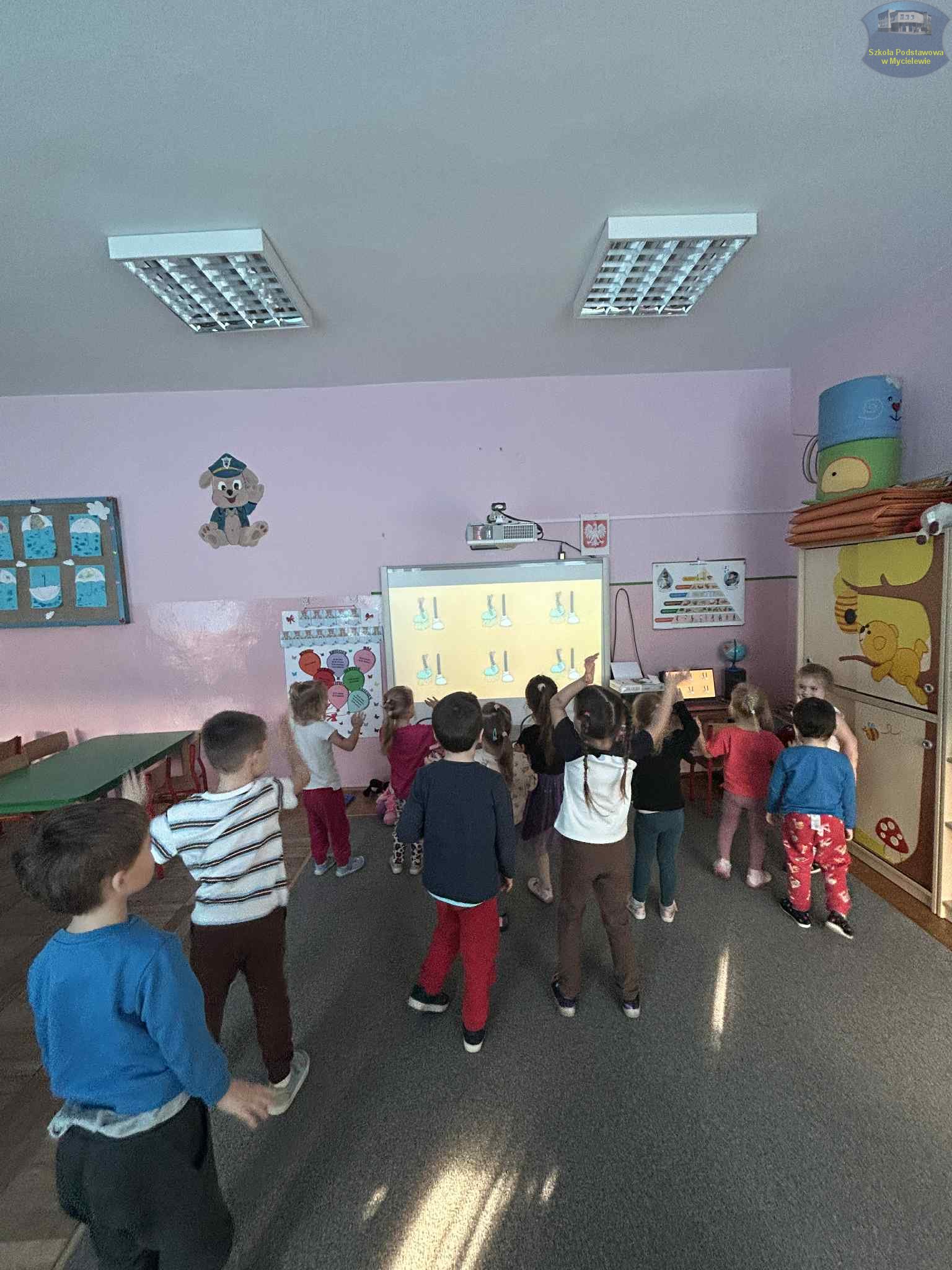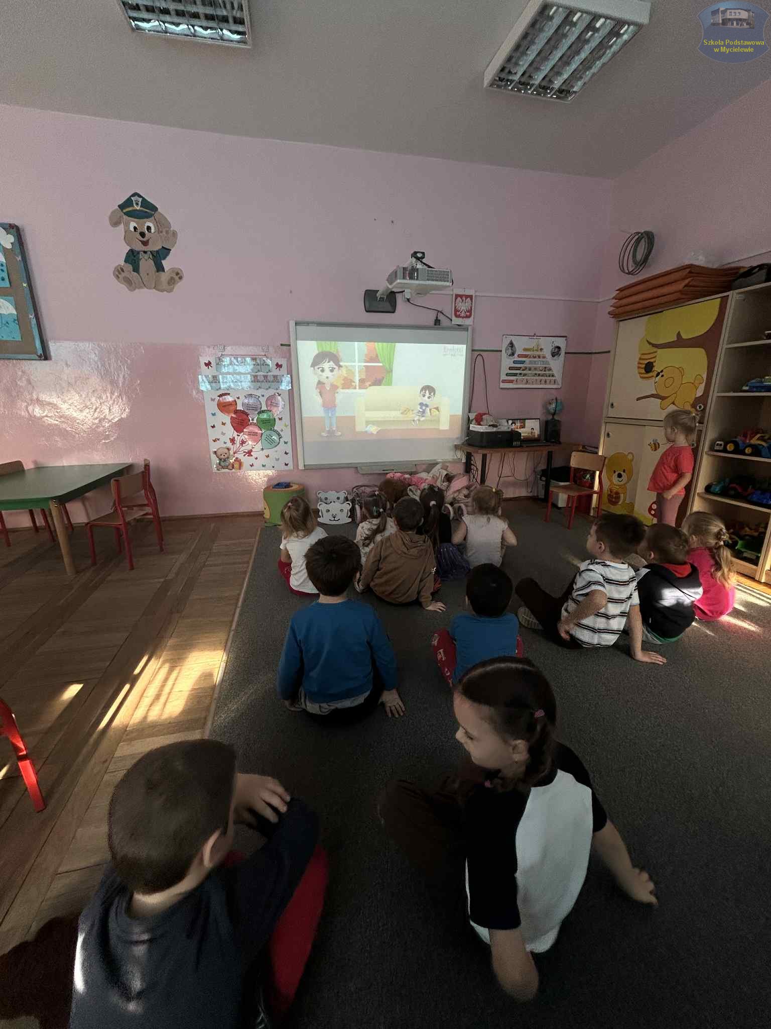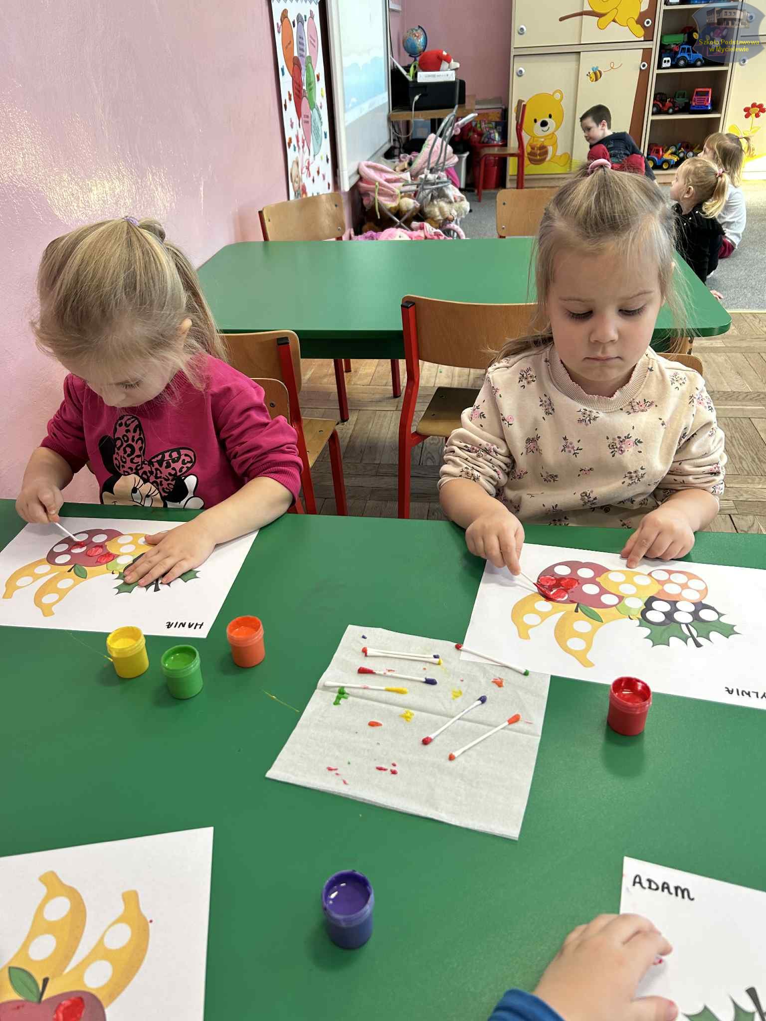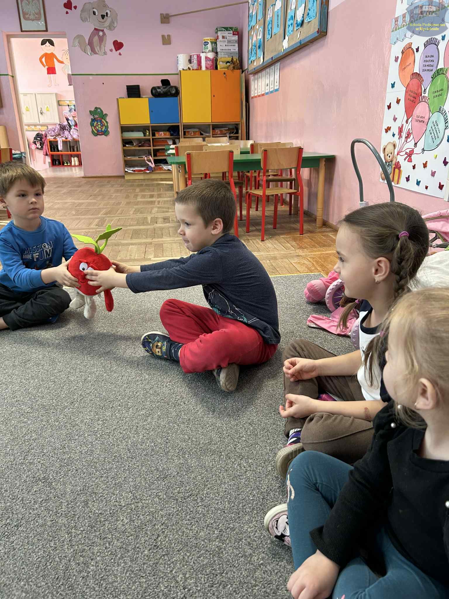 Po zakończeniu pracy dzieci samodzielnie uporządkowały stanowiska, a następnie przystąpiły do kolejnych aktywności związanych z Dniem Zdrowego Jedzenia. Kontynuowały temat poprzez krótką grę edukacyjną, obejrzenie filmu oraz wykonanie pracy plastycznej, utrwalając w ten sposób zdobytą wiedzę o zdrowym odżywianiu. Na zakończenie nie zabrakło także wesołych zabaw ruchowych, podkreślających znaczenie aktywności fizycznej w codziennym życiu.