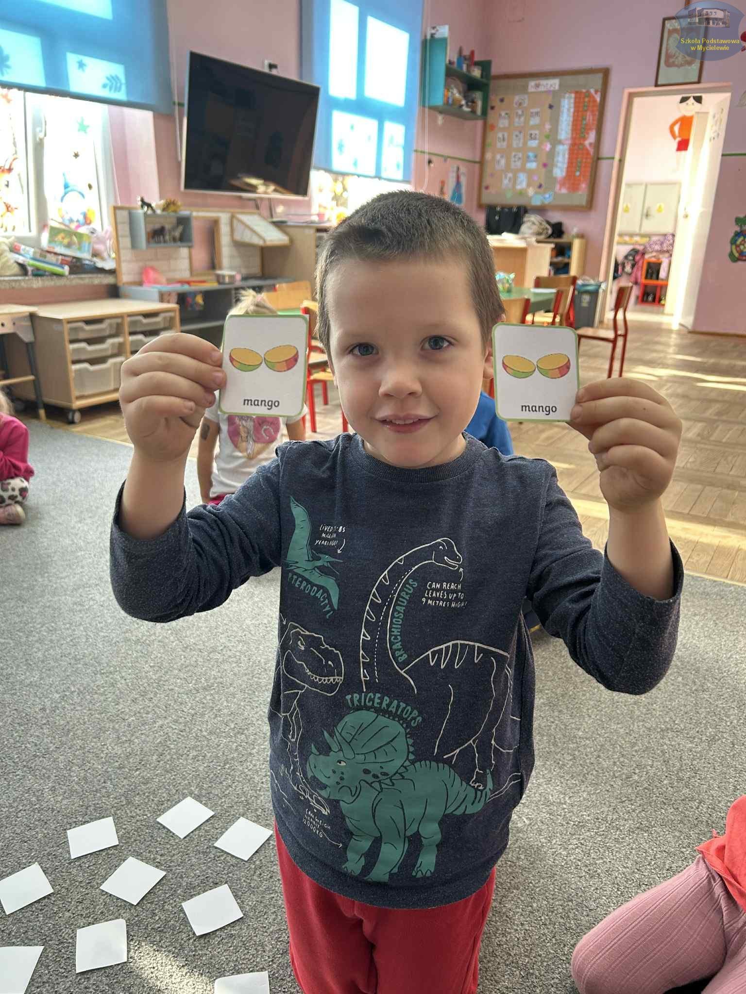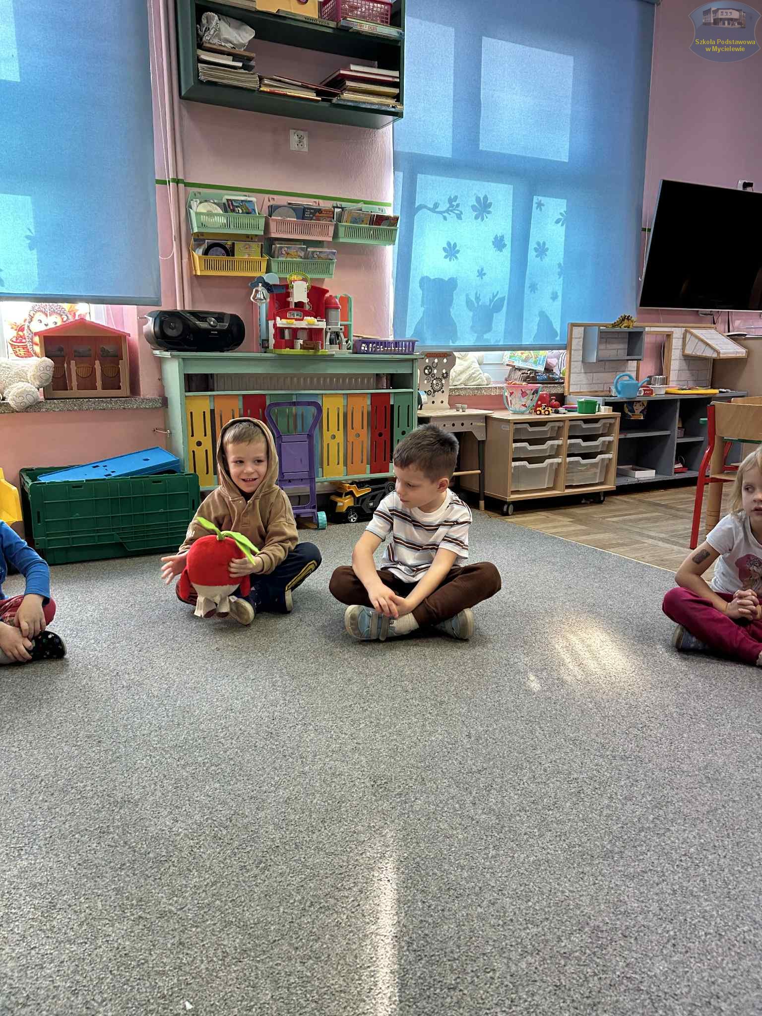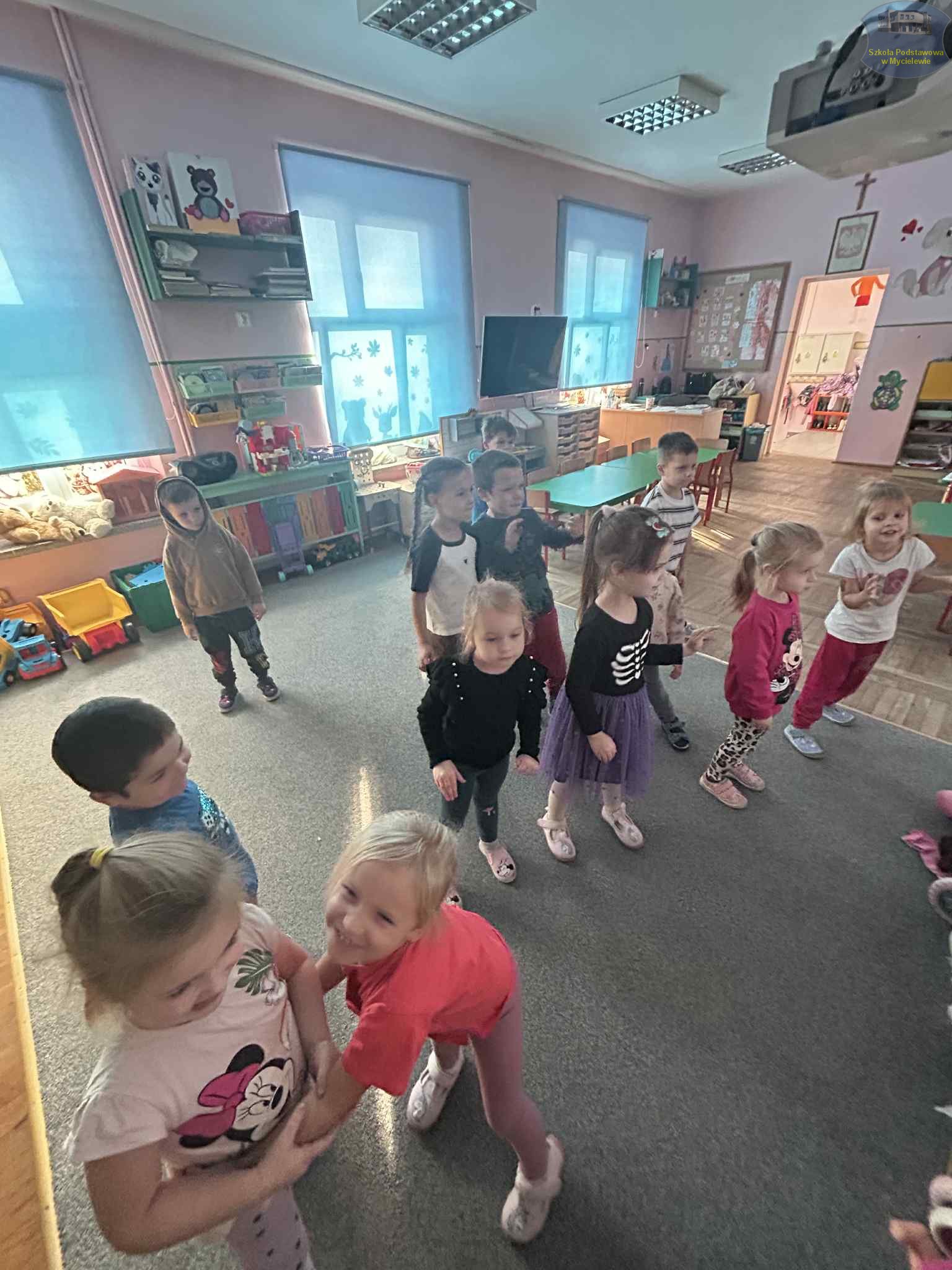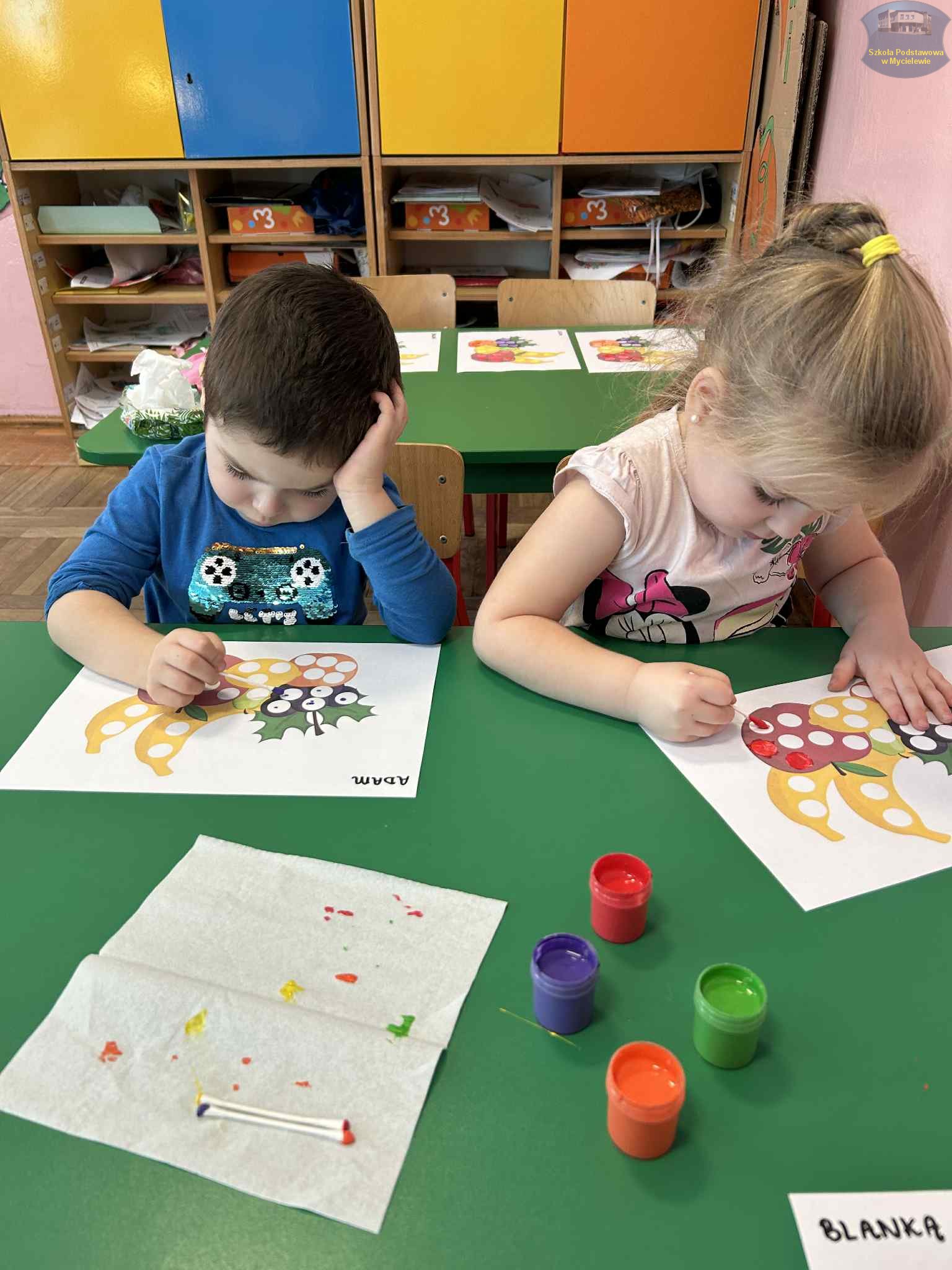 Po zakończeniu pracy dzieci samodzielnie uporządkowały stanowiska, a następnie przystąpiły do kolejnych aktywności związanych z Dniem Zdrowego Jedzenia. Kontynuowały temat poprzez krótką grę edukacyjną, obejrzenie filmu oraz wykonanie pracy plastycznej, utrwalając w ten sposób zdobytą wiedzę o zdrowym odżywianiu. Na zakończenie nie zabrakło także wesołych zabaw ruchowych, podkreślających znaczenie aktywności fizycznej w codziennym życiu.