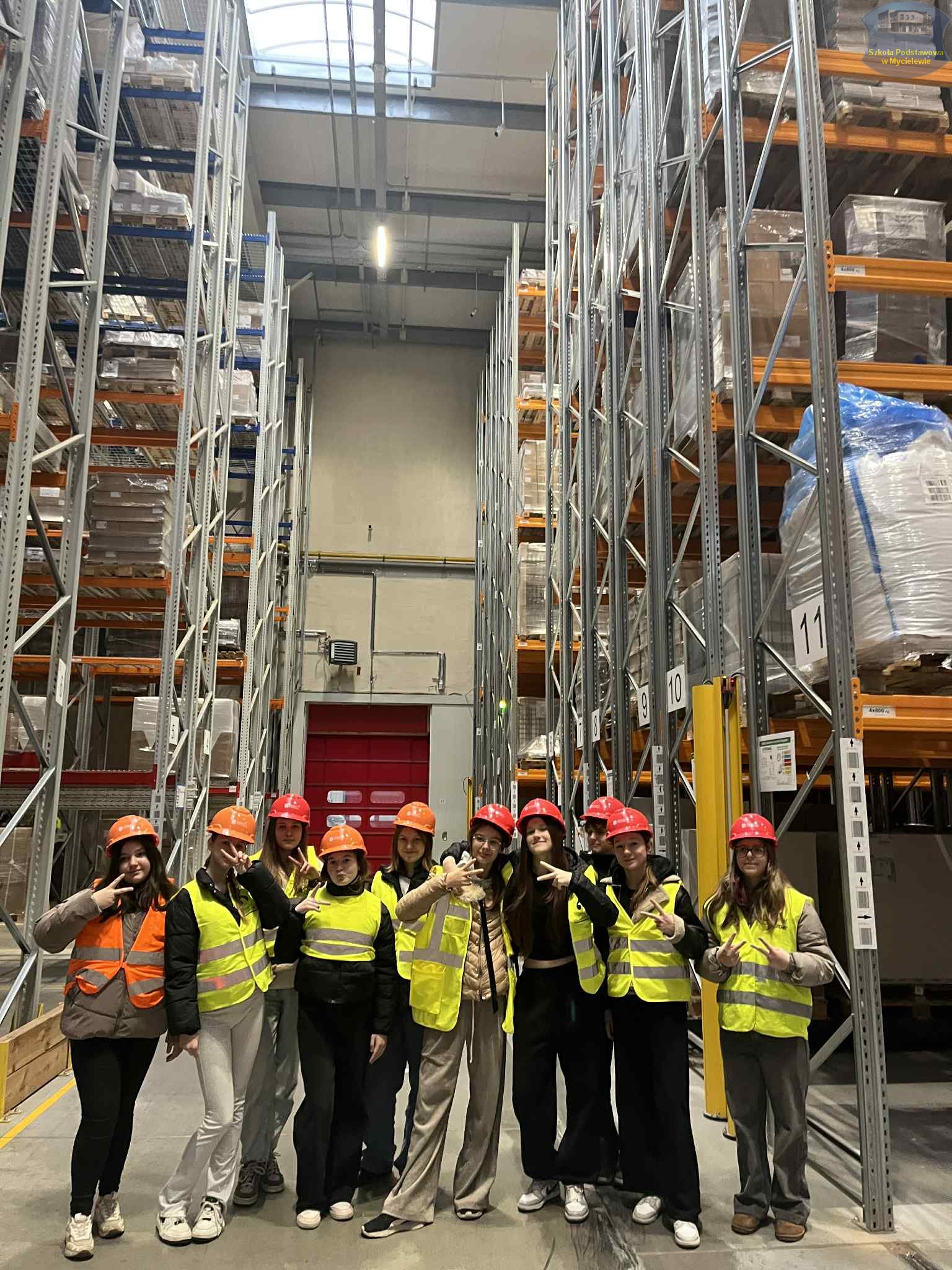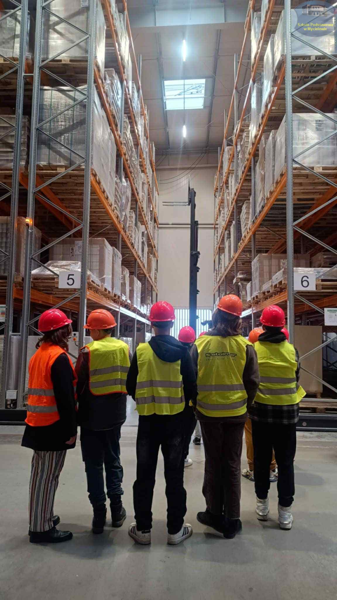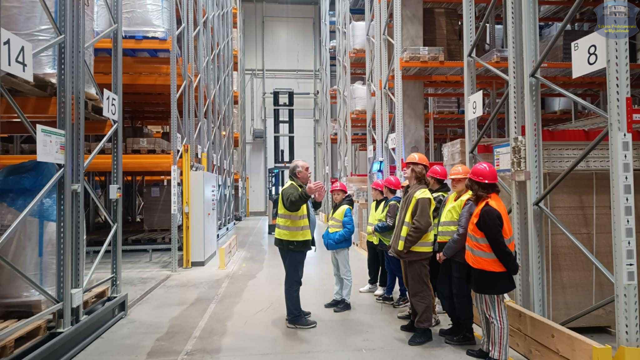 W tym samym czasie klasa 7, pod opieką Pani Koralewskiej i Pani Kwiatkowskiej, udała się do przedsiębiorstwa Holkap Sp. z o.o., które od ponad 25 lat świadczy kompleksowe usługi magazynowe w halach klasy A oraz różnorodne usługi logistyczne, takie jak konfekcjonowanie, kompletowanie i dystrybucja towarów. Uczniowie mogli zobaczyć, jak funkcjonuje profesjonalne centrum logistyczne i jak wiele elementów składa się na sprawny przepływ towarów.