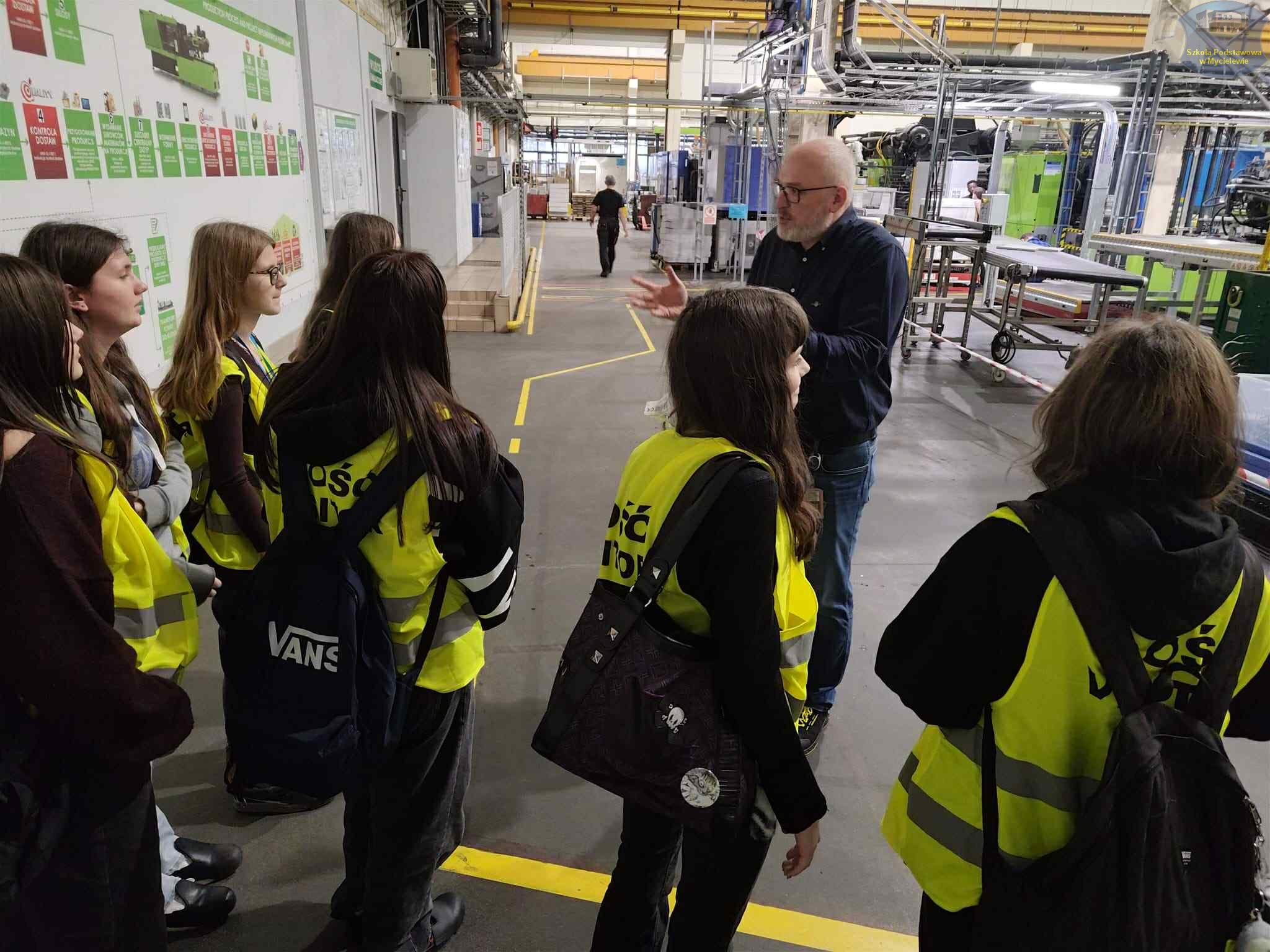 Klasa 8, pod opieką Pana A. Kulczyńskiego, odwiedziła firmę Hanplast Sp. z o.o. — innowacyjny zakład zajmujący się m.in. wtryskiwaniem wyrobów z tworzyw sztucznych, projektowaniem i produkcją form wtryskowych oraz wytwarzaniem modułów fotowoltaicznych. Uczniowie mieli okazję wejść na halę produkcyjną i z bliska przyjrzeć się poszczególnym etapom procesu technologicznego oraz pracy specjalistycznych urządzeń.