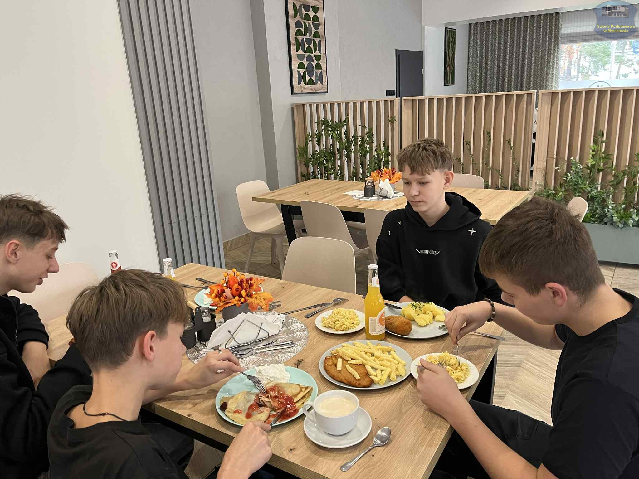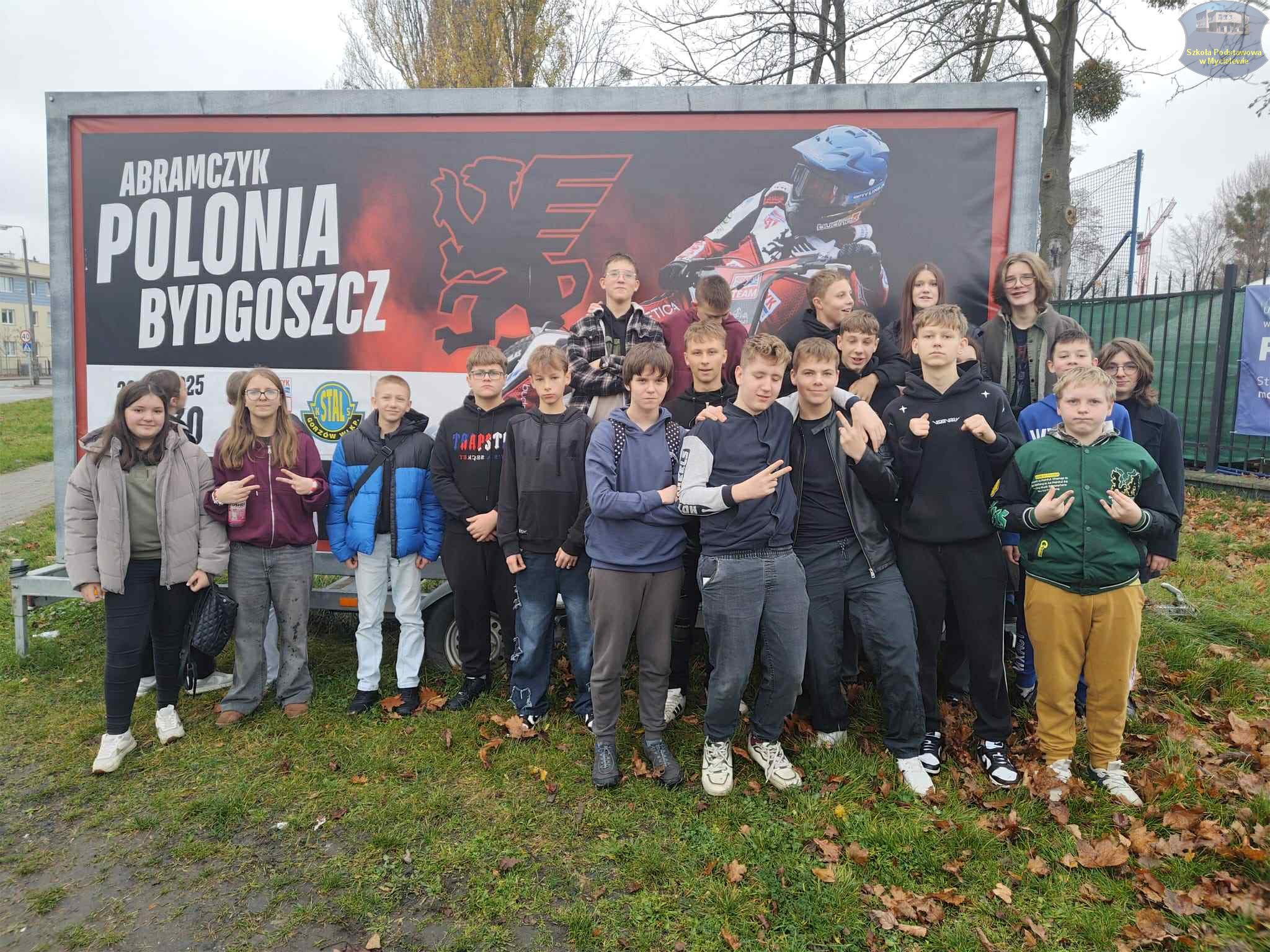 Po części edukacyjnej uczestnicy wycieczki udali się na smaczny obiad do lokalnego baru mlecznego. Dla części młodzieży była to pierwsza wizyta w takim miejscu, co okazało się dodatkowym, sympatycznym i smakowitym doświadczeniem. Następnie uczniowie odwiedzili stadion Abramczyk Polonia Bydgoszcz — ważny punkt na mapie bydgoskiego sportu. Wizyta na stadionie była przyjemnym zakończeniem dnia i okazją do wspólnego spędzenia czasu w wyjątkowym miejscu.
