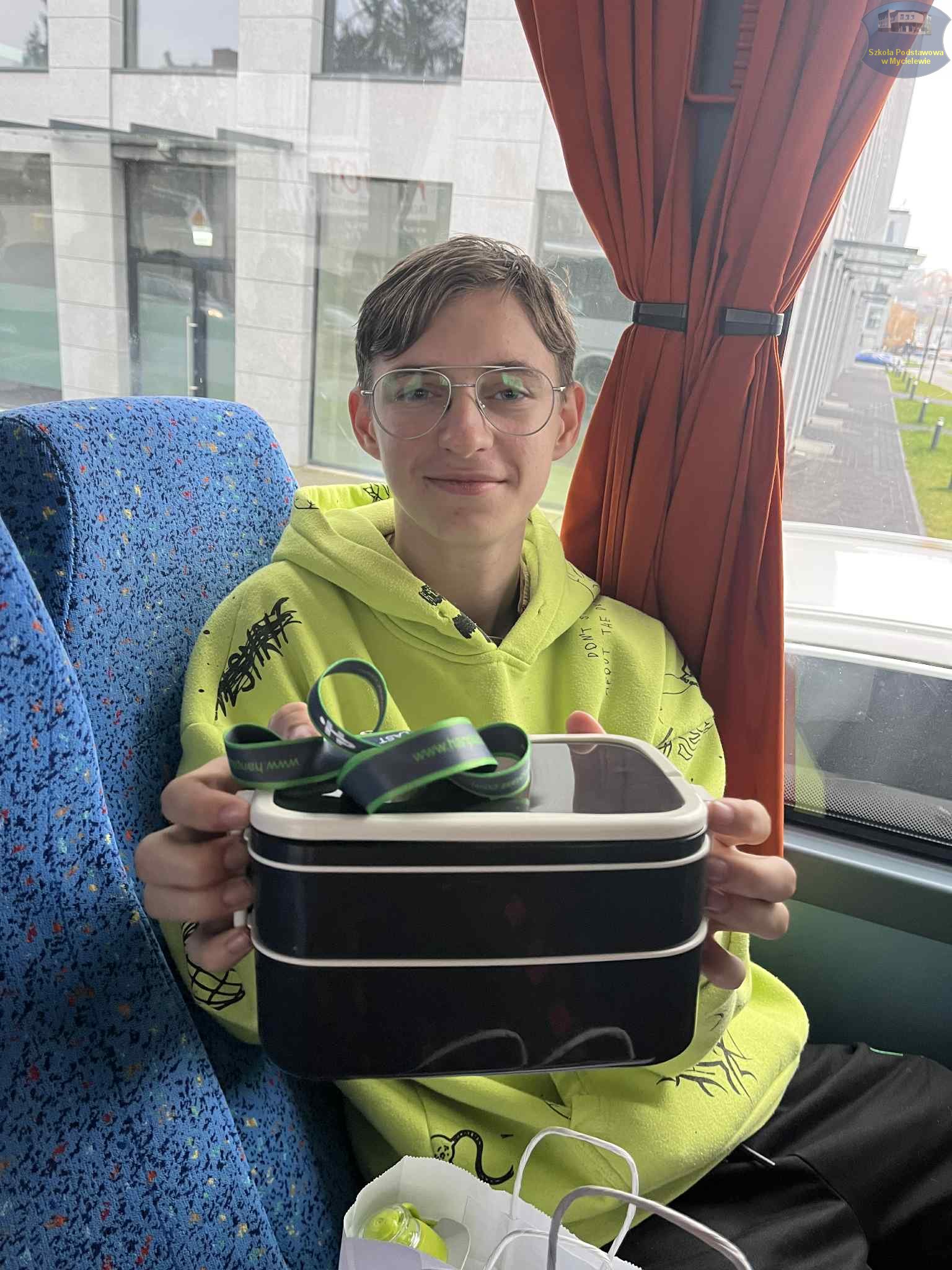 Każdy uczestnik wyjazdu otrzymał napój, słodkości oraz bidon, a uczniowie klasy ósmej dodatkowo zostali obdarowani śniadaniówkami. Autokar, poczęstunek oraz upominki zostały ufundowane przez Bydgoski Klaster Przemysłowy Dolina Narzędziowa.