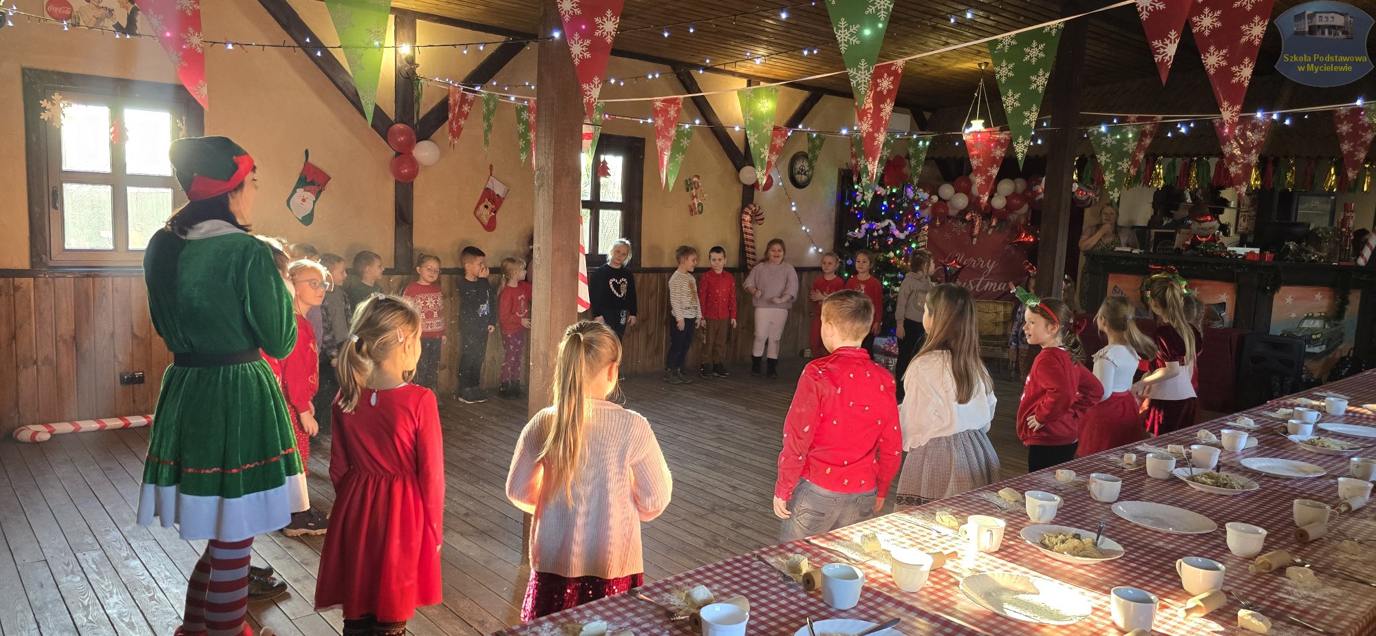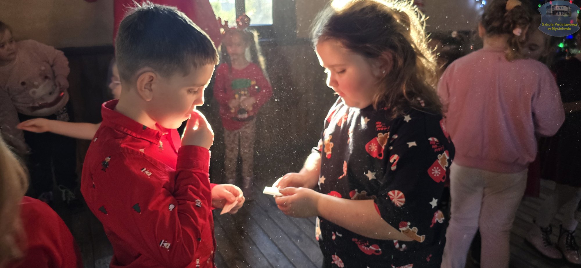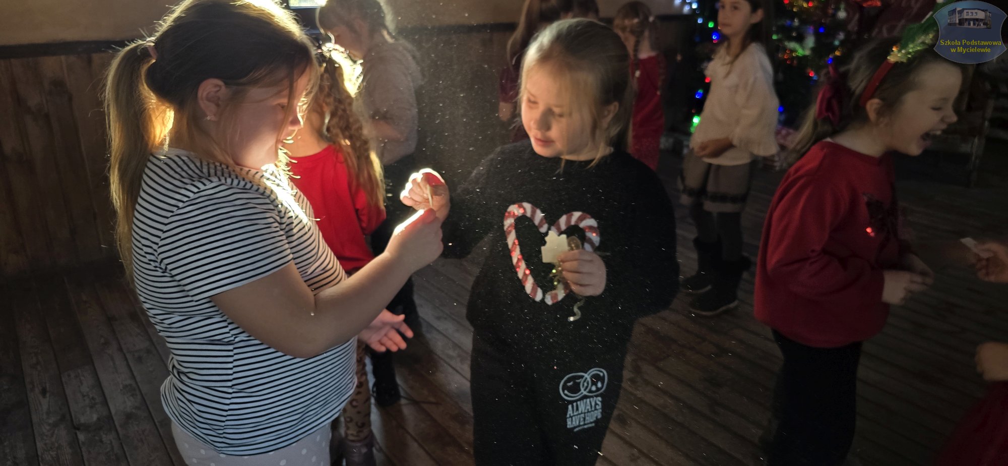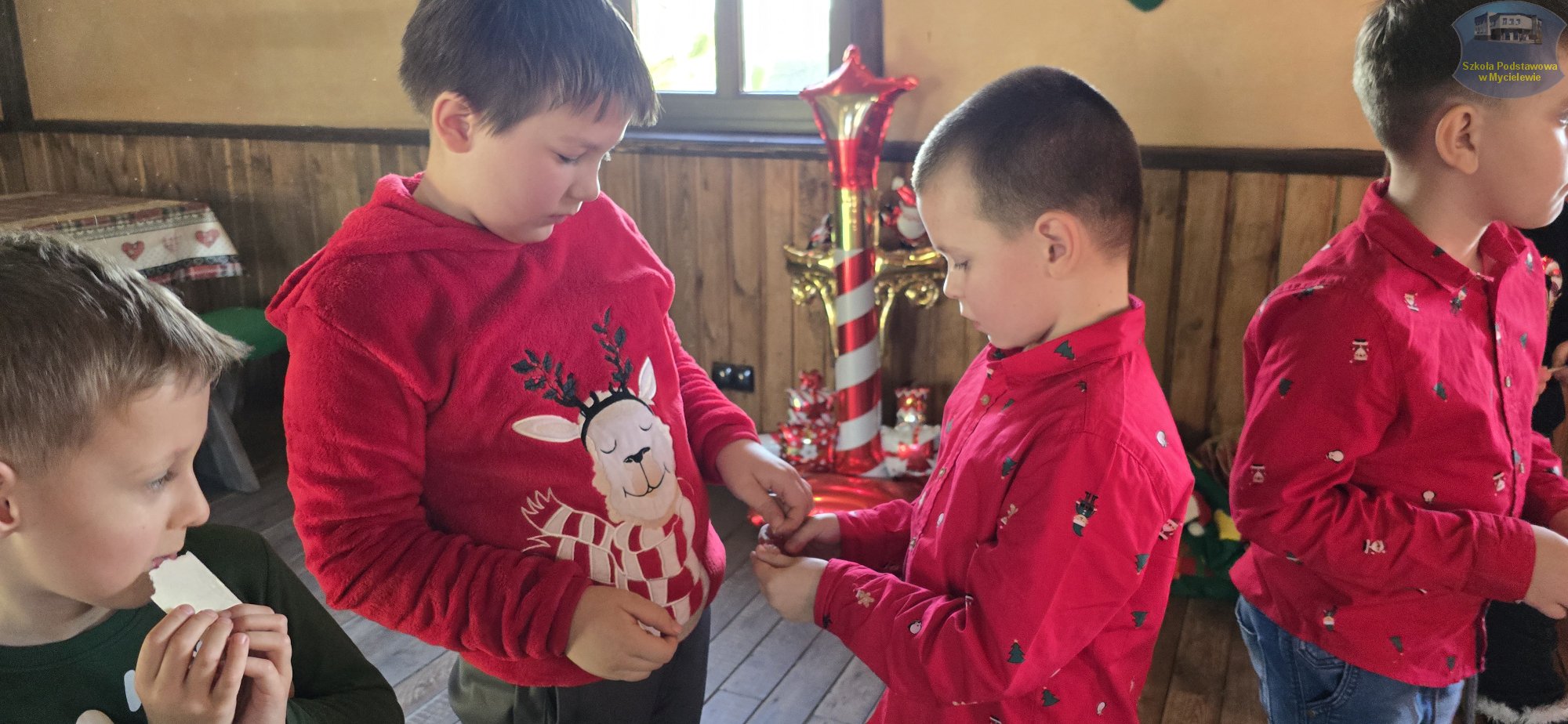 Kulminacyjnym momentem dnia było wspólne dzielenie się opłatkiem. Przy odświętnie przygotowanym stole dzieci składały sobie życzenia, kosztowały wigilijnych potraw i w ciszy chłonęły wyjątkową atmosferę Świąt. Wspólne śpiewanie kolęd pięknie zakończyło dzień pełen wzruszeń, wypełniając serca ciepłem, miłością i prawdziwą magią Bożego Narodzenia.