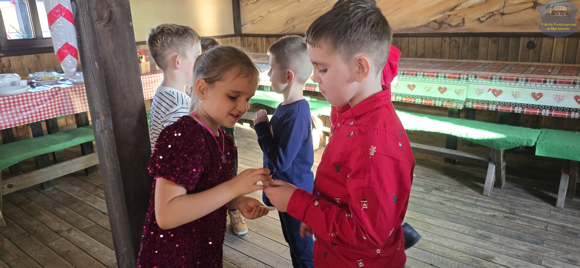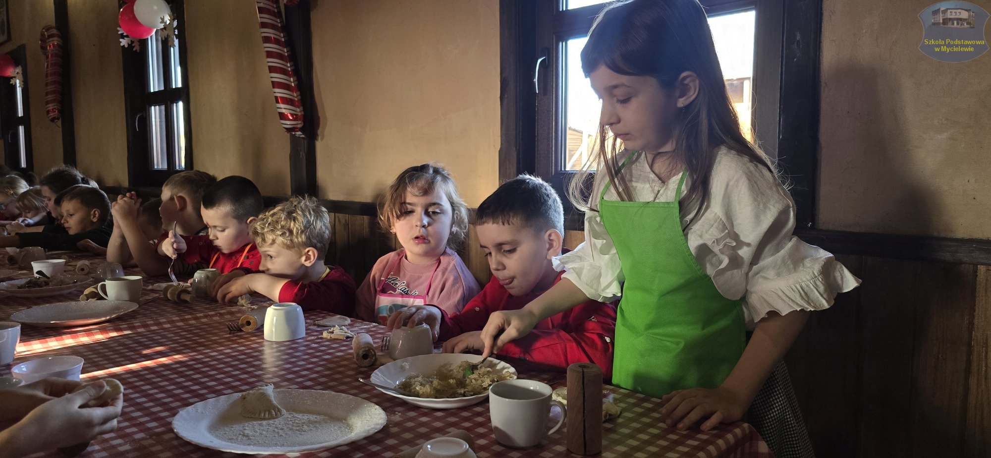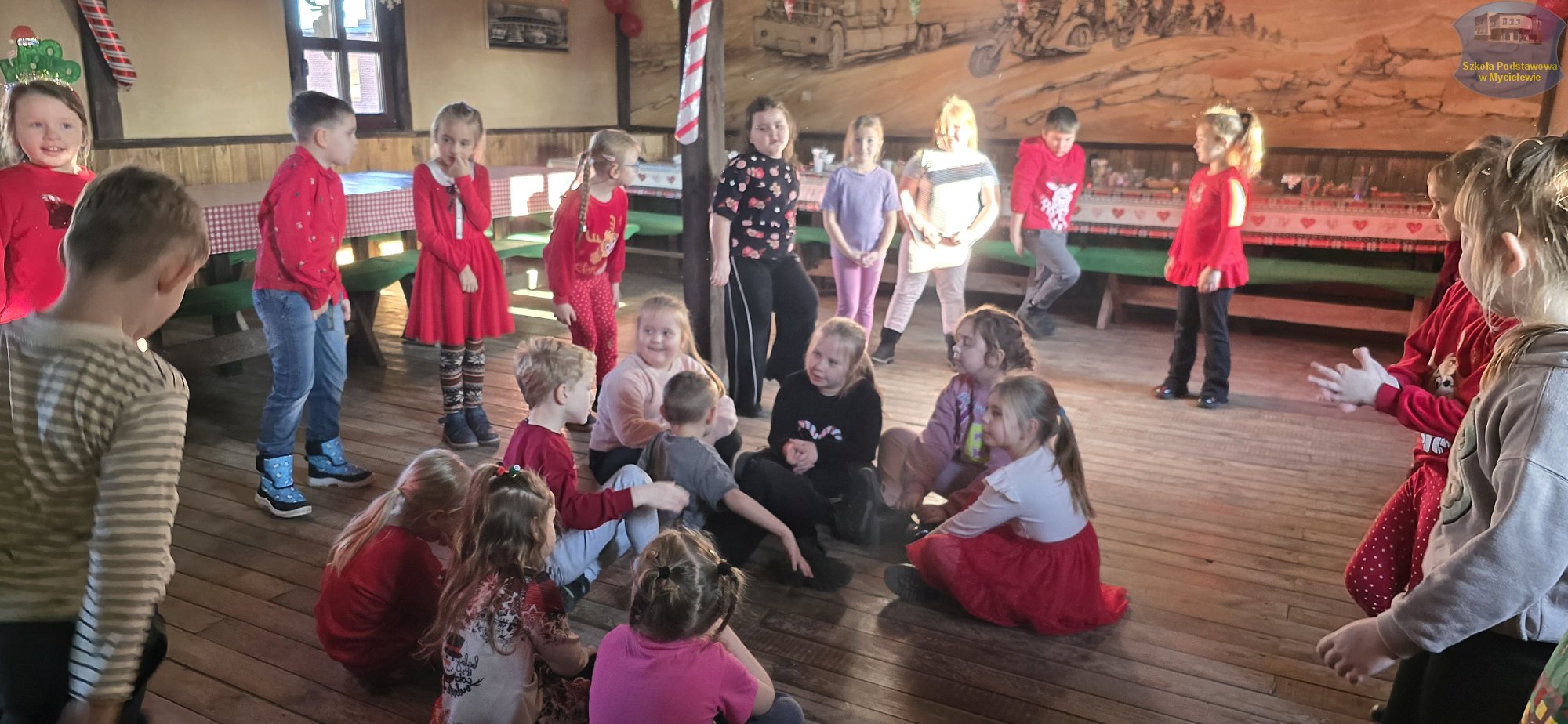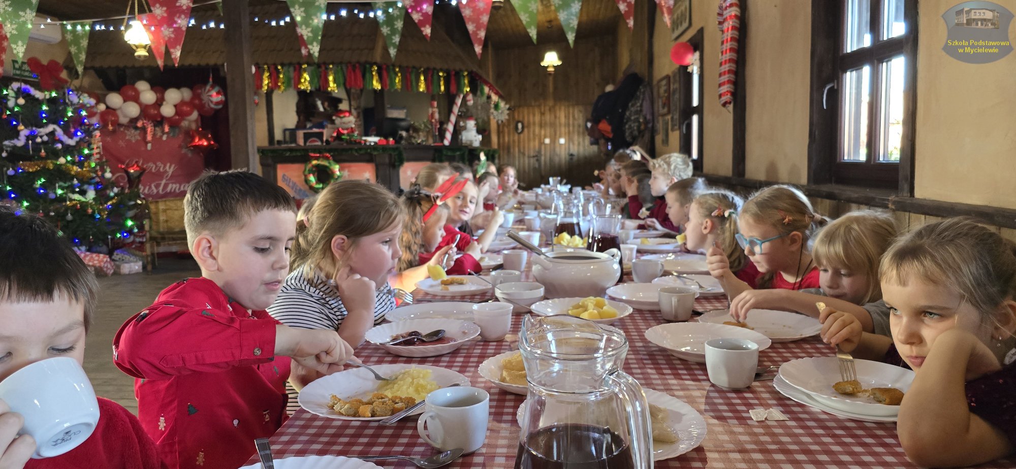 Kulminacyjnym momentem dnia było wspólne dzielenie się opłatkiem. Przy odświętnie przygotowanym stole dzieci składały sobie życzenia, kosztowały wigilijnych potraw i w ciszy chłonęły wyjątkową atmosferę Świąt. Wspólne śpiewanie kolęd pięknie zakończyło dzień pełen wzruszeń, wypełniając serca ciepłem, miłością i prawdziwą magią Bożego Narodzenia.