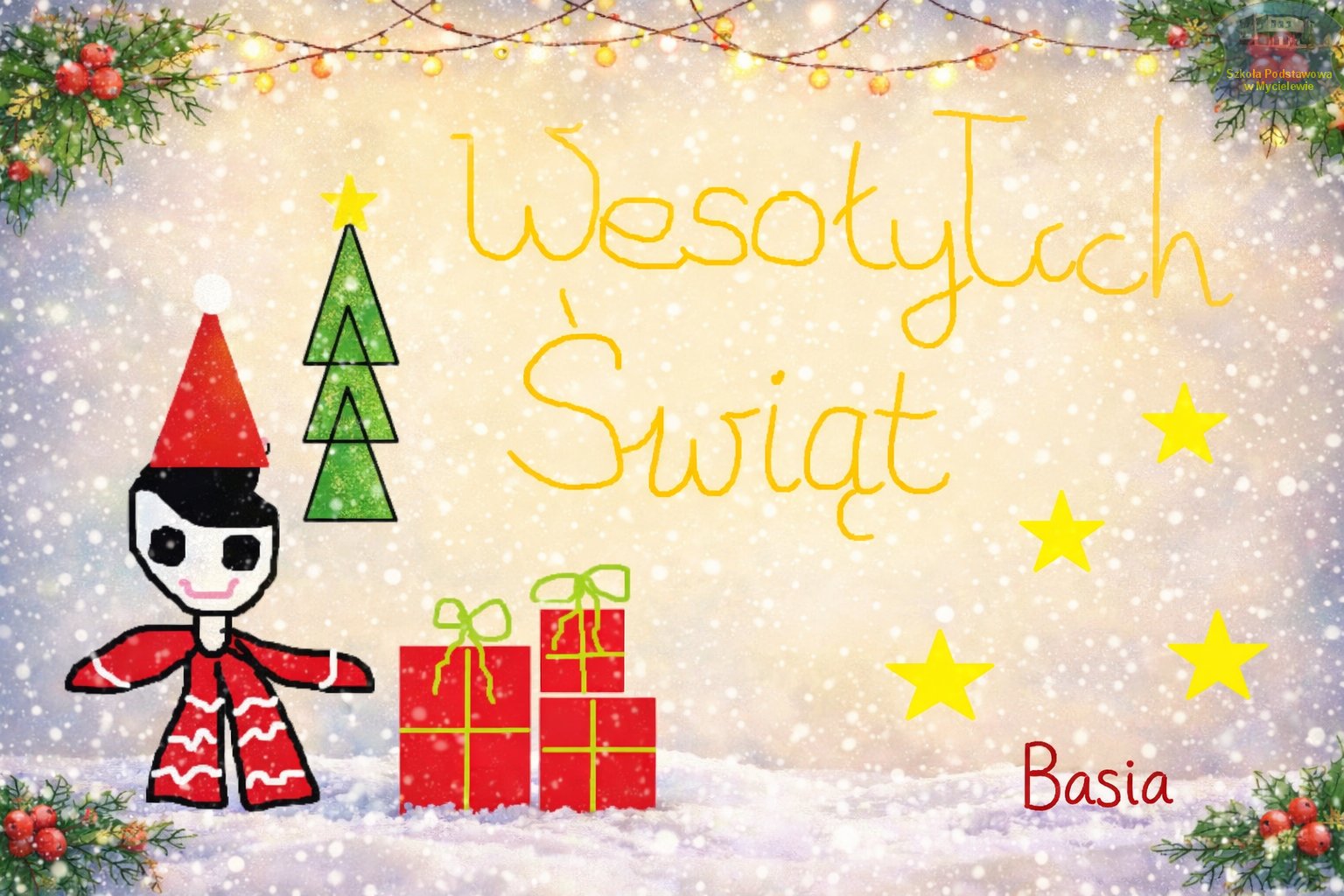 Film z życzeniami wykonany podczas zajęć rozwijających kreatywność przez uczniów klasy III. Podczas zajęć trzecioklasiści przygotowali również kartki świąteczne w edytorze graficznym Paint, które następnie zostały poddane obróbce z wykorzystaniem technologii sztucznej inteligencji.