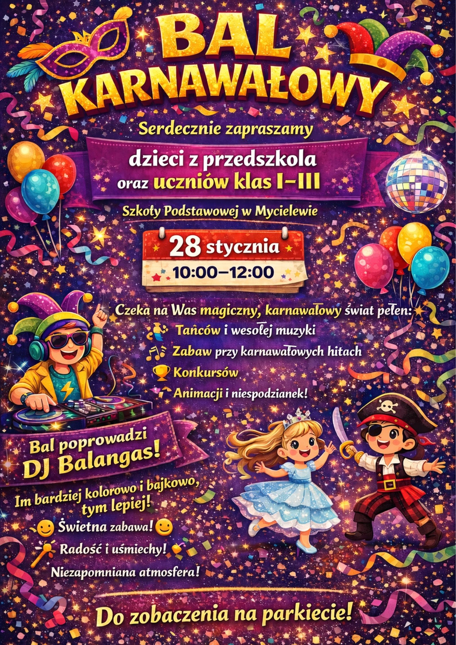 Bal karnowałowy dla dzieci z przedszkola i uczniów I-III