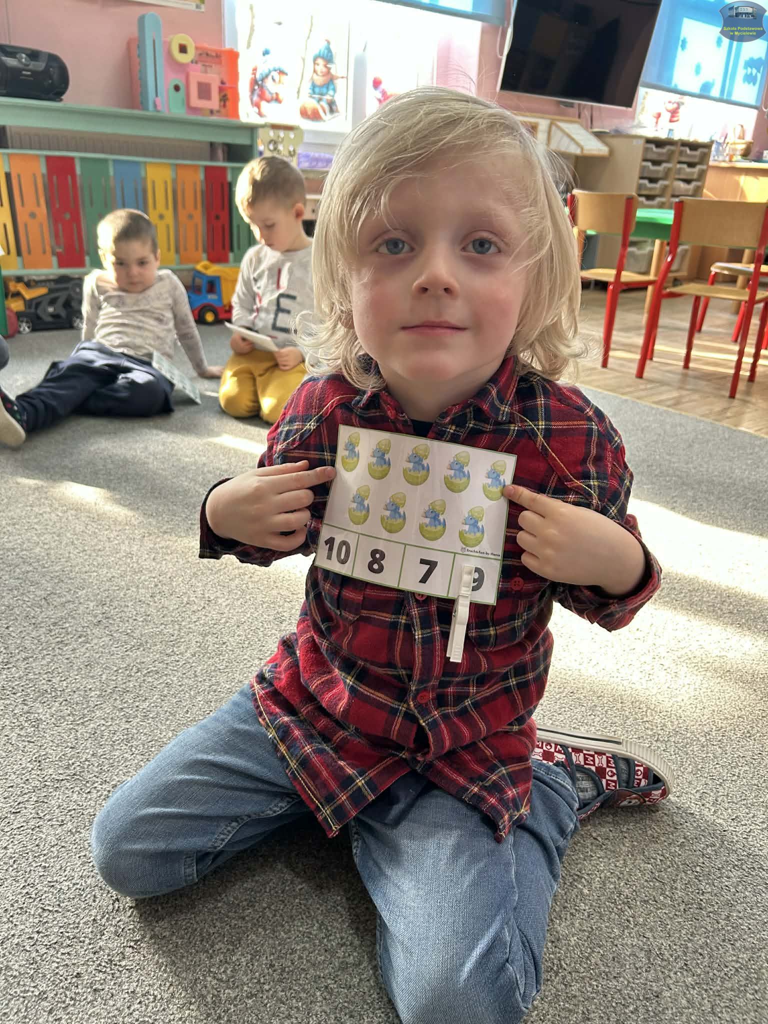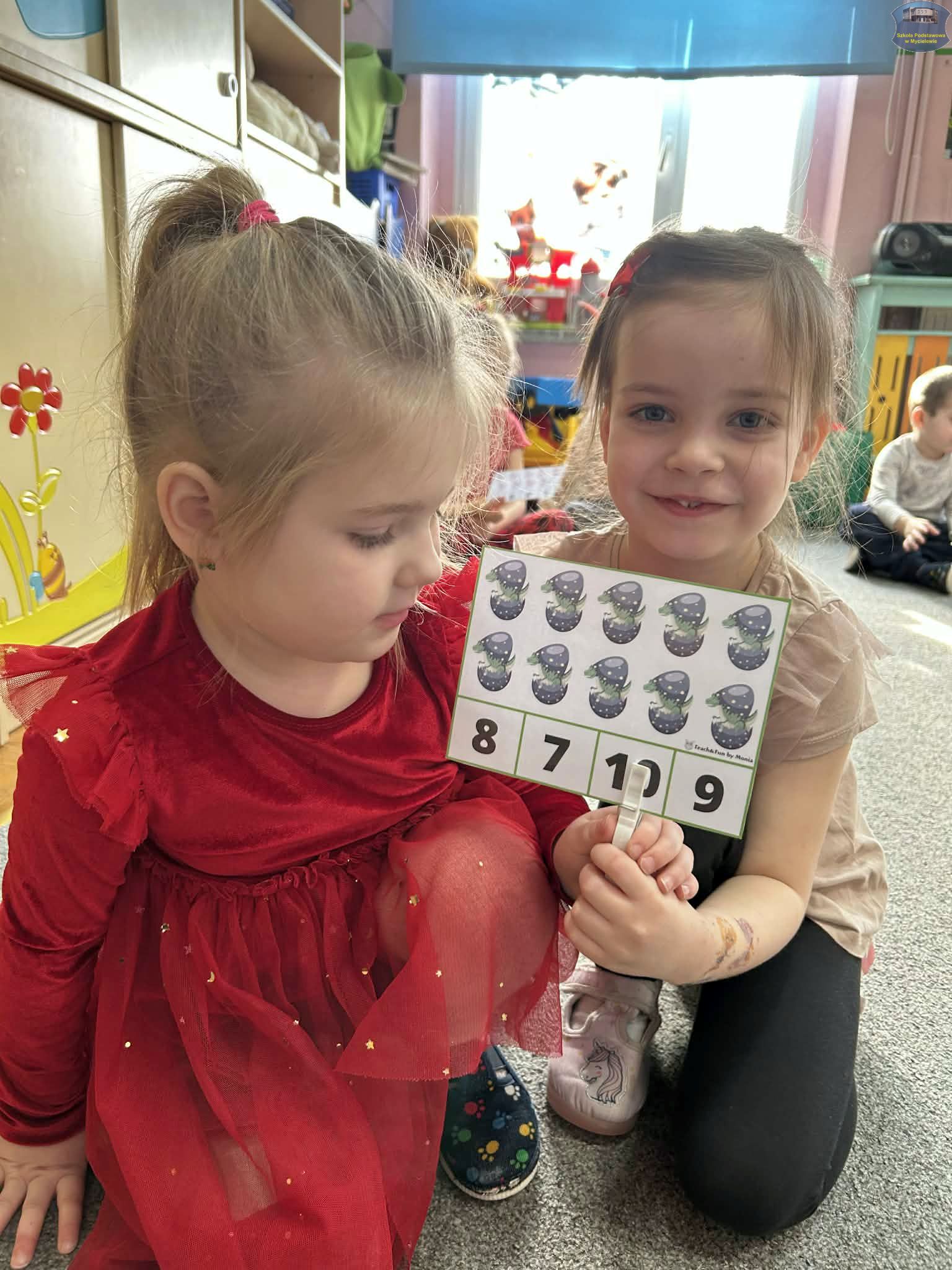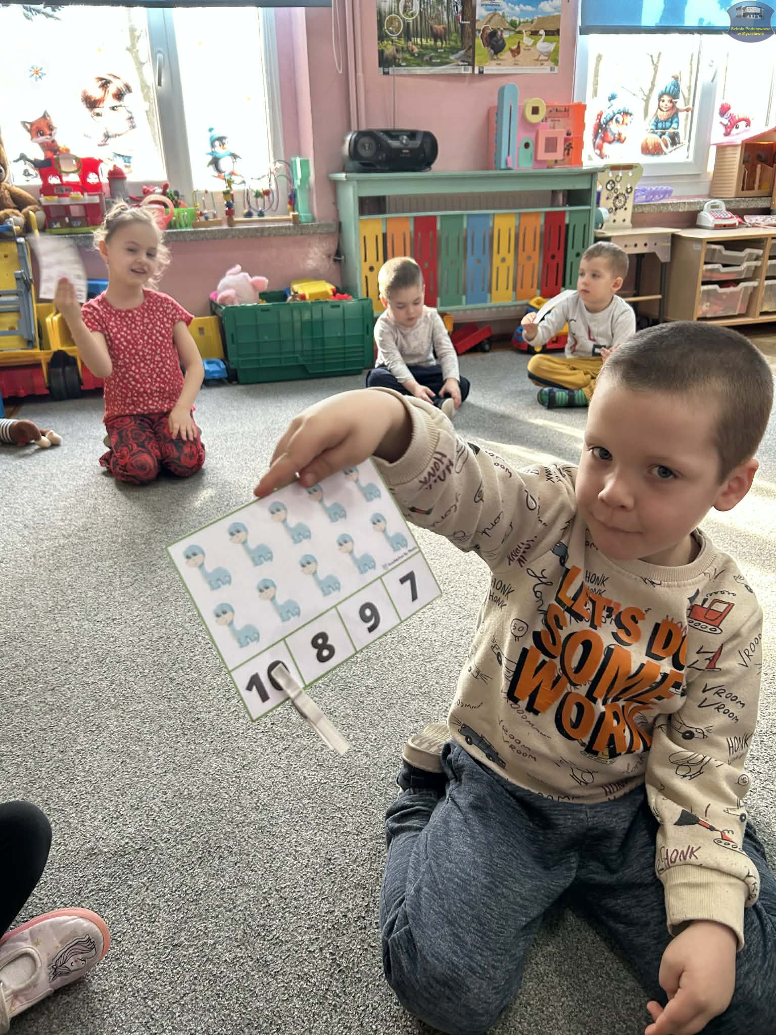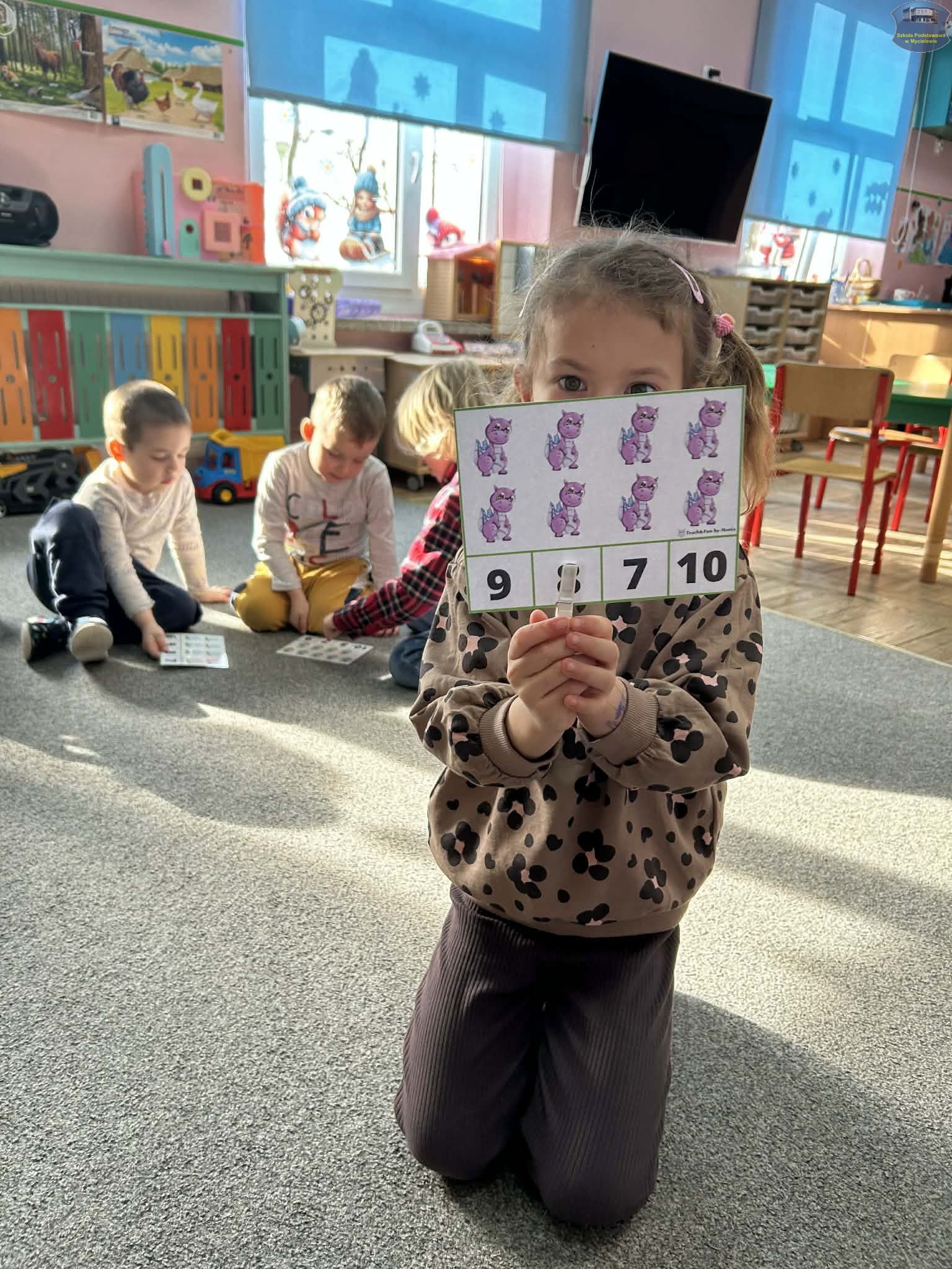 Podczas zajęć przedszkolaki doskonaliły umiejętność przeliczania elementów oraz utrwalały znajomość cyfr poprzez różnorodne ćwiczenia i gry. Dopasowywały cyfry do odpowiedniej liczby elementów, a także porównywały liczebność zbiorów, ucząc się wskazywać, gdzie jest więcej, mniej lub tyle samo.