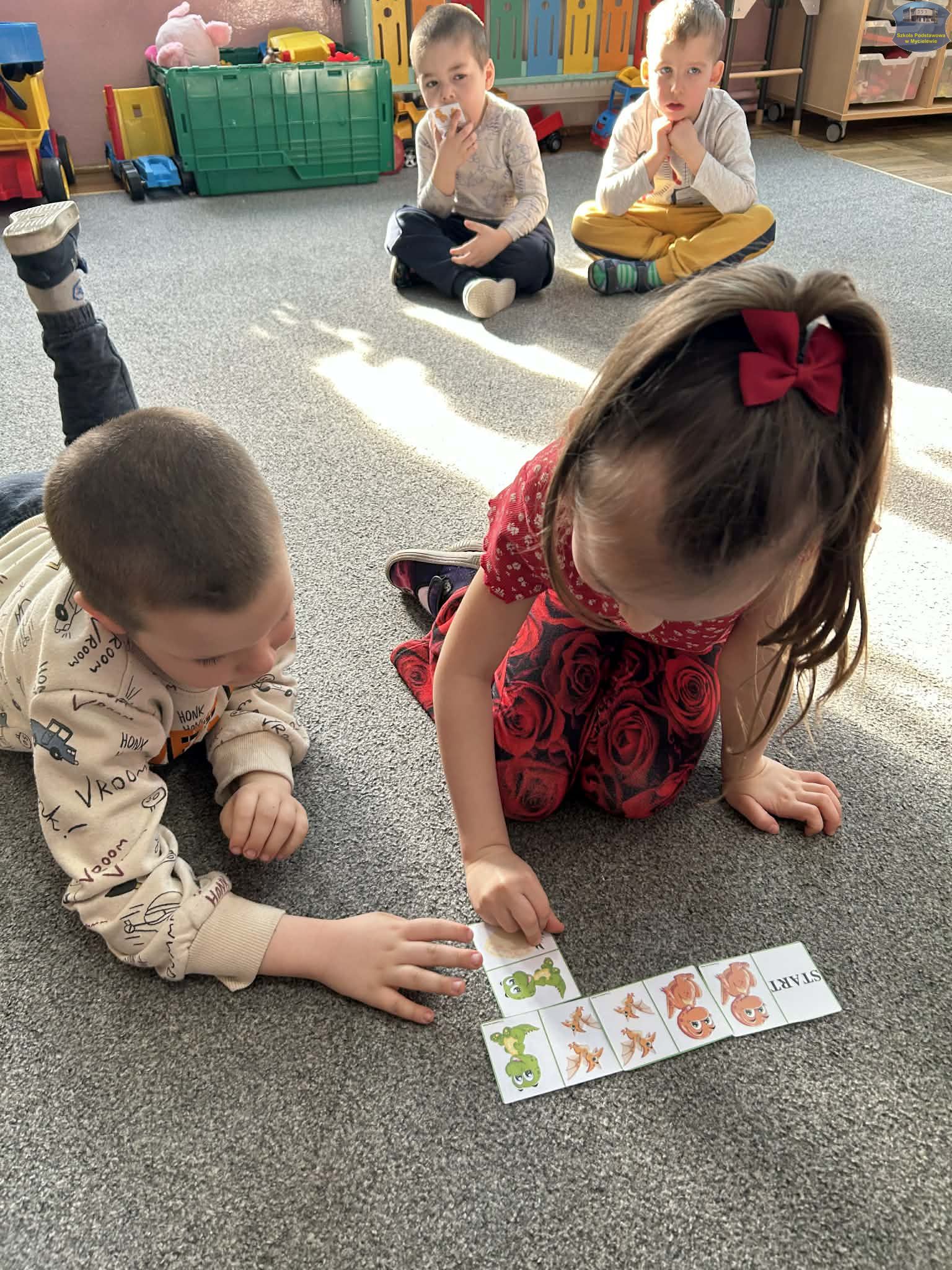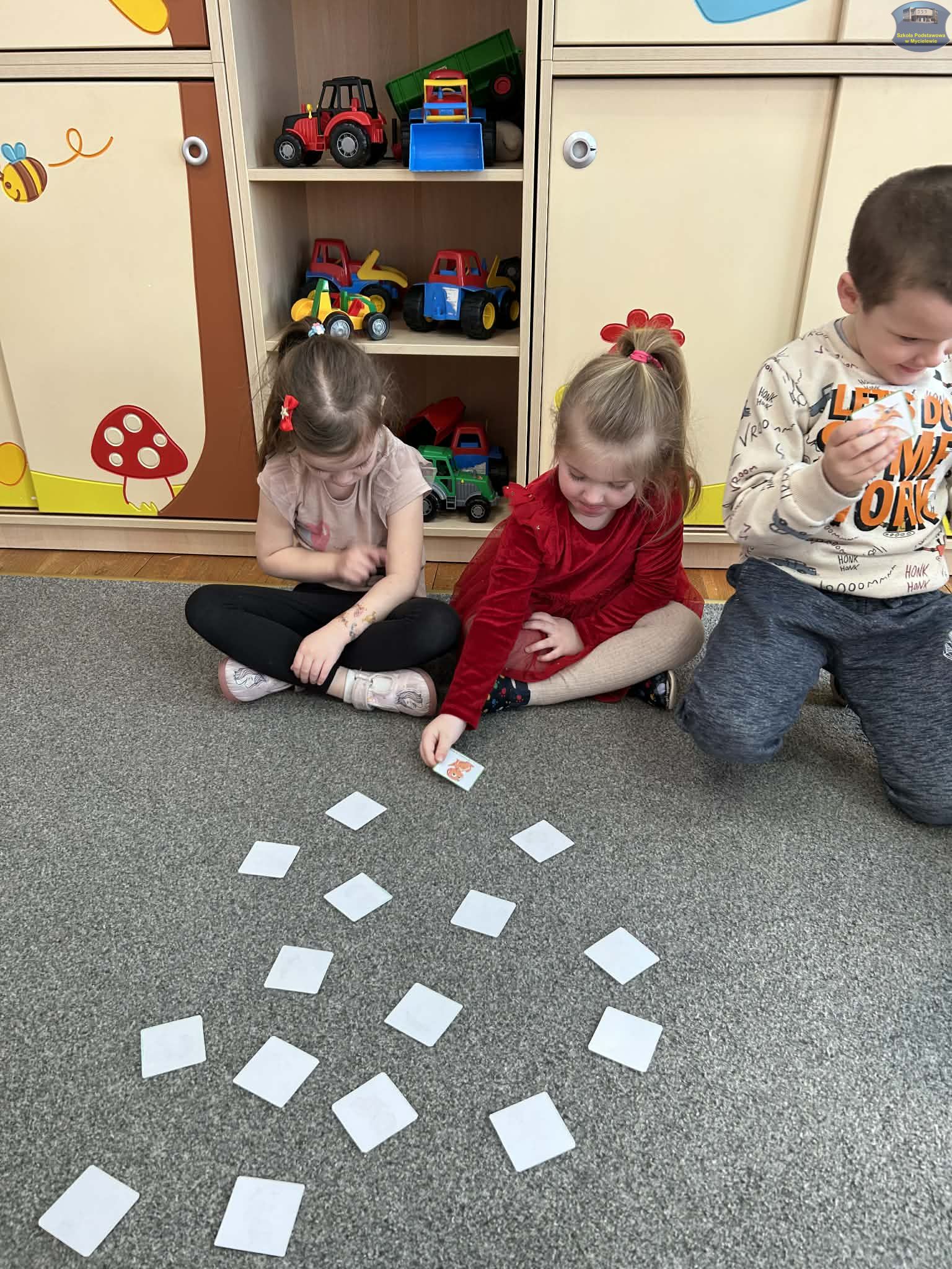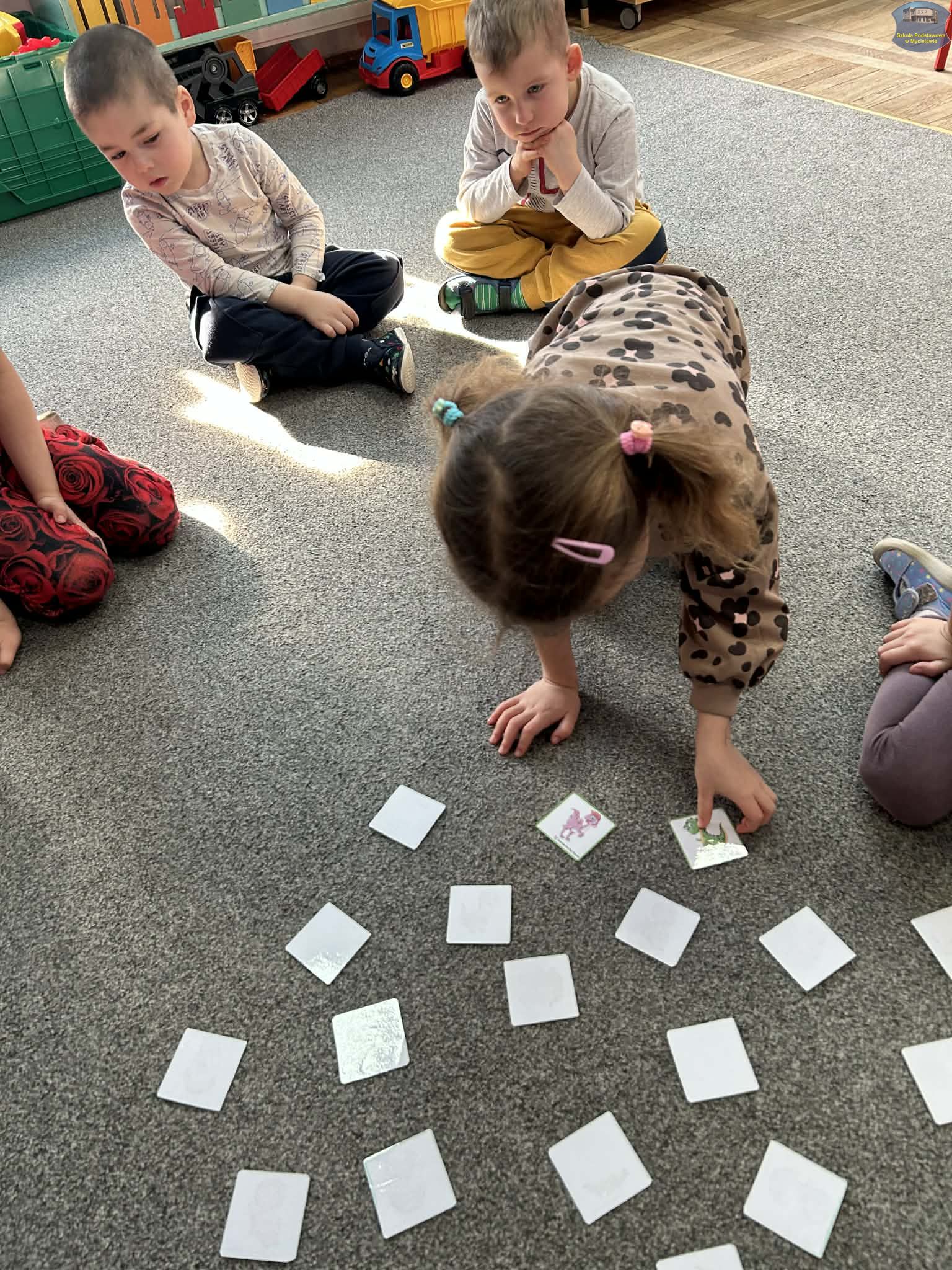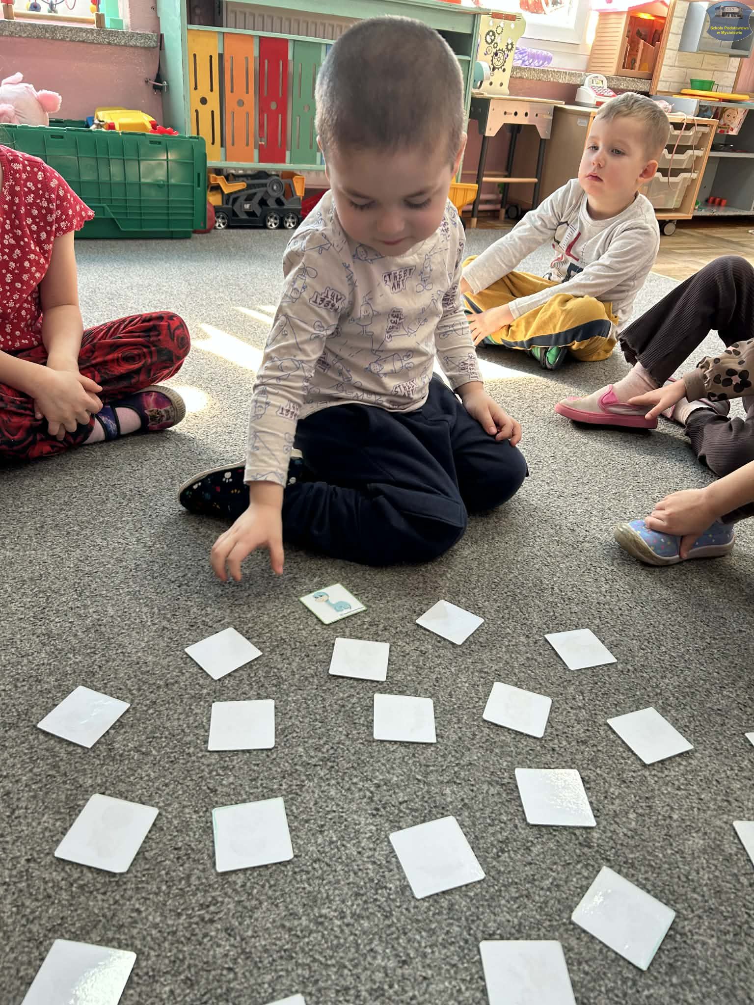 Dużo radości sprawiła gra „memory”, która pozwoliła ćwiczyć pamięć wzrokową oraz koncentrację uwagi. Dzieci odtwarzały i kontynuowały proste sekwencje, rozwijając logiczne myślenie oraz spostrzegawczość.