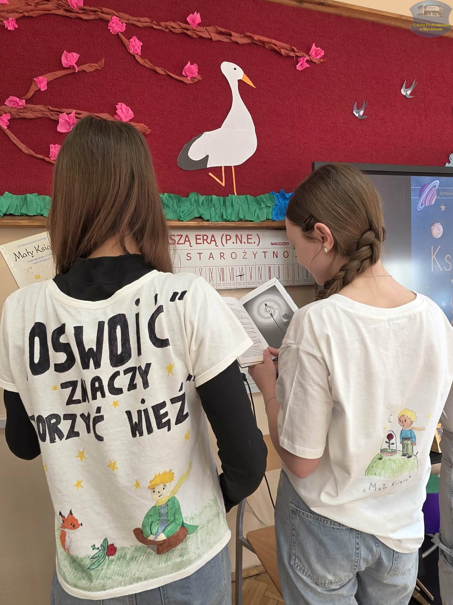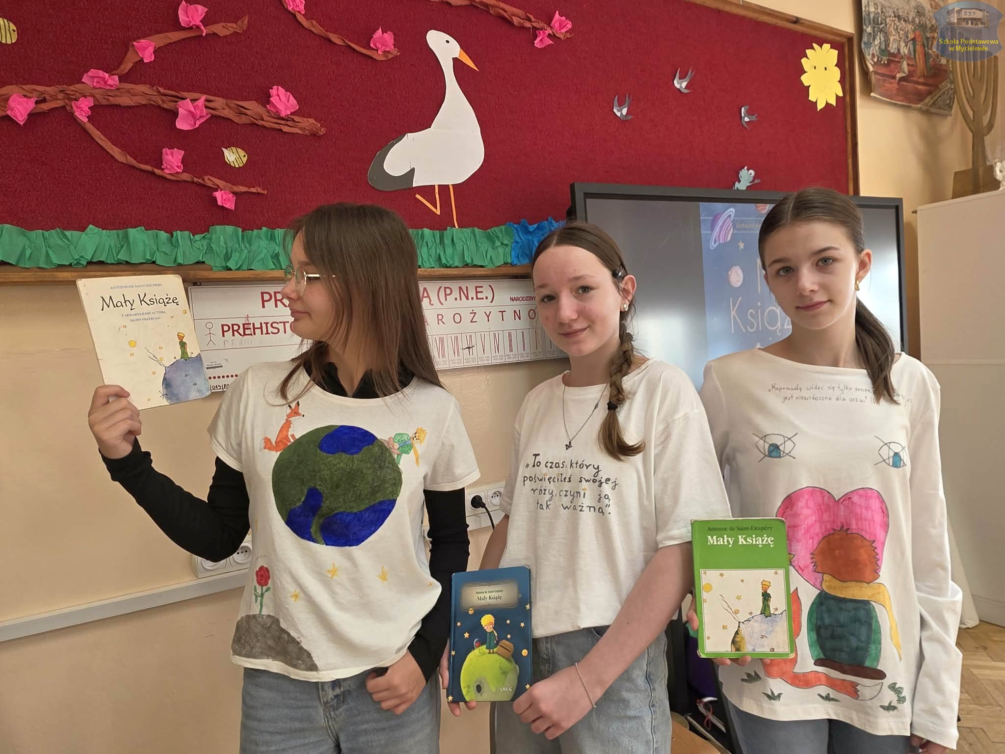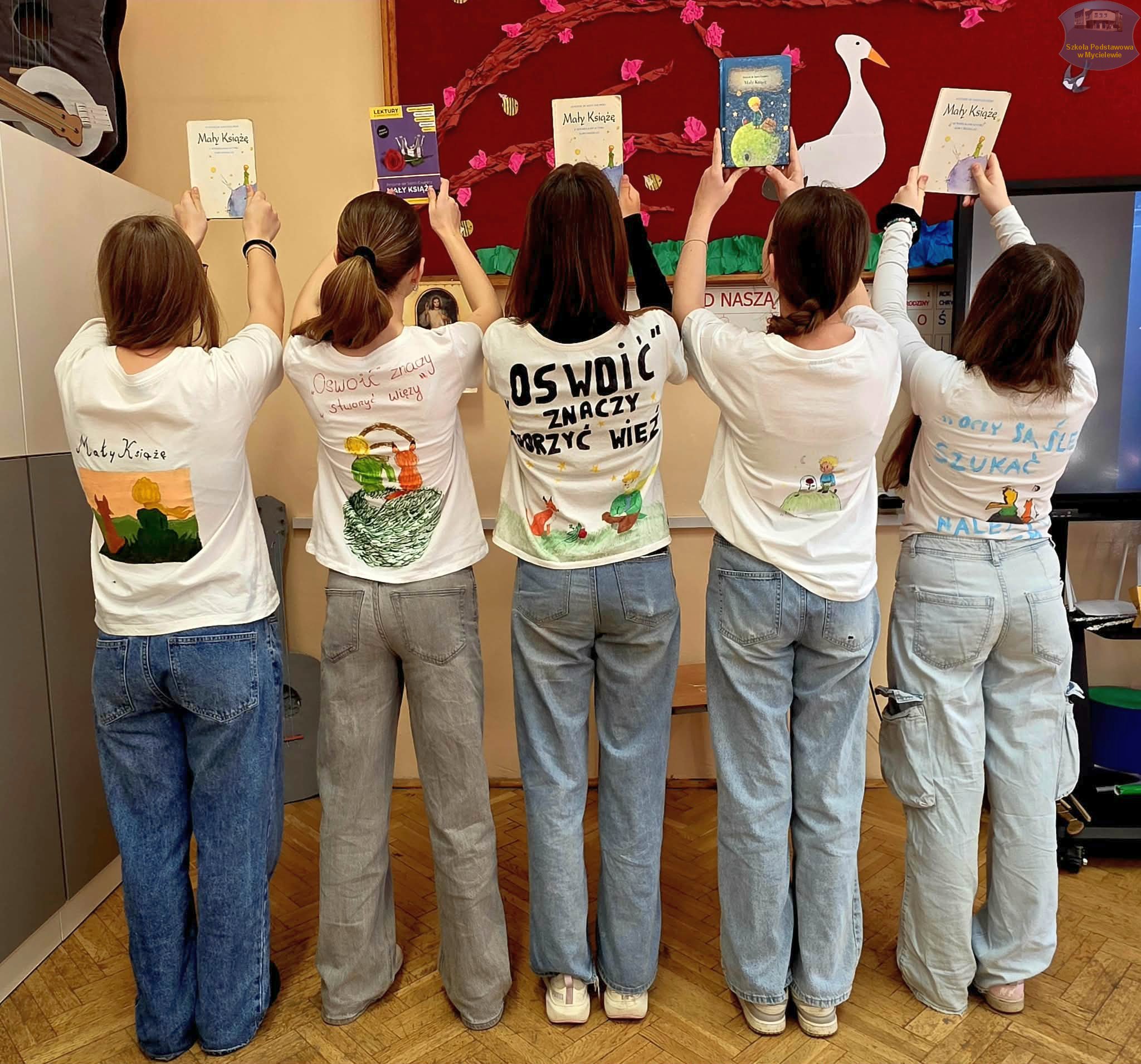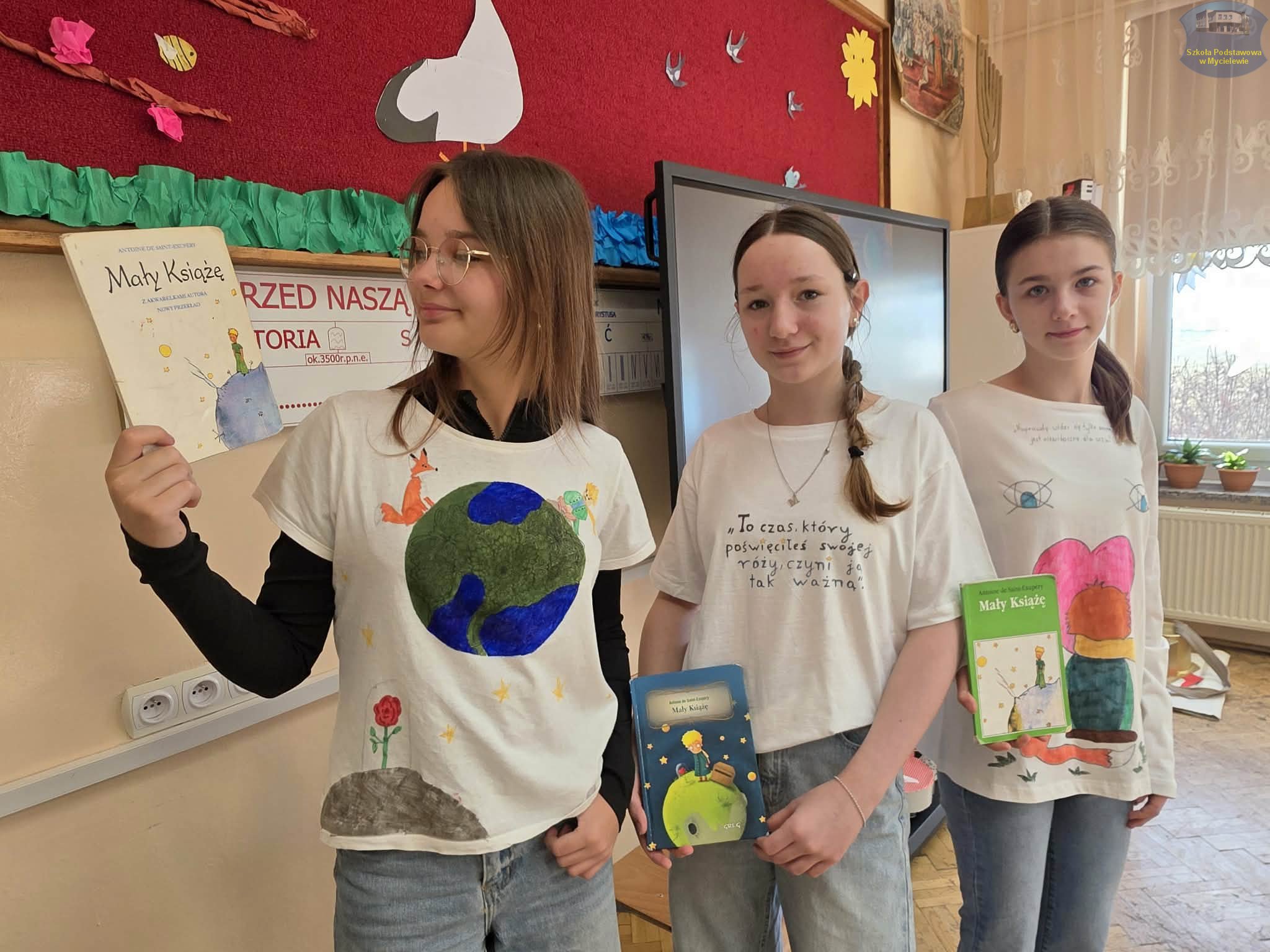 Uczniowie klasy VII podczas lekcji języka polskiego z panią A. Hak zorganizowali akcję „tworzenia więzów” z bohaterem lektury Antoine’a de Saint-Exupéry’ego – Małym Księciem. Siódmoklasiści własnoręcznie wykonali T-shirty z autorskimi ilustracjami oraz cytatami z książki, które niosą ponadczasowe wartości.