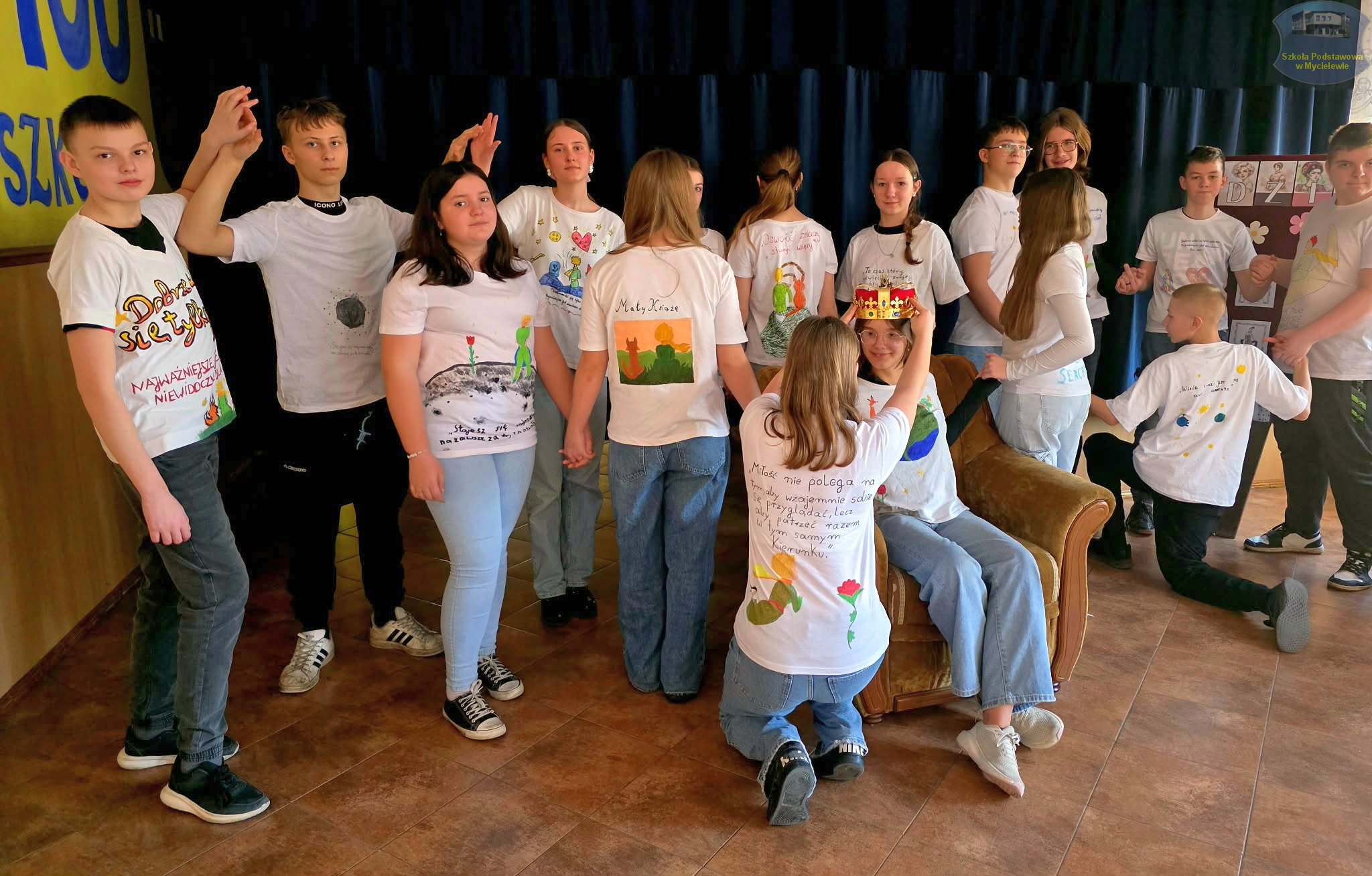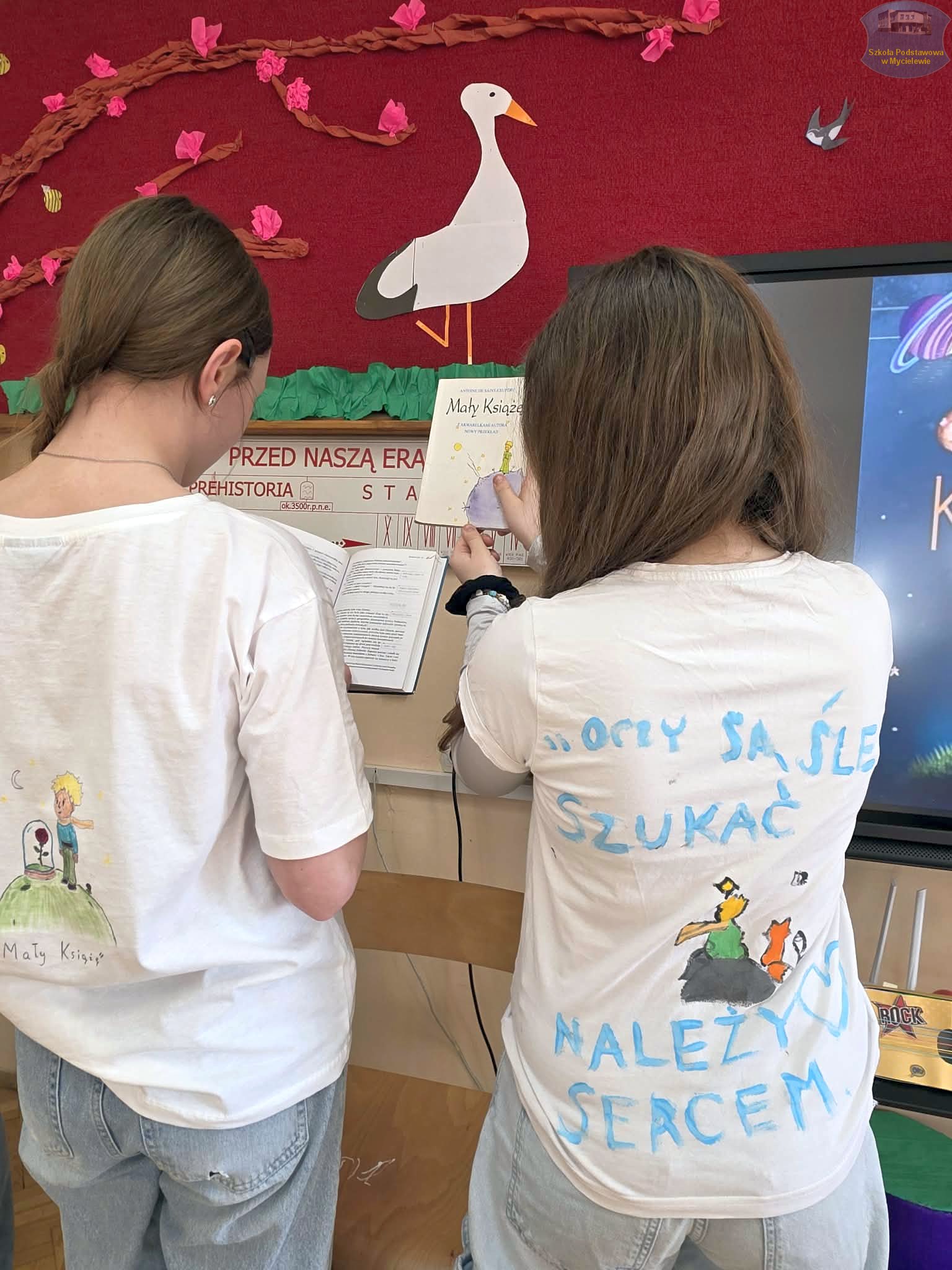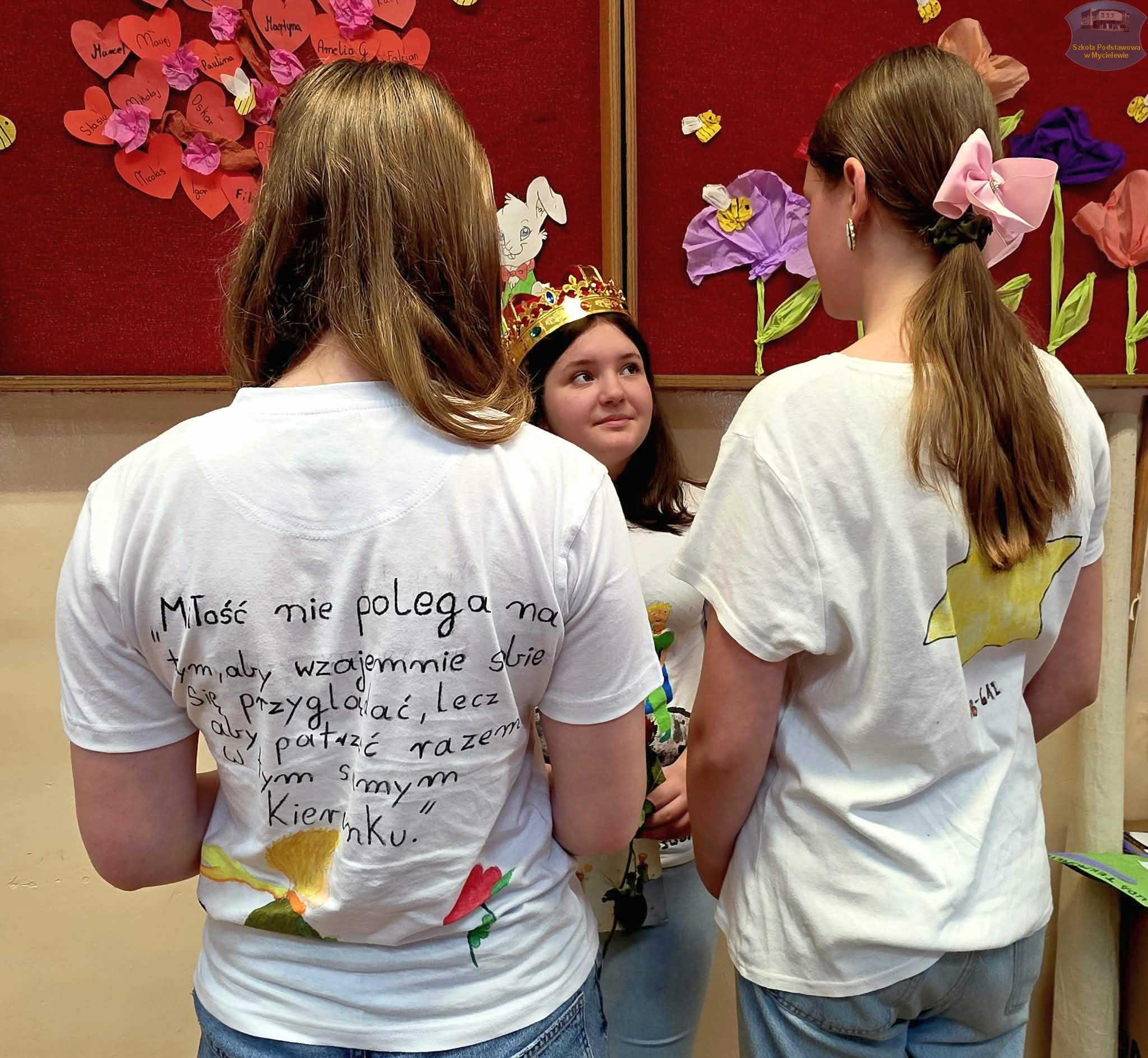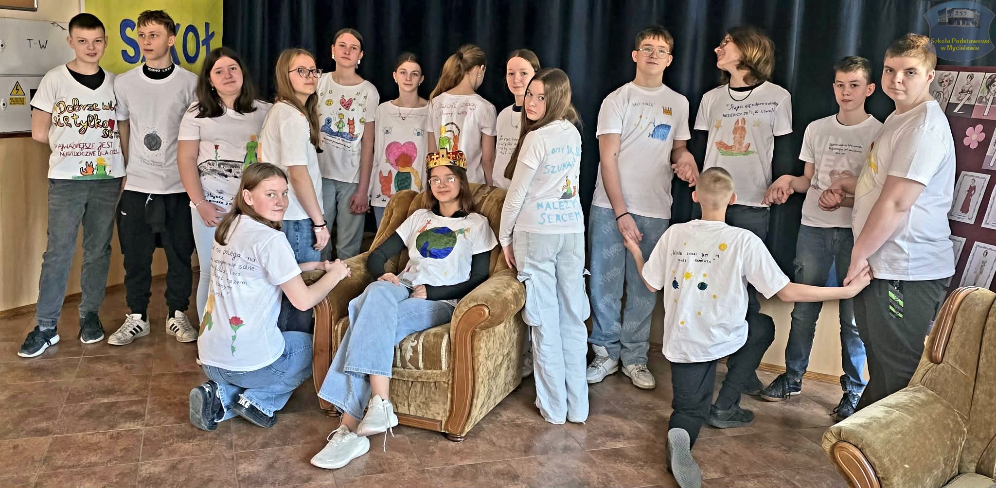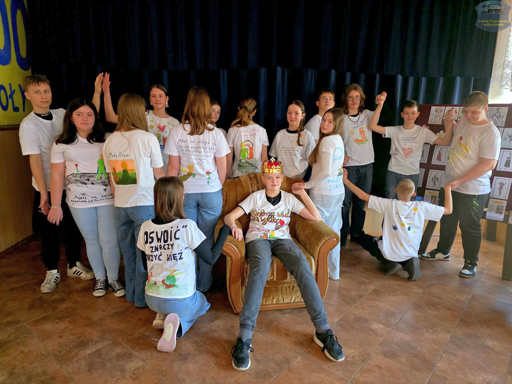 Uczniowie klasy VII podczas lekcji języka polskiego z panią A. Hak zorganizowali akcję „tworzenia więzów” z bohaterem lektury Antoine’a de Saint-Exupéry’ego – Małym Księciem. Siódmoklasiści własnoręcznie wykonali T-shirty z autorskimi ilustracjami oraz cytatami z książki, które niosą ponadczasowe wartości.