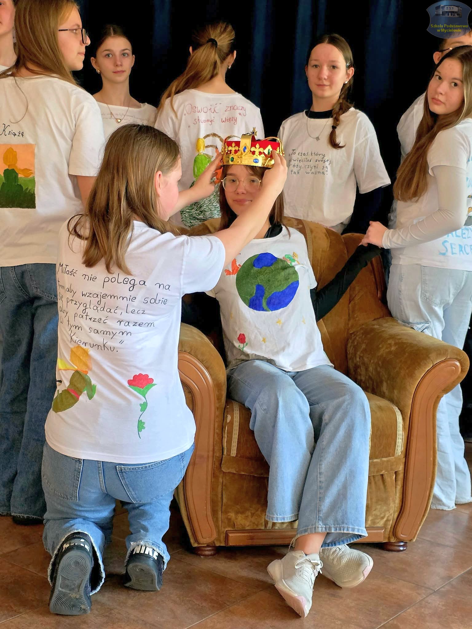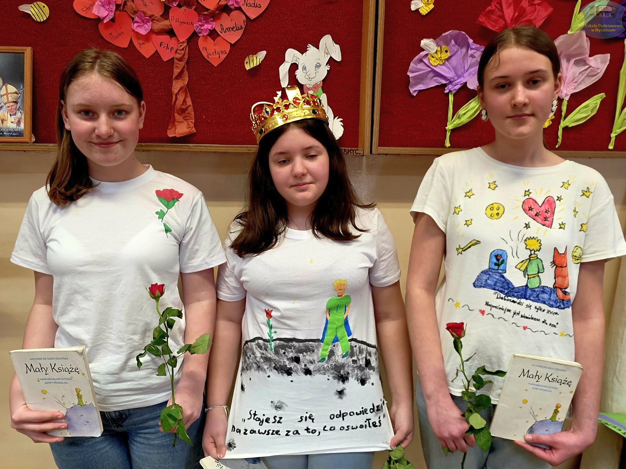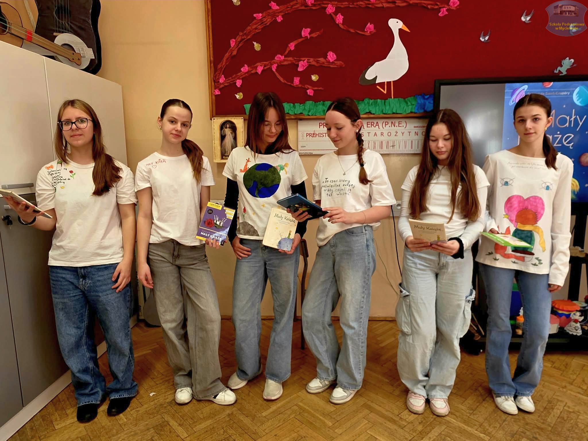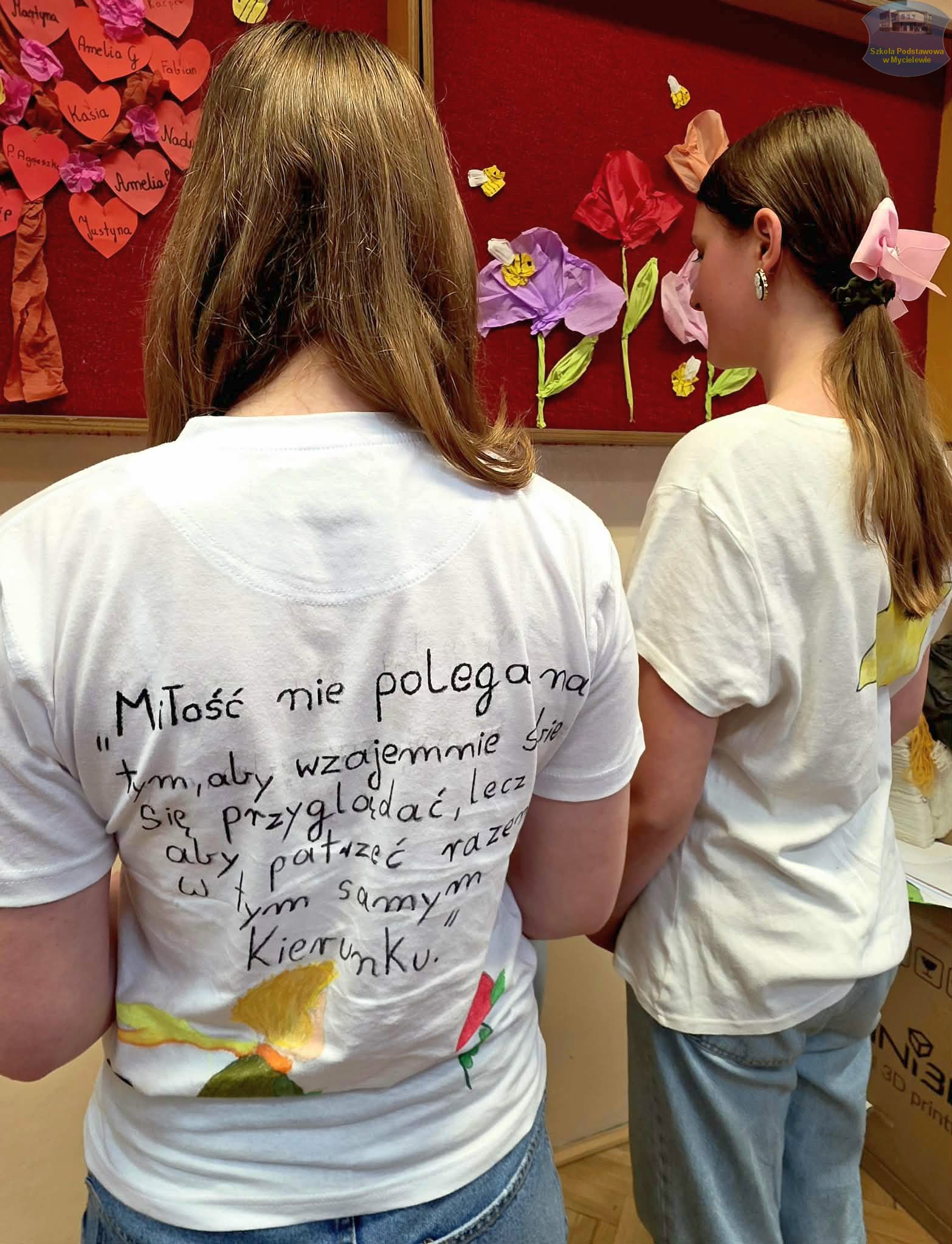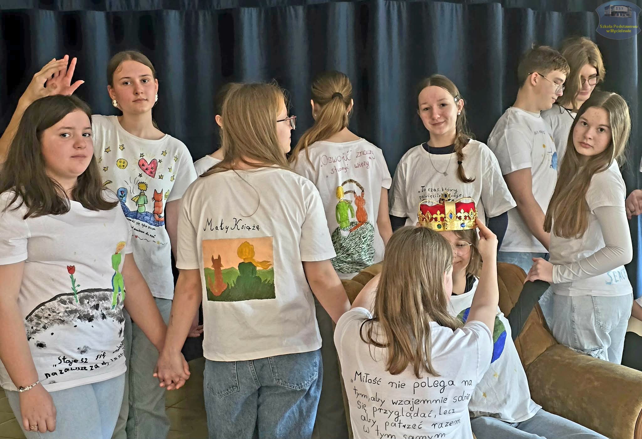 Uczniowie klasy VII podczas lekcji języka polskiego z panią A. Hak zorganizowali akcję „tworzenia więzów” z bohaterem lektury Antoine’a de Saint-Exupéry’ego – Małym Księciem. Siódmoklasiści własnoręcznie wykonali T-shirty z autorskimi ilustracjami oraz cytatami z książki, które niosą ponadczasowe wartości.