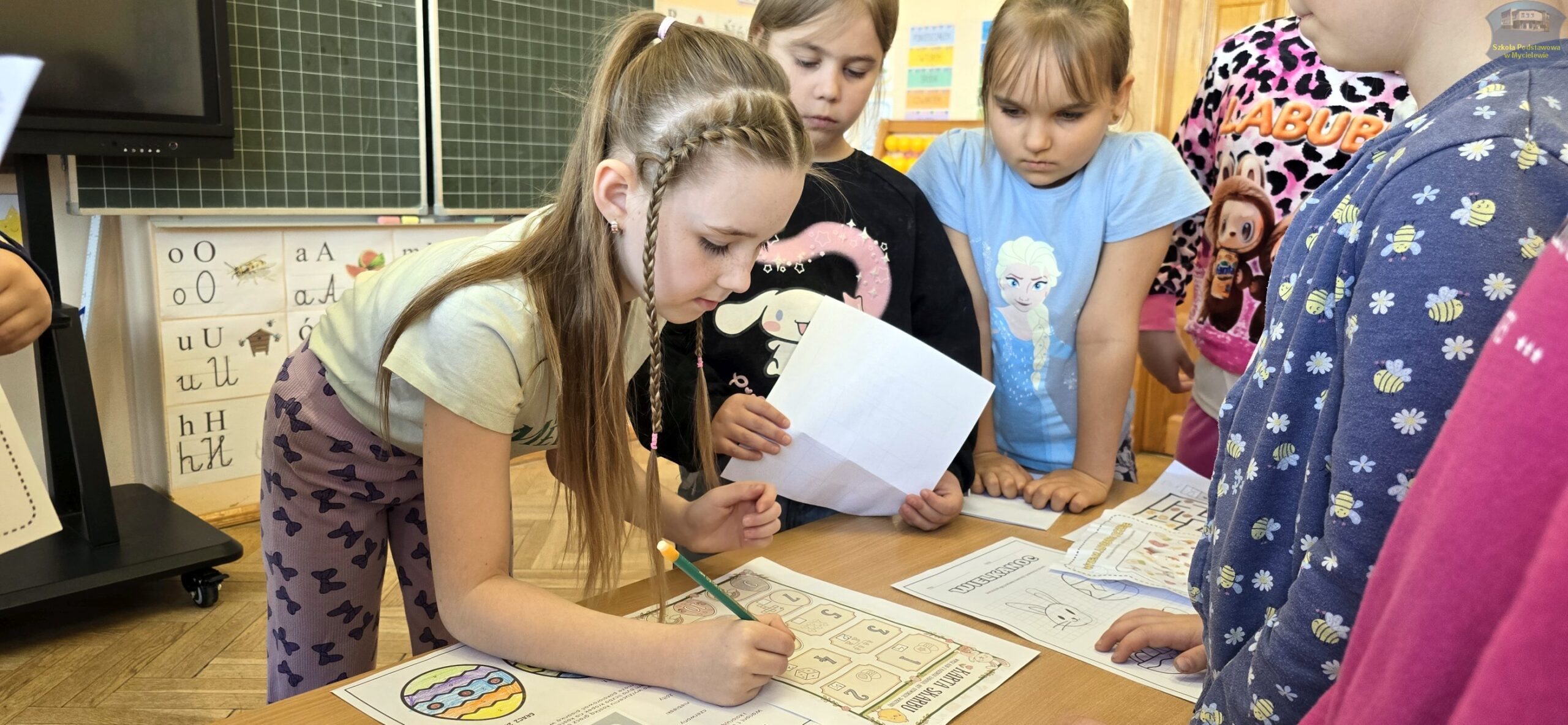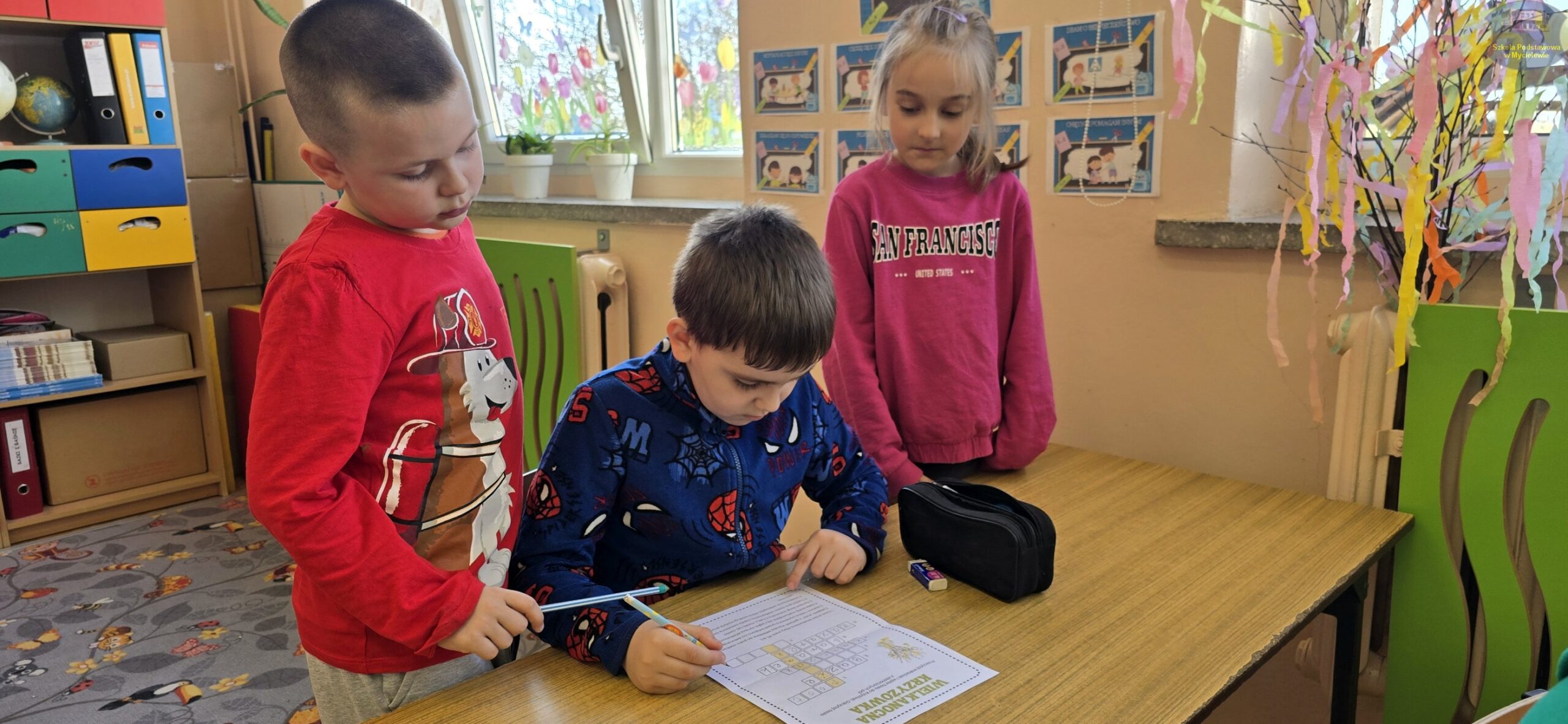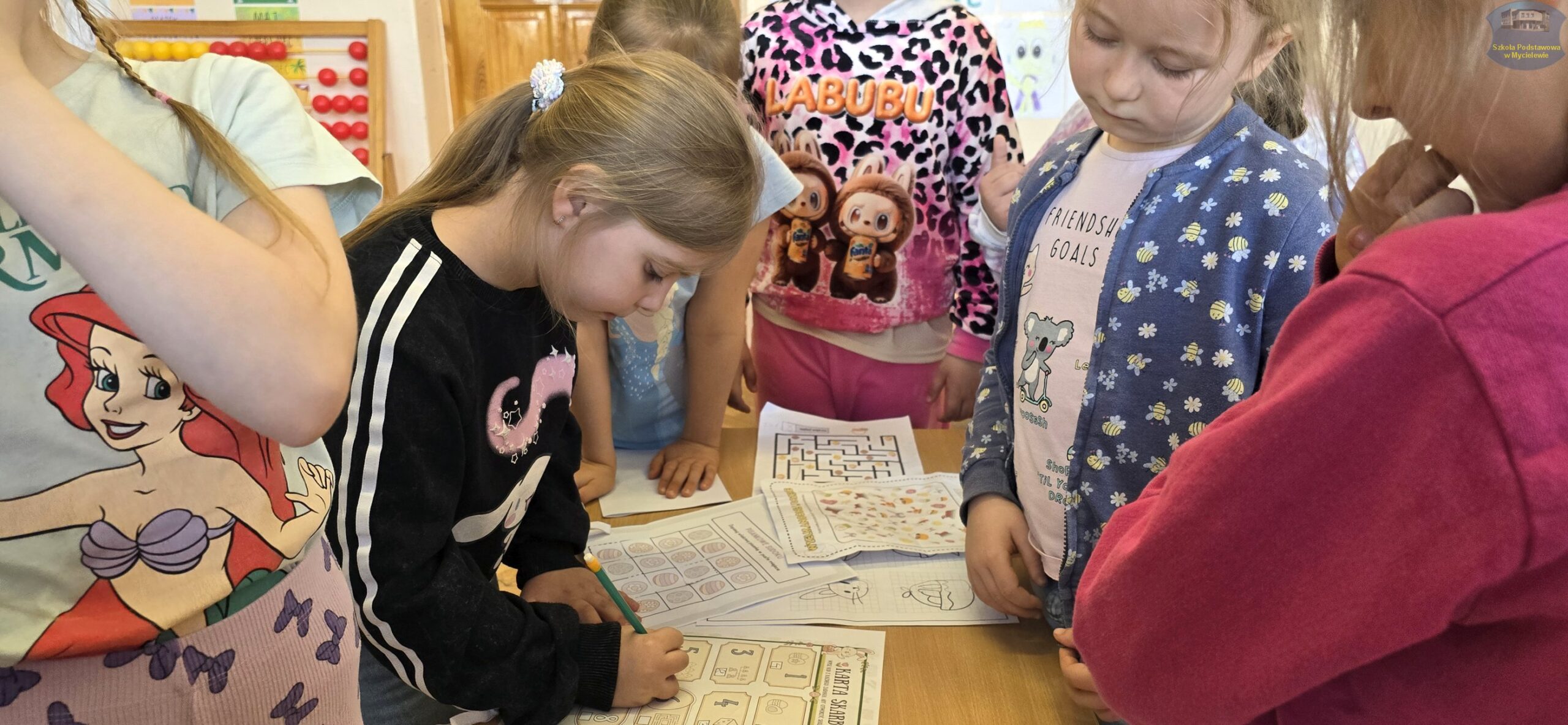 Na dzieci czekało wiele różnorodnych prób. Z wielkim skupieniem odtwarzały symetryczne rysunki, dopasowywały pisanki w pary, szukały właściwych dróg w labiryntach oraz rozwiązywały tematyczne krzyżówki i sudoku obrazkowe. Nie zabrakło także zadań matematycznych oraz ćwiczeń rozwijających spostrzegawczość i logiczne myślenie. Każda poprawna odpowiedź przybliżała grupę do złamania tajemniczego szyfru.