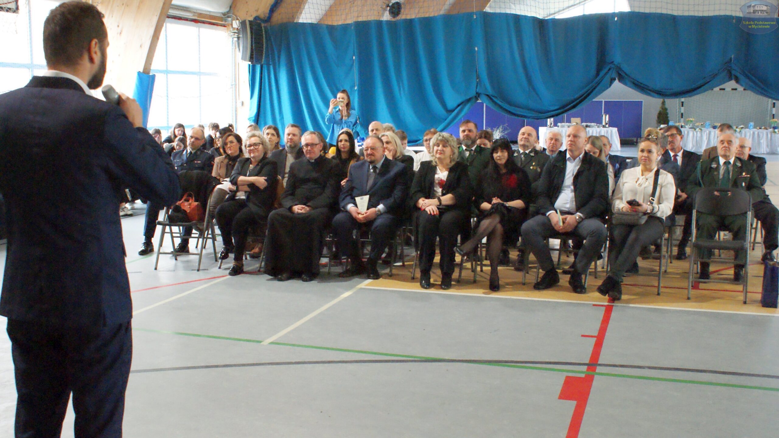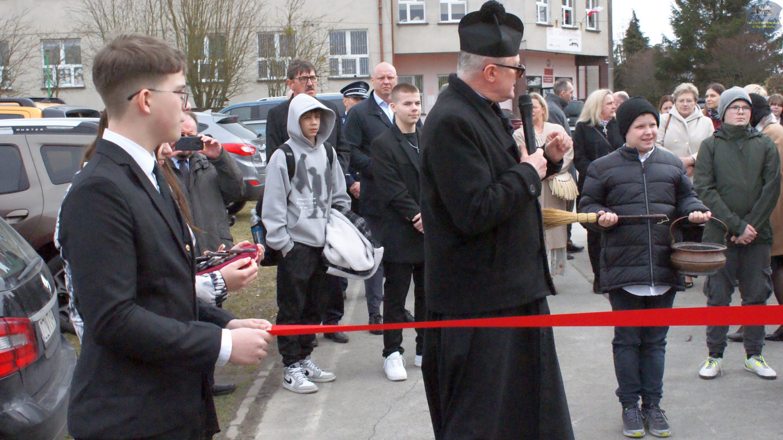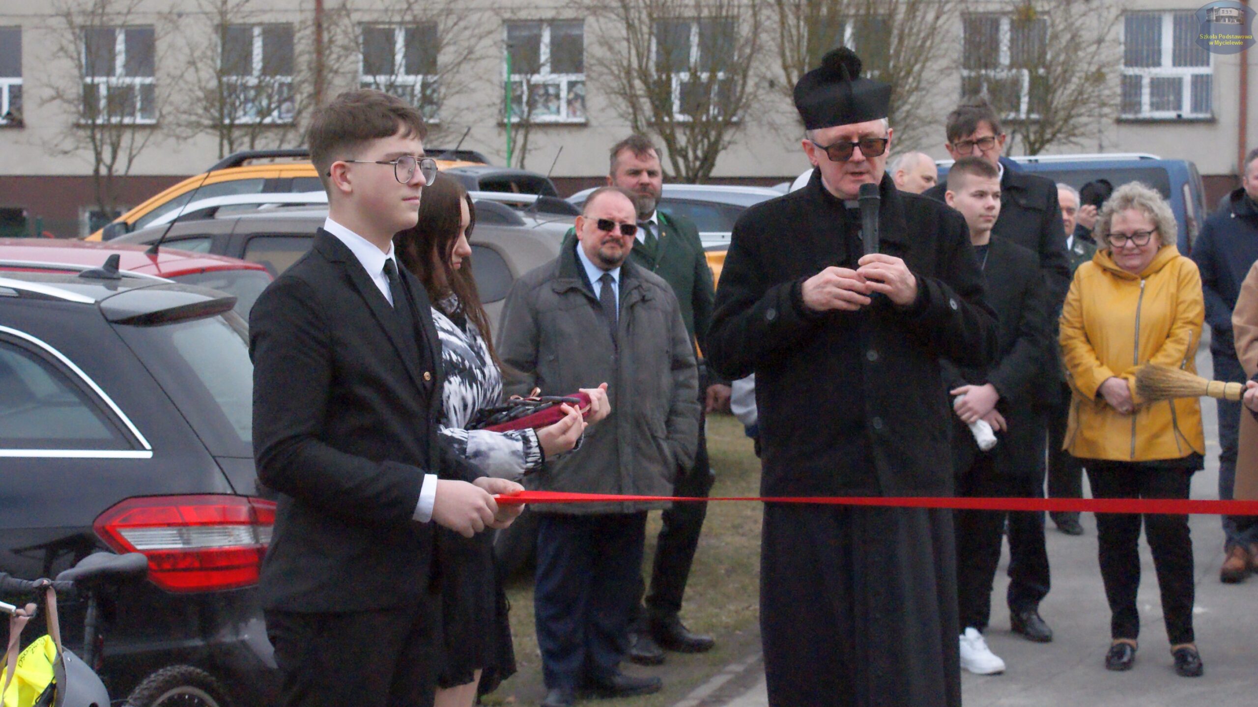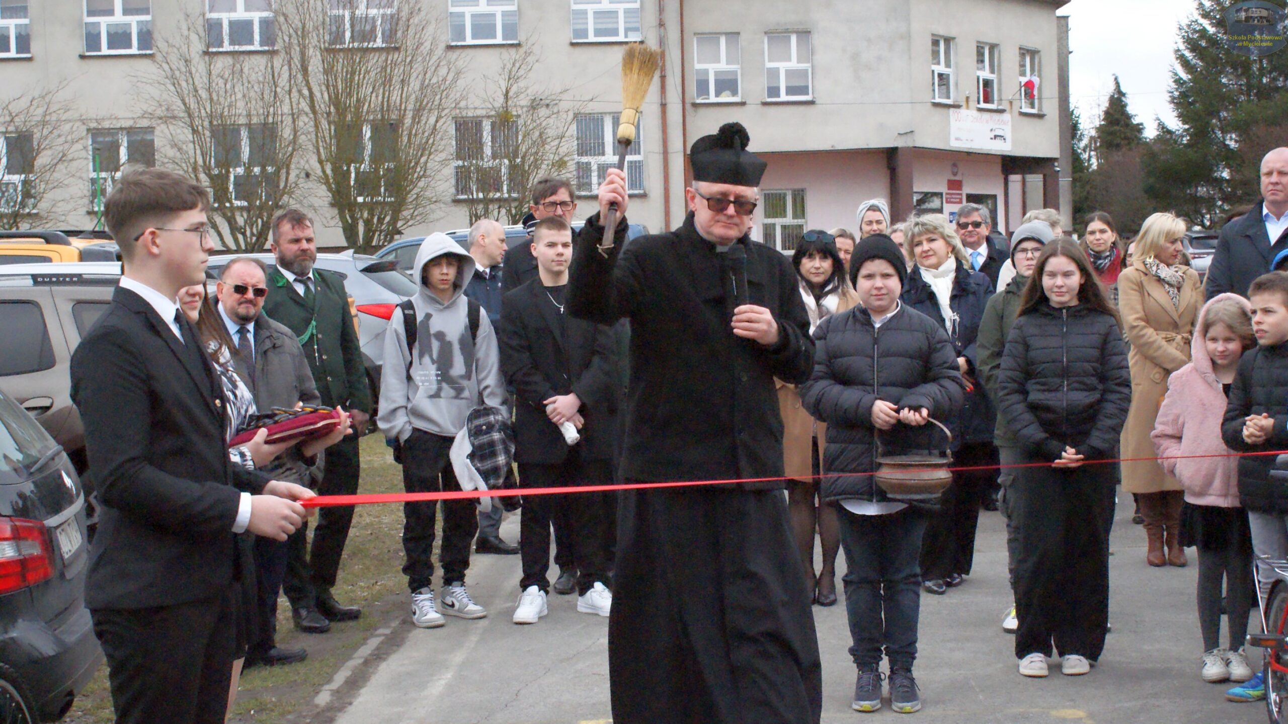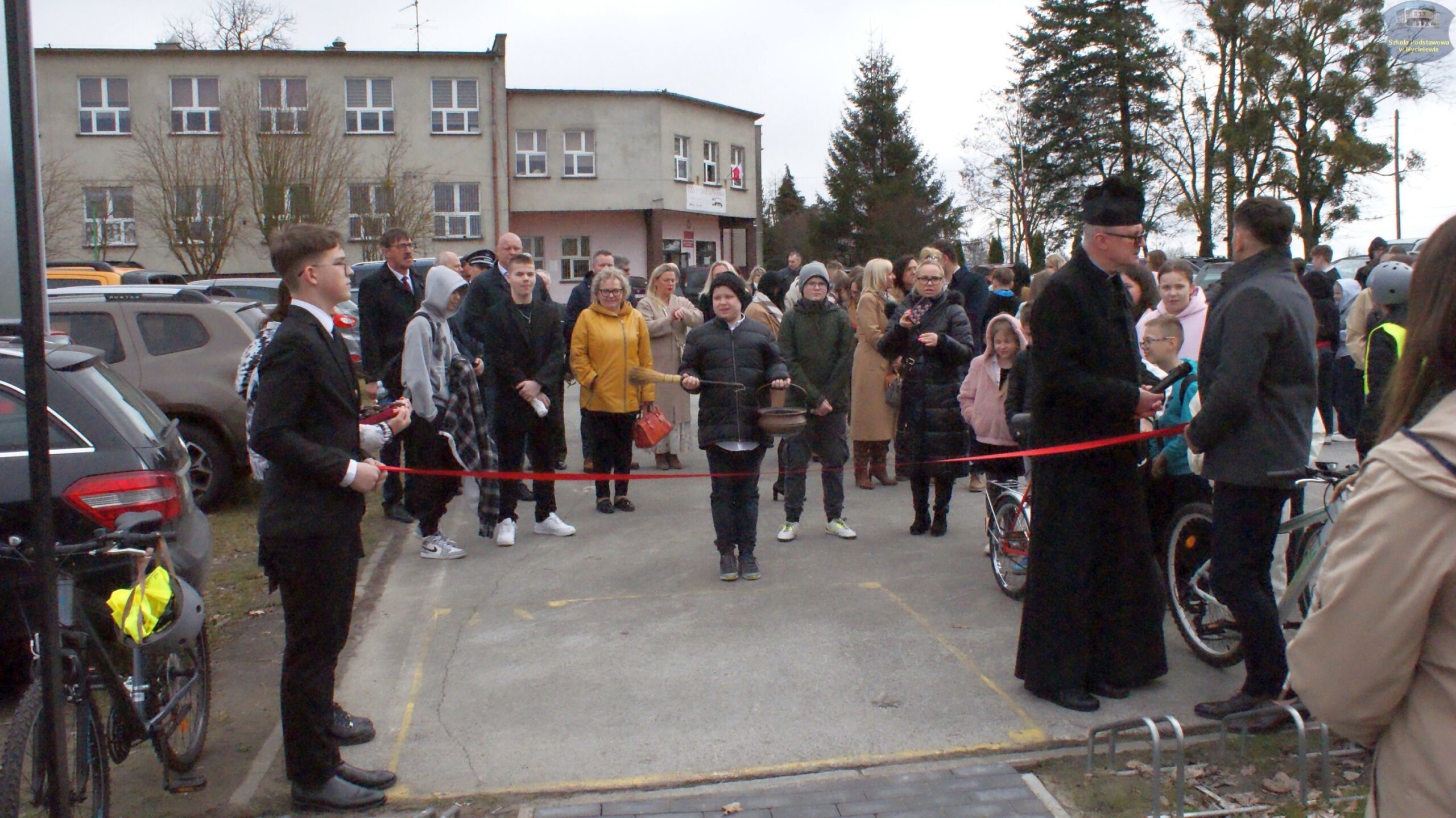 Po przemówieniach gości i poświęceniu obiektu przez ks. proboszcza Zbigniewa Grzegorzewskiego, nastąpił kulminacyjny punkt programu – przecięcie wstęgi. Symbolicznego przecięcia wstęgi dokonali: Mateusz Stachowiak, Zbigniew Witczak, Sebastian Piórkowski, Aleksander Nowakowski, Anna Borkowska, Katarzyna Walasiewicz oraz przedstawiciele uczniów: Pola Kamińska (Mały Samorząd Uczniowski) i Alan Hak (Samorząd Uczniowski).