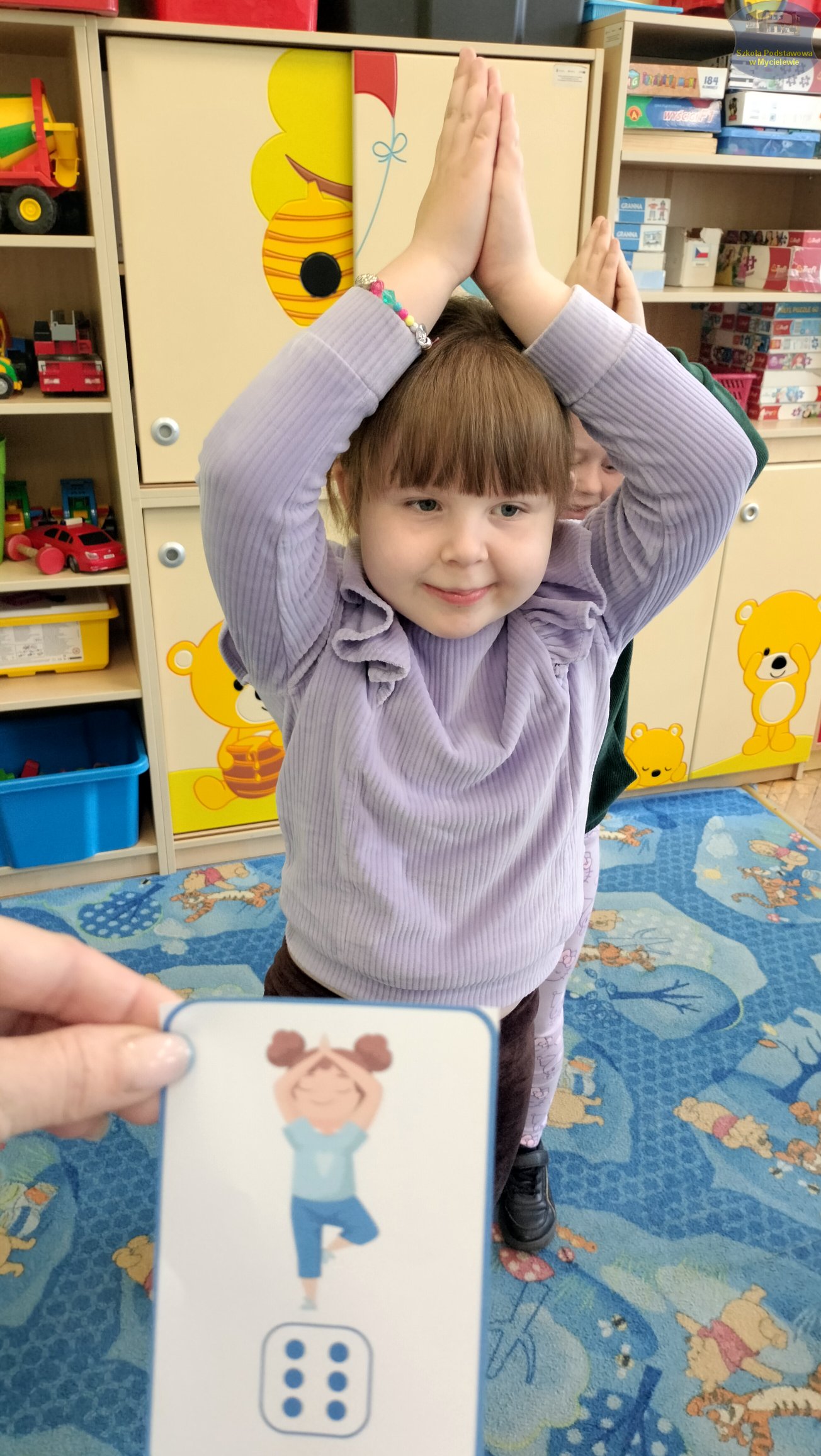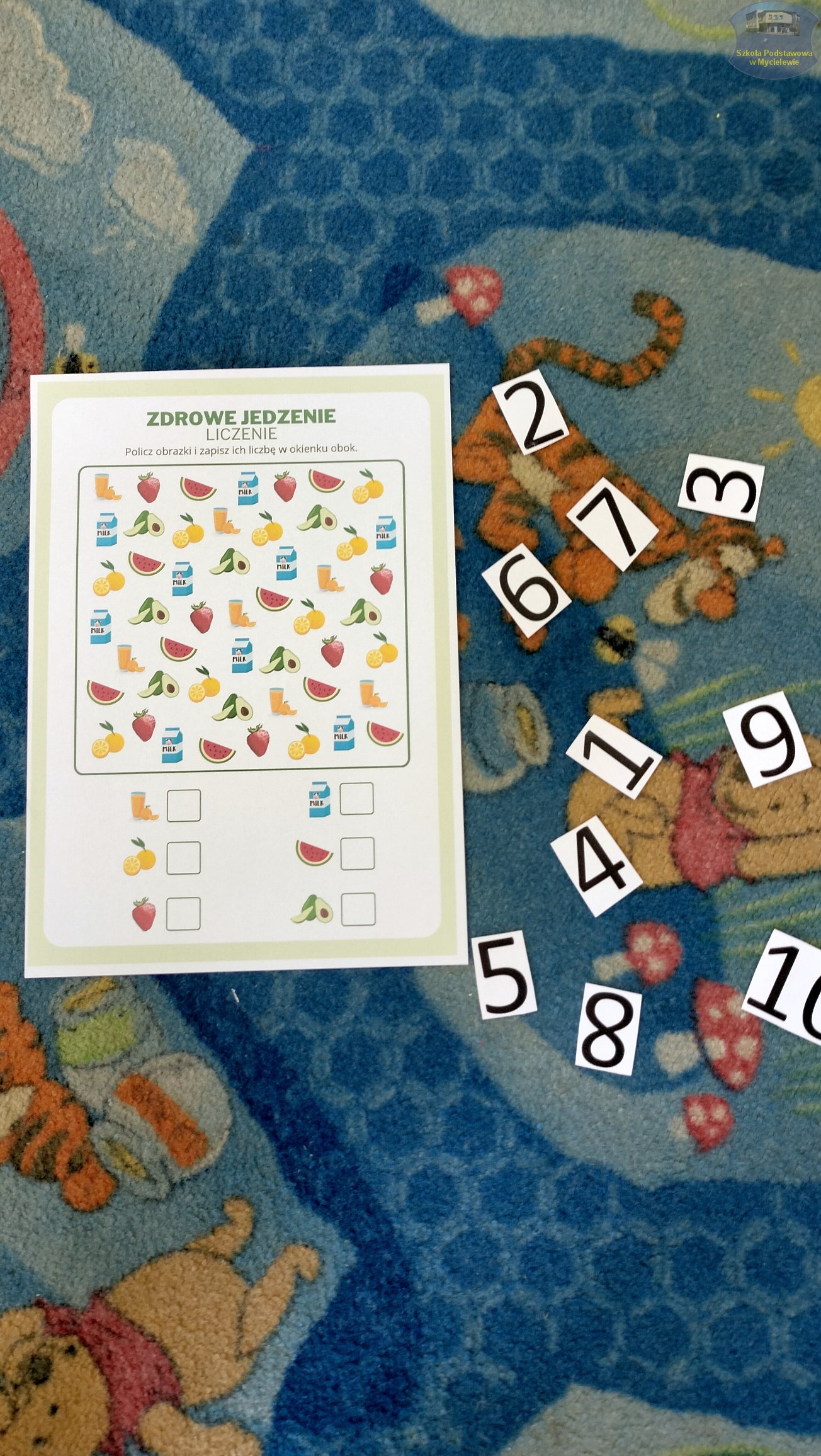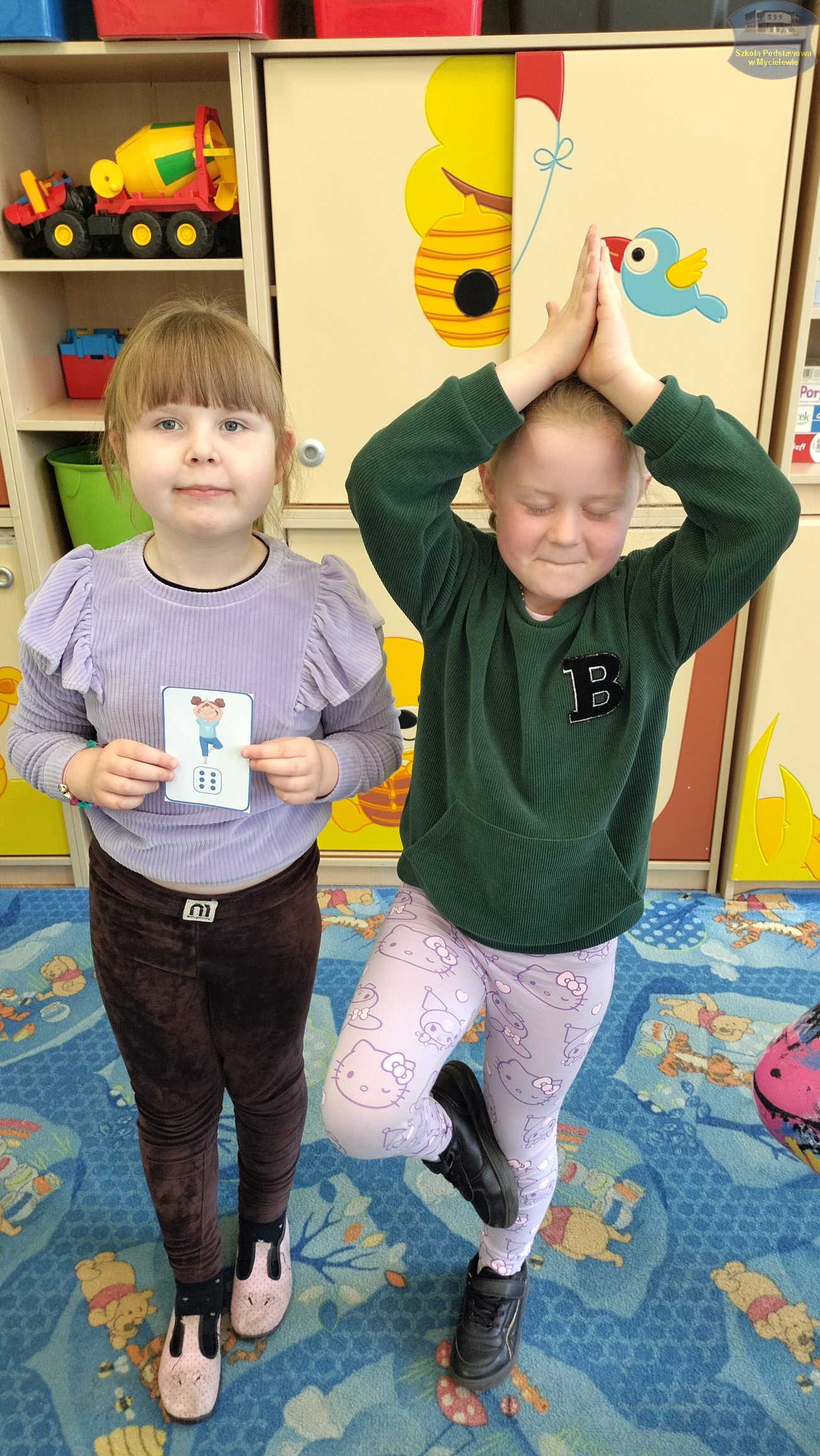 Dzieci rozwijały również umiejętności matematyczne, przeliczając i kolorując wybrane artykuły spożywcze. Nie zabrakło oczywiście ruchu – przedszkolaki wzięły udział w radosnej gimnastyce oraz ćwiczyły elementy jogi, co dostarczyło im mnóstwo pozytywnej energii.