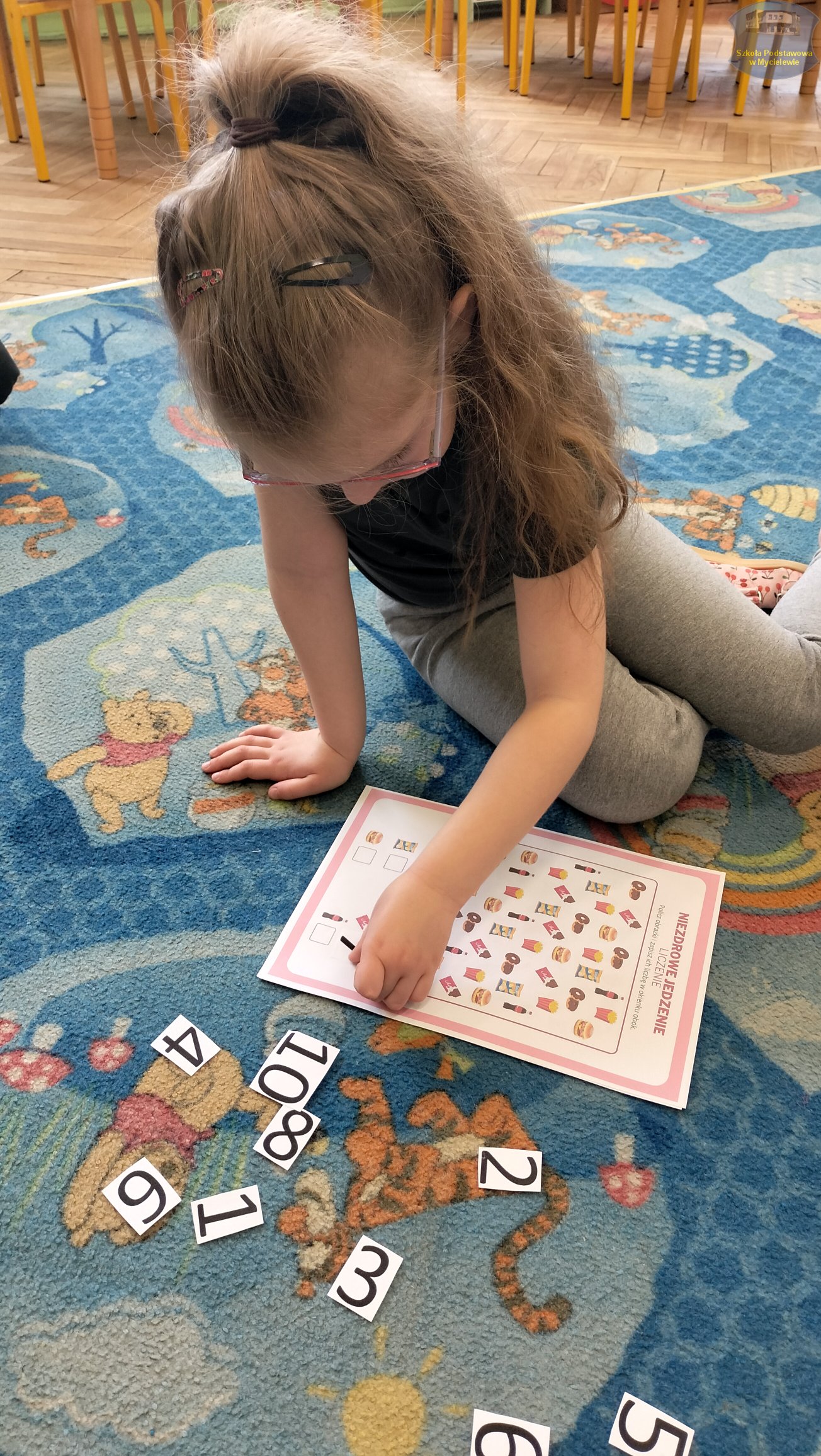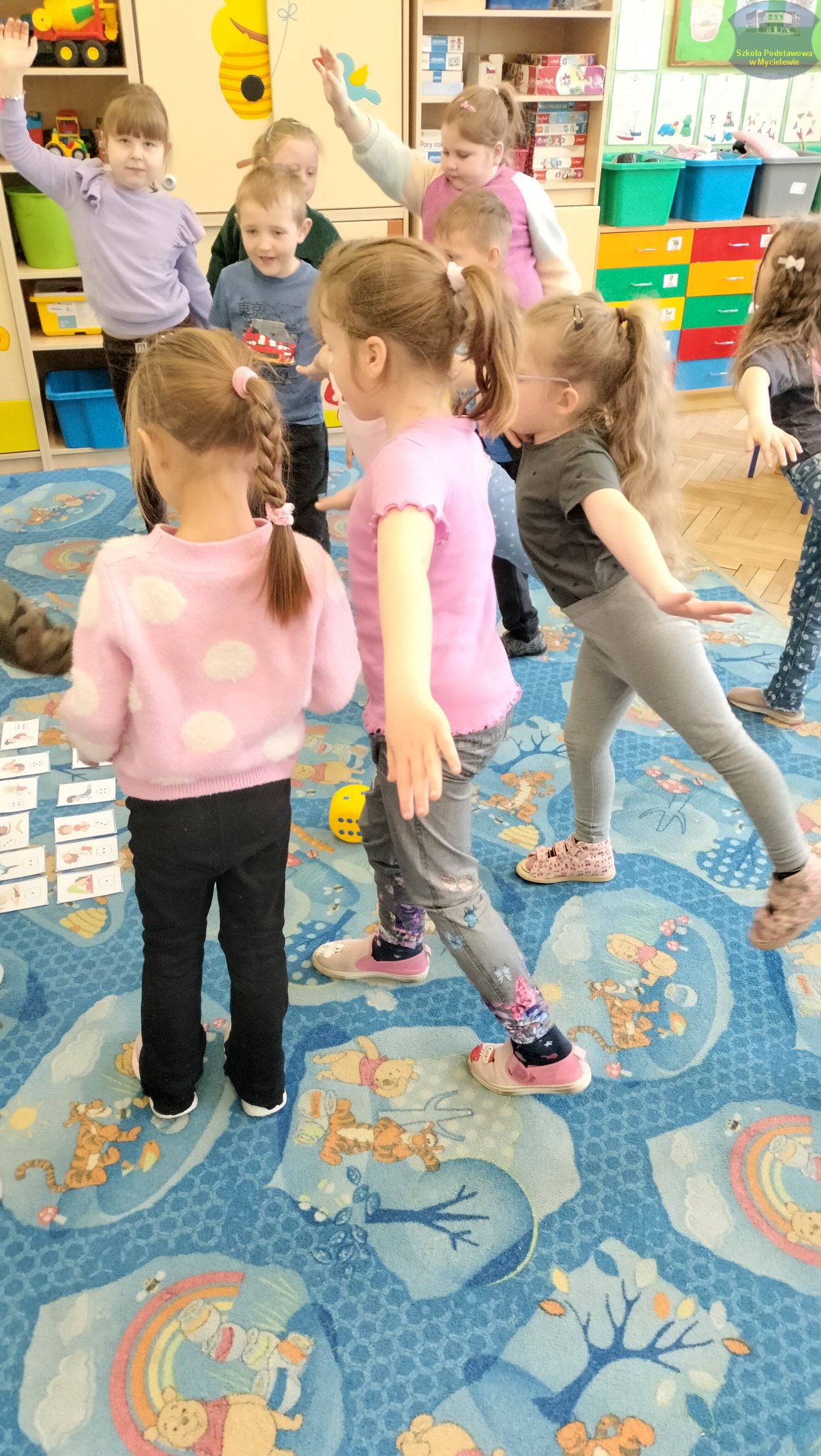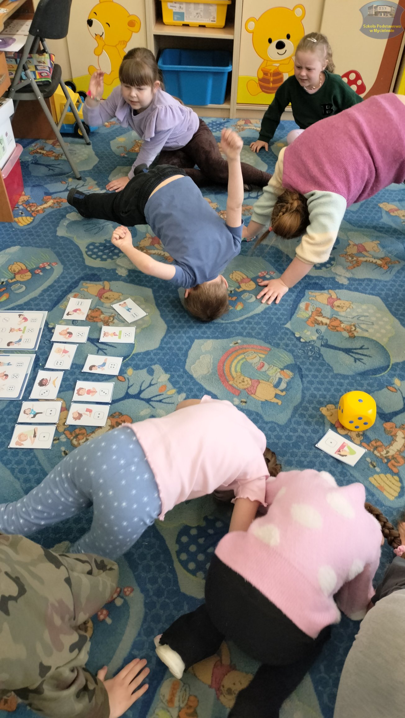 Dzieci rozwijały również umiejętności matematyczne, przeliczając i kolorując wybrane artykuły spożywcze. Nie zabrakło oczywiście ruchu – przedszkolaki wzięły udział w radosnej gimnastyce oraz ćwiczyły elementy jogi, co dostarczyło im mnóstwo pozytywnej energii.