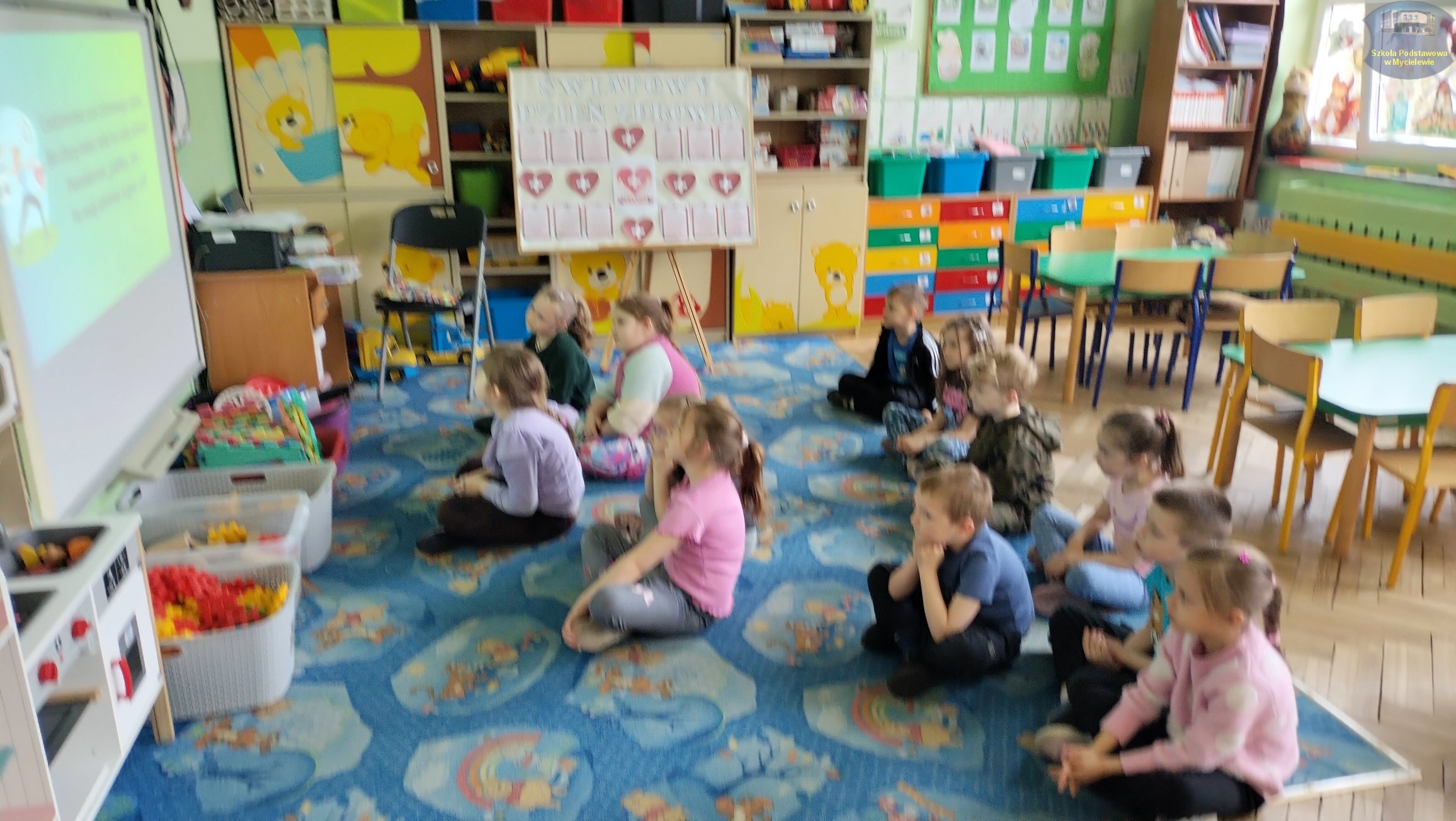 Na początku zajęć przedszkolaki poznały temat spotkania dzięki plakatom edukacyjnym oraz projekcji filmu pt. „Zdrowie to skarb!”, który w przystępny sposób pokazał, jak dbać o siebie na co dzień. W trakcie wspólnych rozmów dzieci dowiedziały się, czym są nawyki i dlaczego te zdrowe są tak istotne. Poznały również znaczenie aktywności fizycznej oraz nauczyły się odróżniać wartościowe produkty od tych niezdrowych, zgłębiając przy tym tajniki zbilansowanej diety.