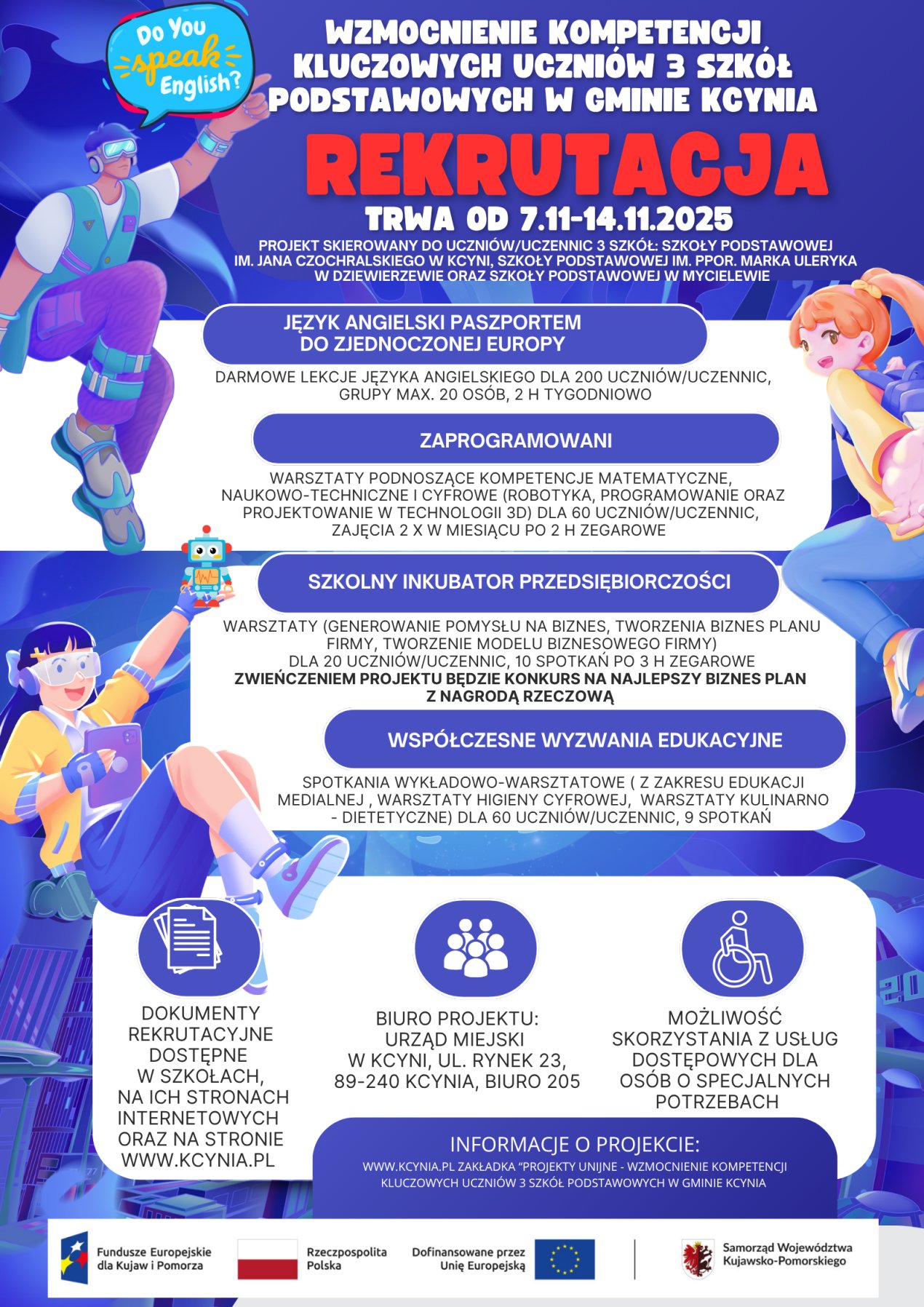Gmina Kcynia zaprasza uczniów i uczennice oraz nauczycieli i nauczycielki ze szkół w Kcyni, Dziewierzewie i Mycielewie do udziału w projekcie pn.