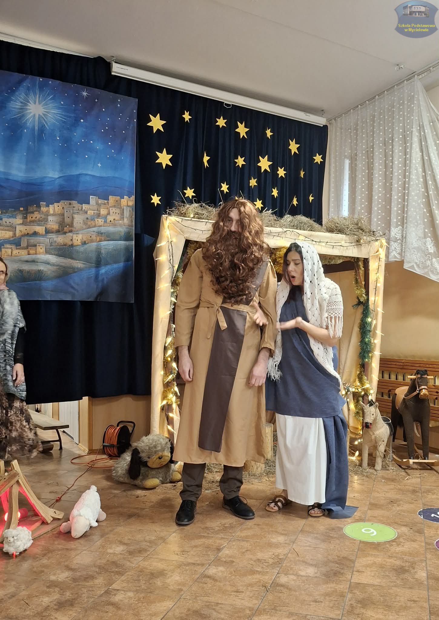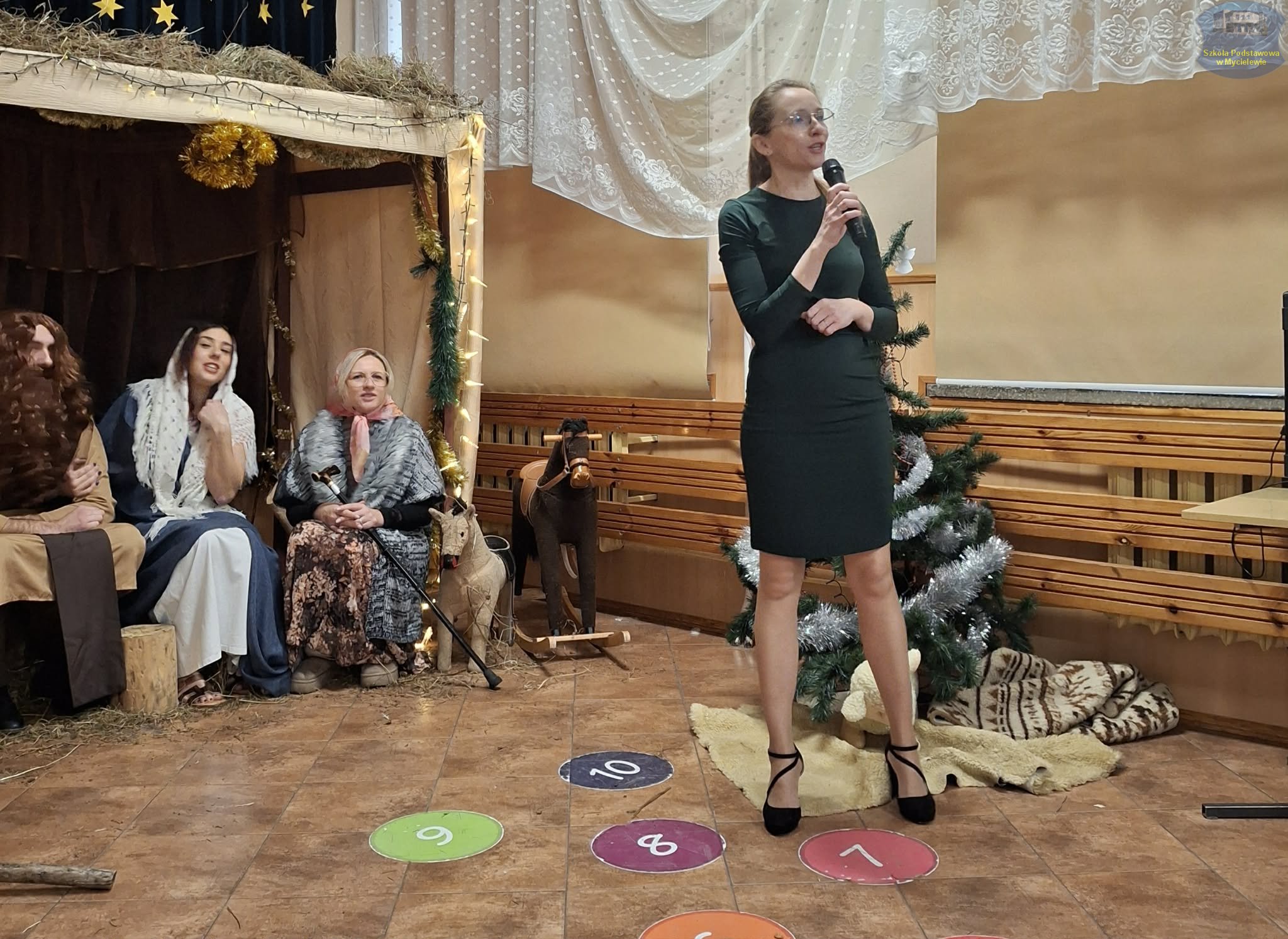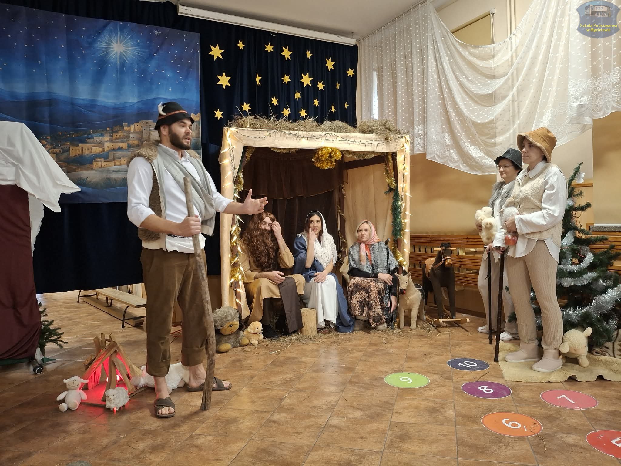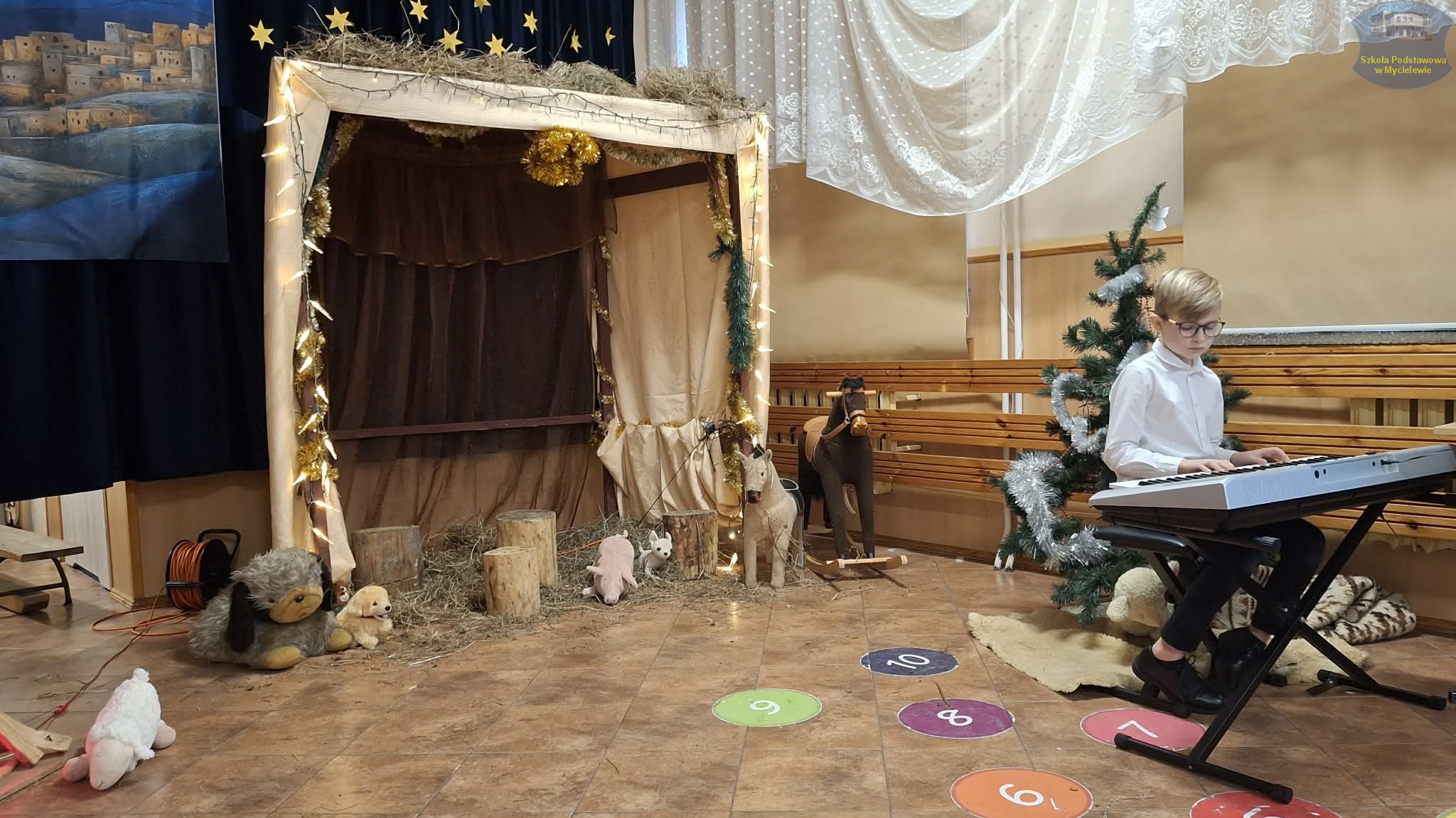 Tuż przed jasełkami w wyjątkowo piękny i refleksyjny klimat wprowadził nas Mieszko Wojtysiak, który zagrał na keyboardzie kolędę „Cicha noc”. To subtelne wykonanie stworzyło atmosferę skupienia i oczekiwania na najważniejszą część spotkania.