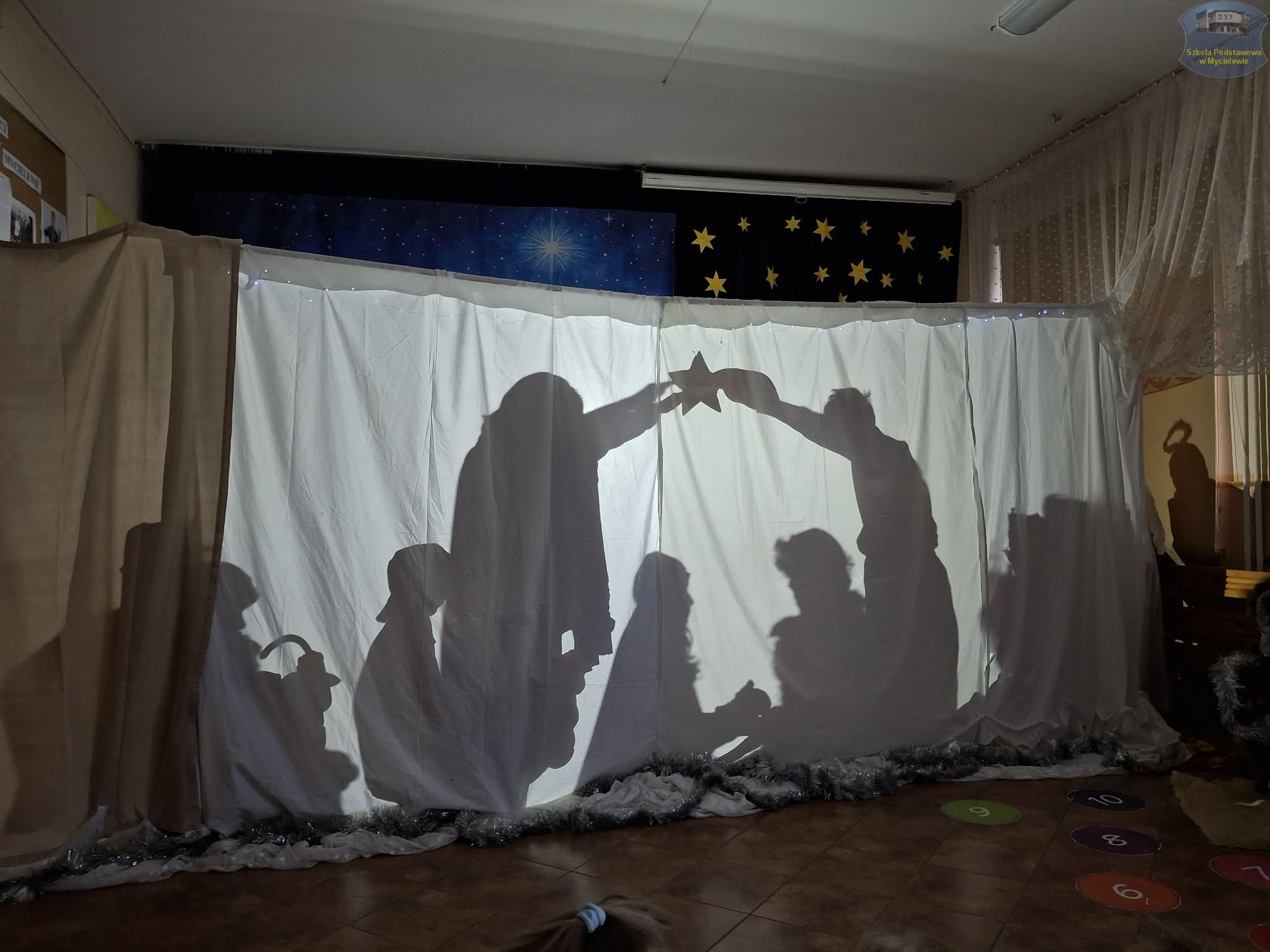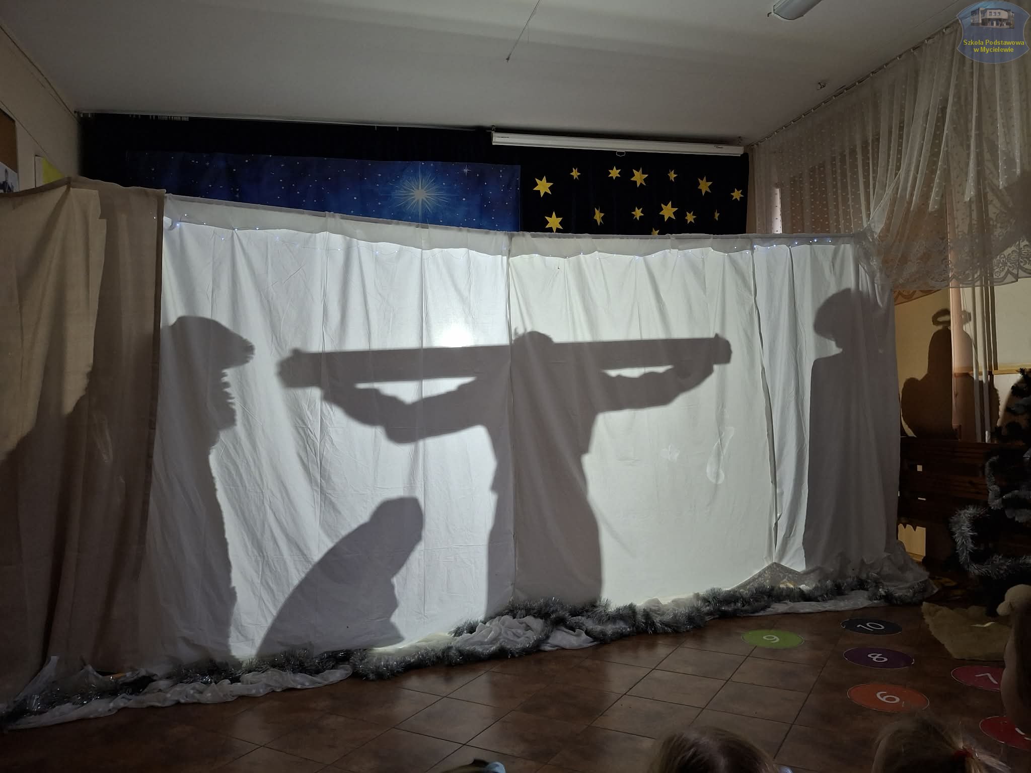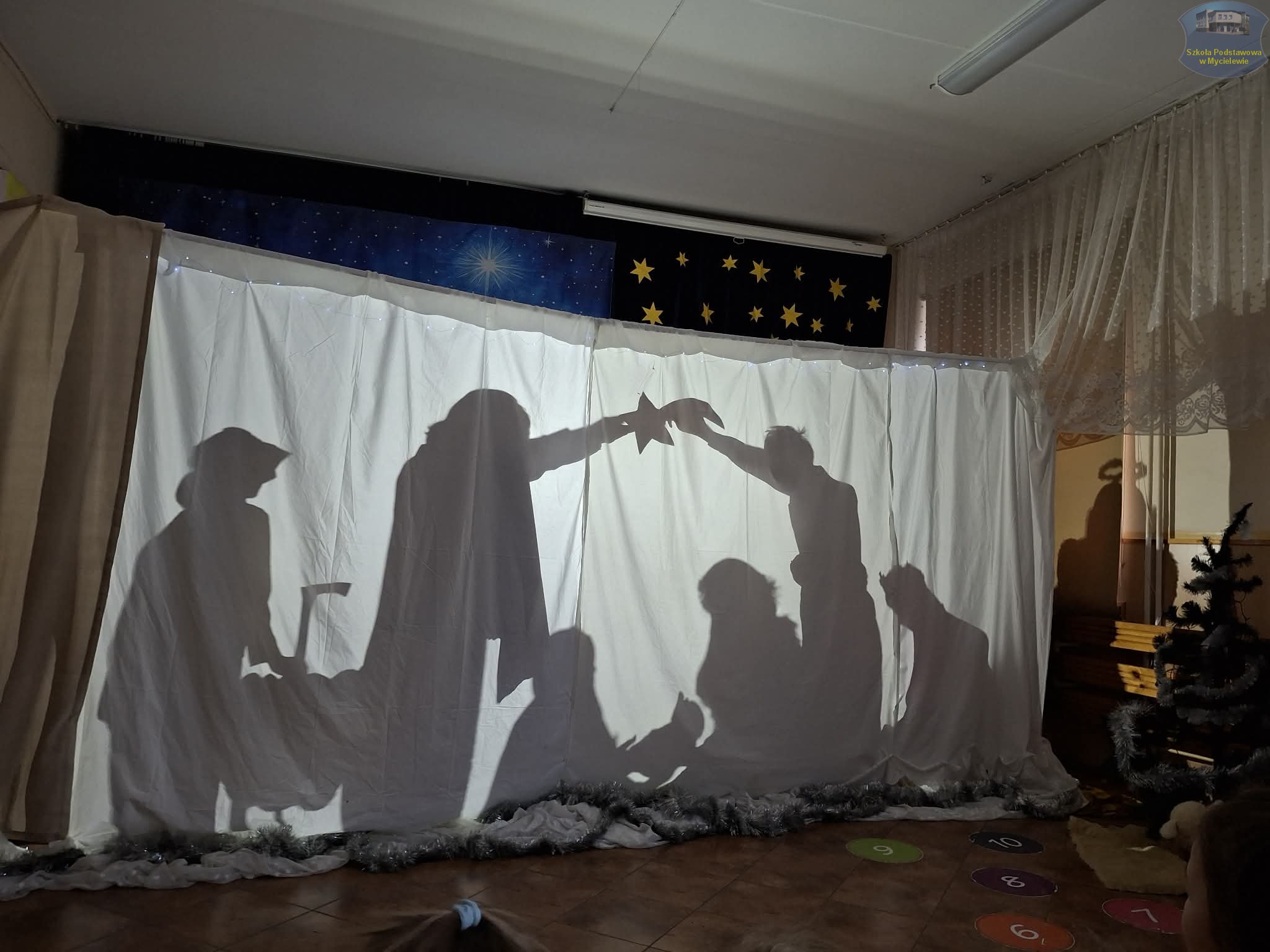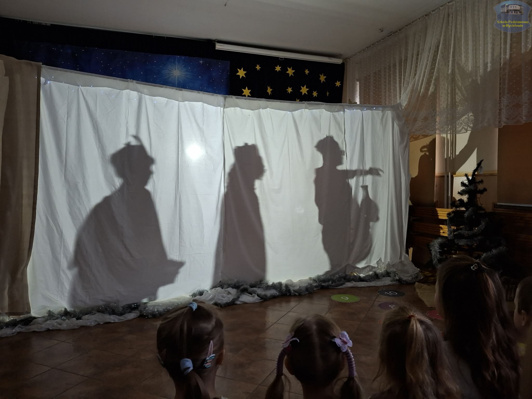 Jako pierwsi na scenie zaprezentowali się uczniowie w niezwykle nastrojowym „Teatrze Cieni” pt. „Noel”, przygotowanym pod kierunkiem pani Agnieszki Koralewskiej-Hak. Przedstawienie zachwyciło publiczność swoją formą, delikatnością oraz świątecznym przesłaniem. Wystąpili uczniowie: Maryja – Martyna Budziszewska, Józef – Alan Hak, Dzieciątko – Jakub Kiliński, Królowie – Oskar Kruger, Stanisław Nowakowski, Rafał Frątczak, Pasterze – Igor Fornalczyk, Maria Rubaszewska, Marcel Chojnacki, Anioły – Katarzyna Buksa, Martyna Wiekiera. W role szopki wcielili się Maciej Łuksztedt i Mikołaj Pezacki.