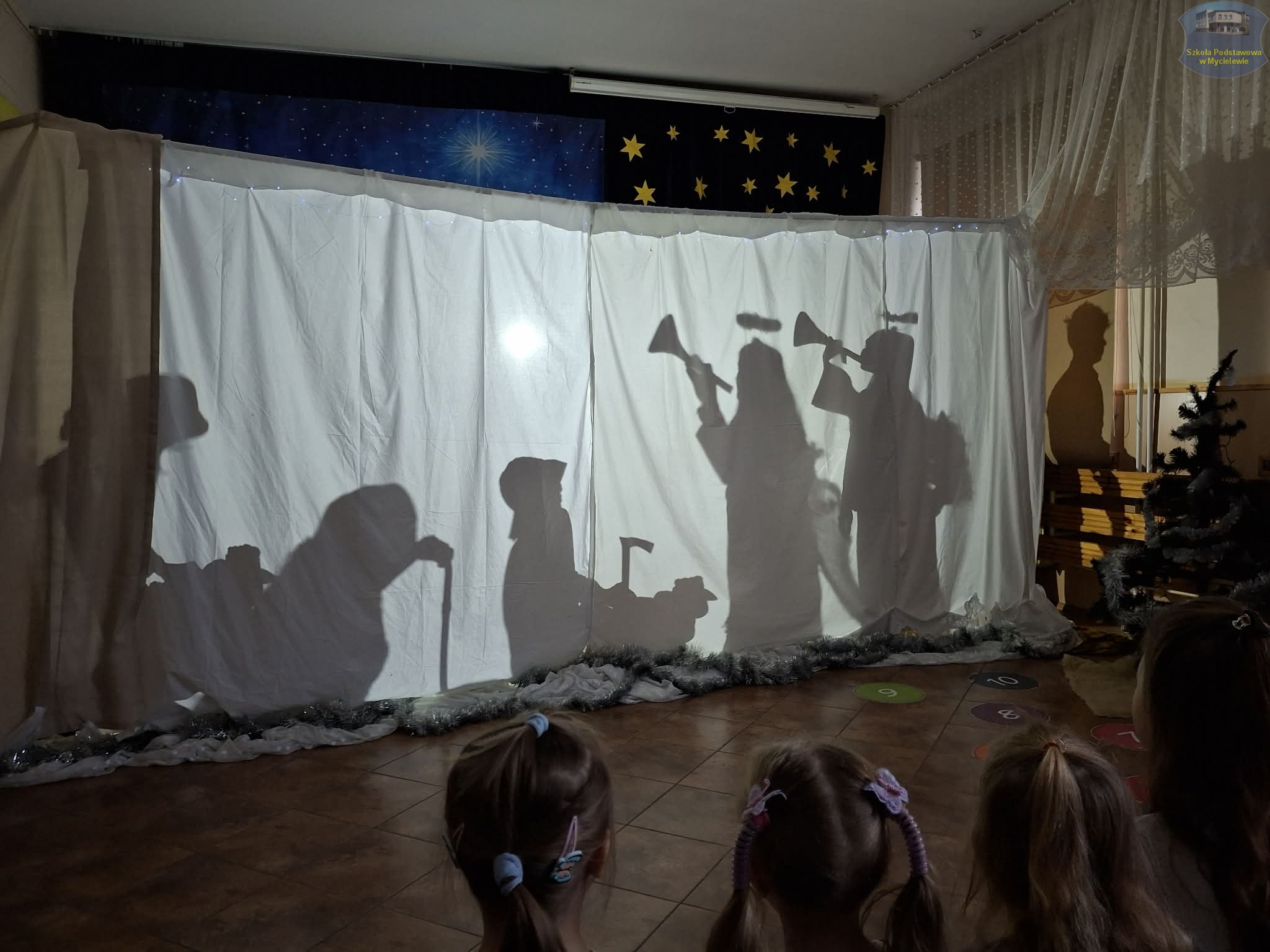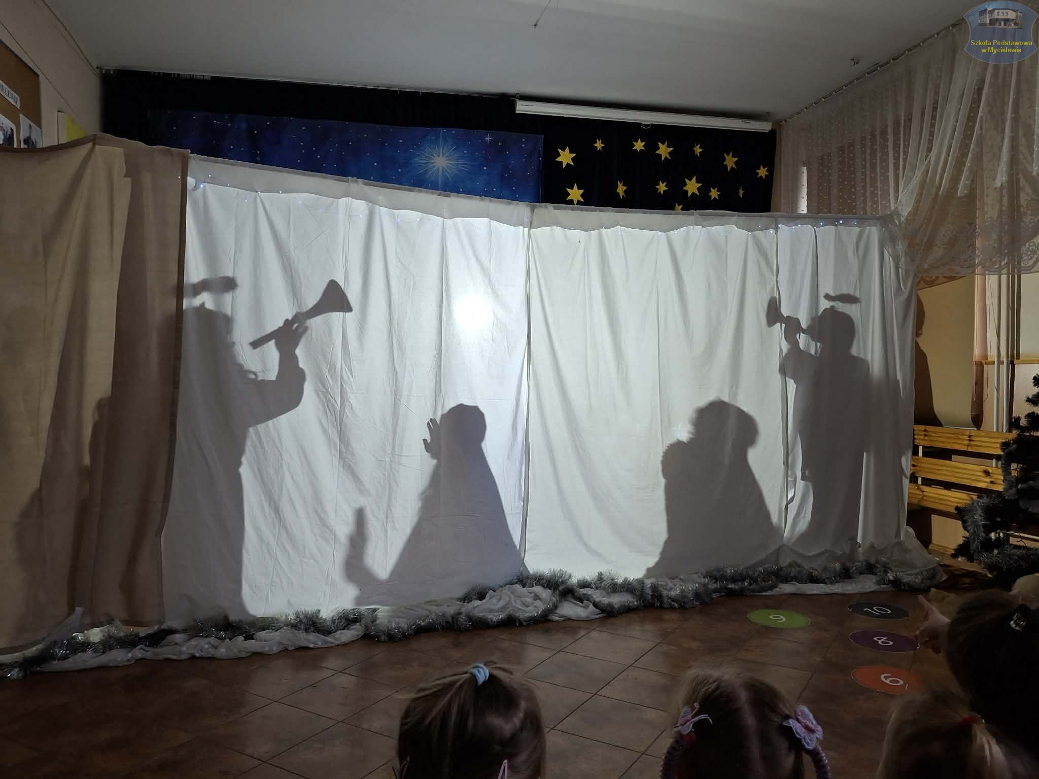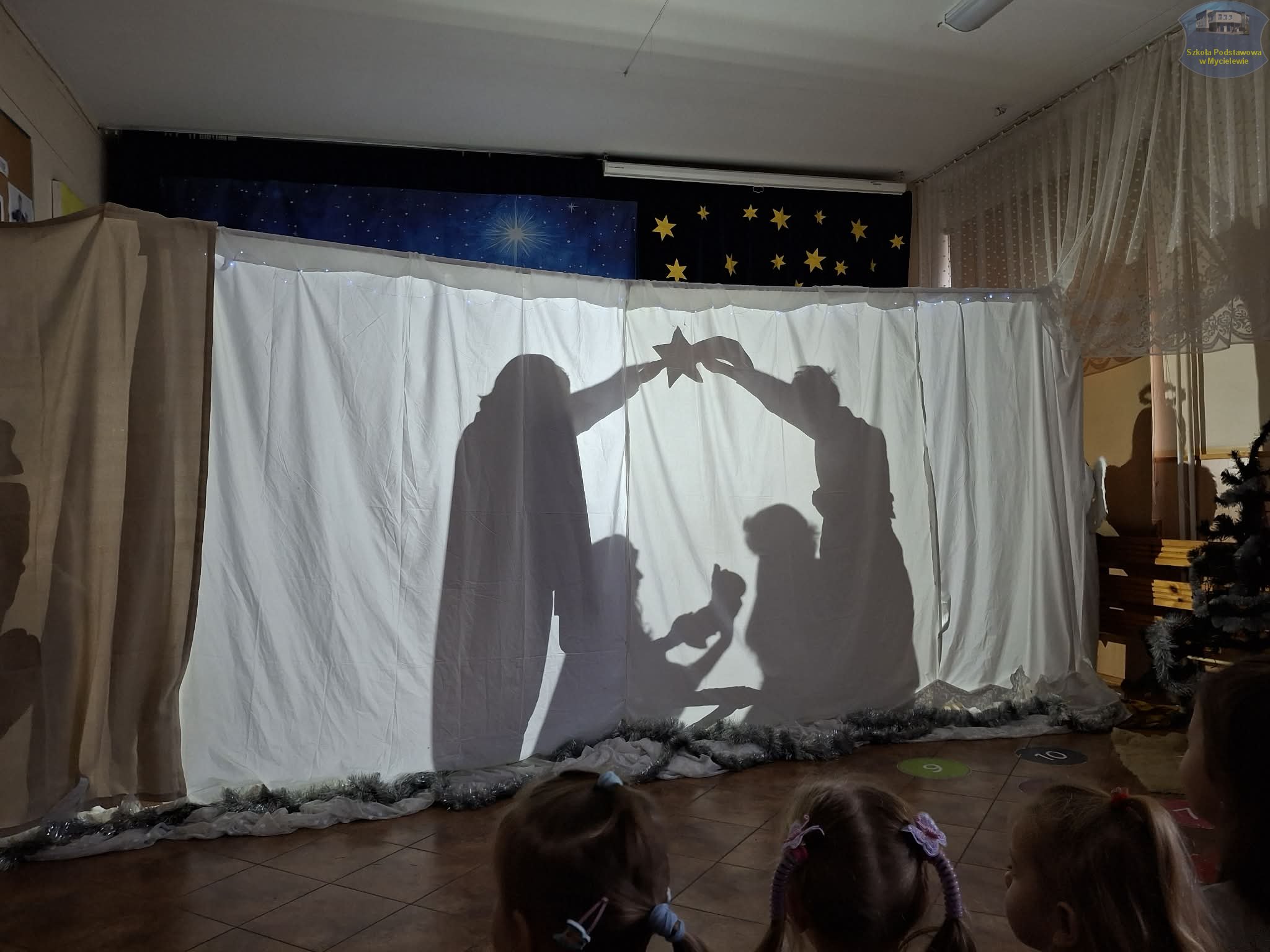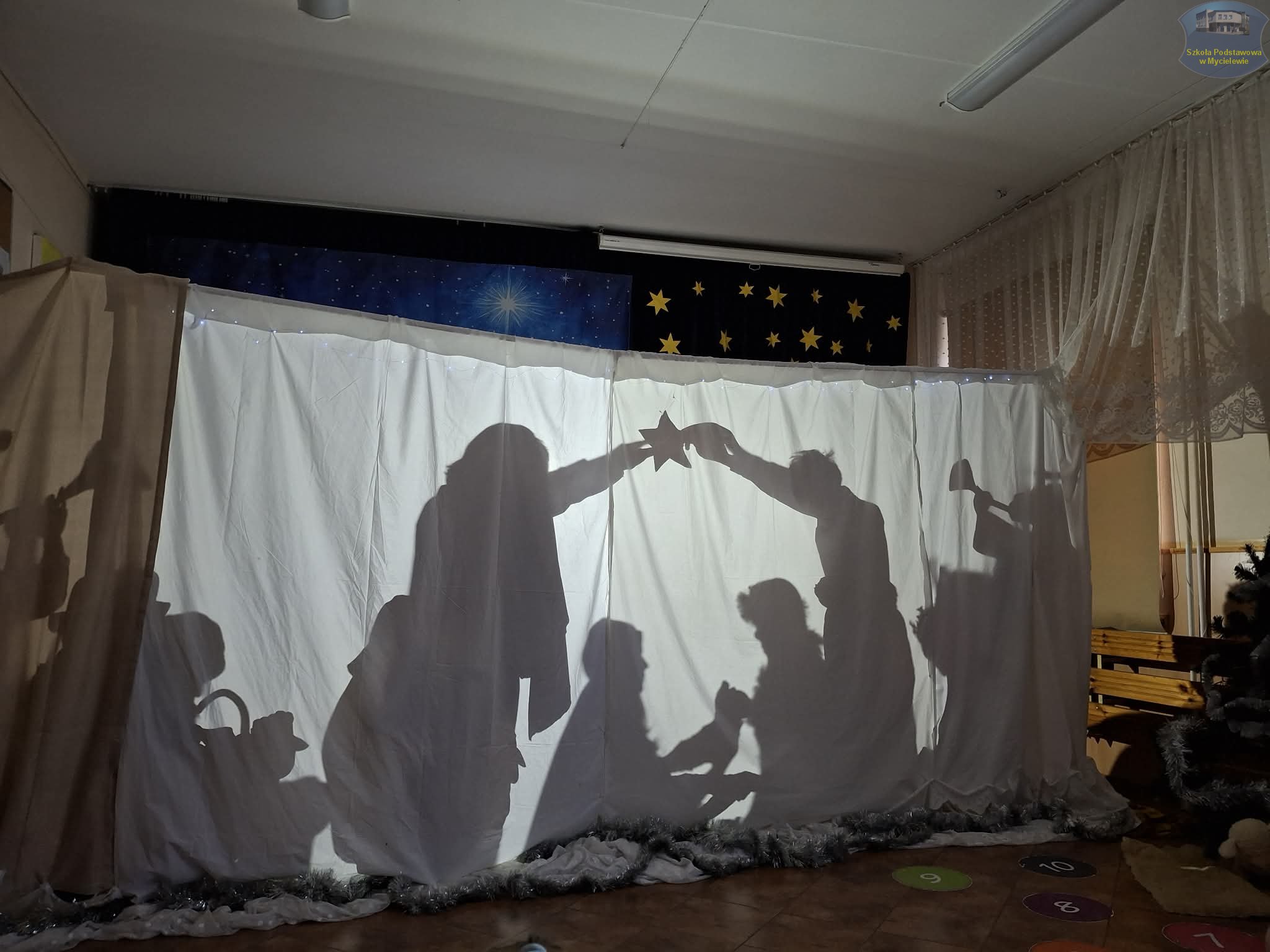 Jako pierwsi na scenie zaprezentowali się uczniowie w niezwykle nastrojowym „Teatrze Cieni” pt. „Noel”, przygotowanym pod kierunkiem pani Agnieszki Koralewskiej-Hak. Przedstawienie zachwyciło publiczność swoją formą, delikatnością oraz świątecznym przesłaniem. Wystąpili uczniowie: Maryja – Martyna Budziszewska, Józef – Alan Hak, Dzieciątko – Jakub Kiliński, Królowie – Oskar Kruger, Stanisław Nowakowski, Rafał Frątczak, Pasterze – Igor Fornalczyk, Maria Rubaszewska, Marcel Chojnacki, Anioły – Katarzyna Buksa, Martyna Wiekiera. W role szopki wcielili się Maciej Łuksztedt i Mikołaj Pezacki.