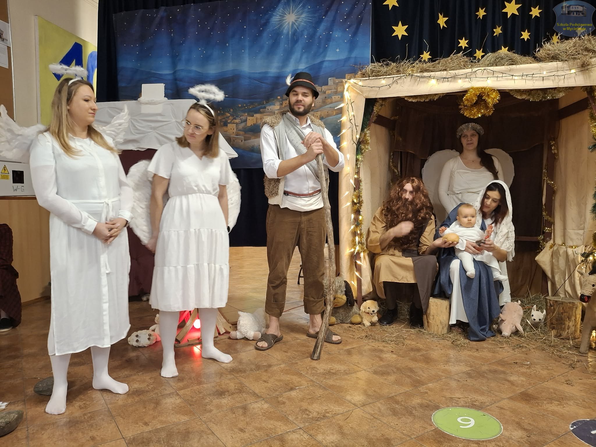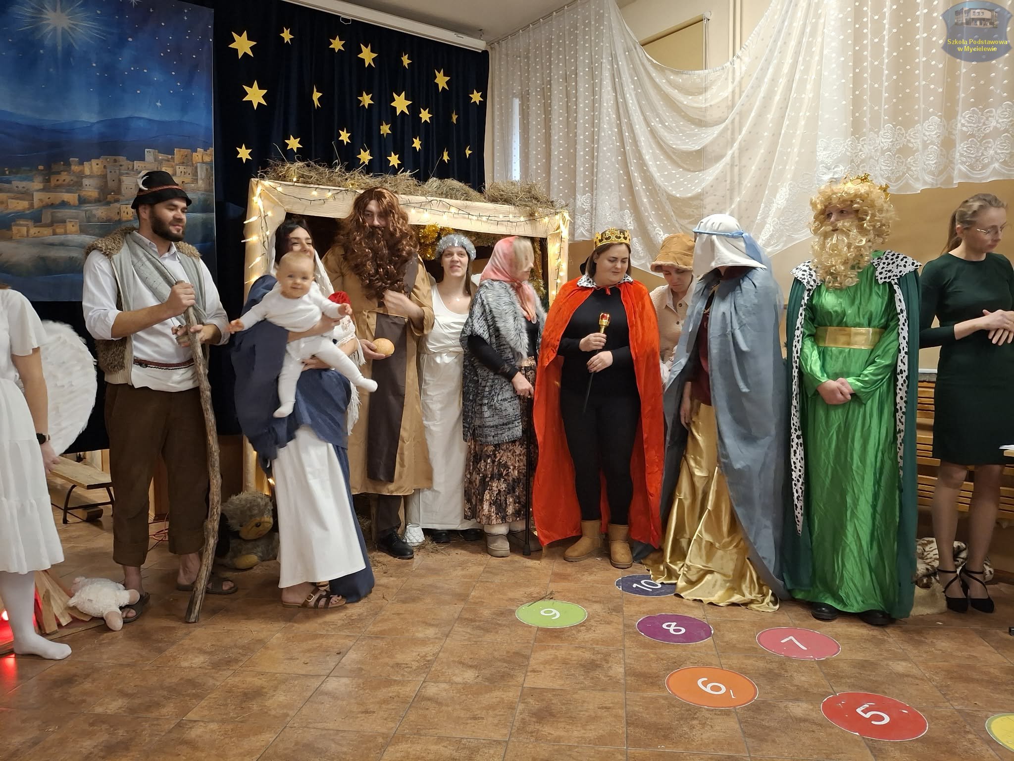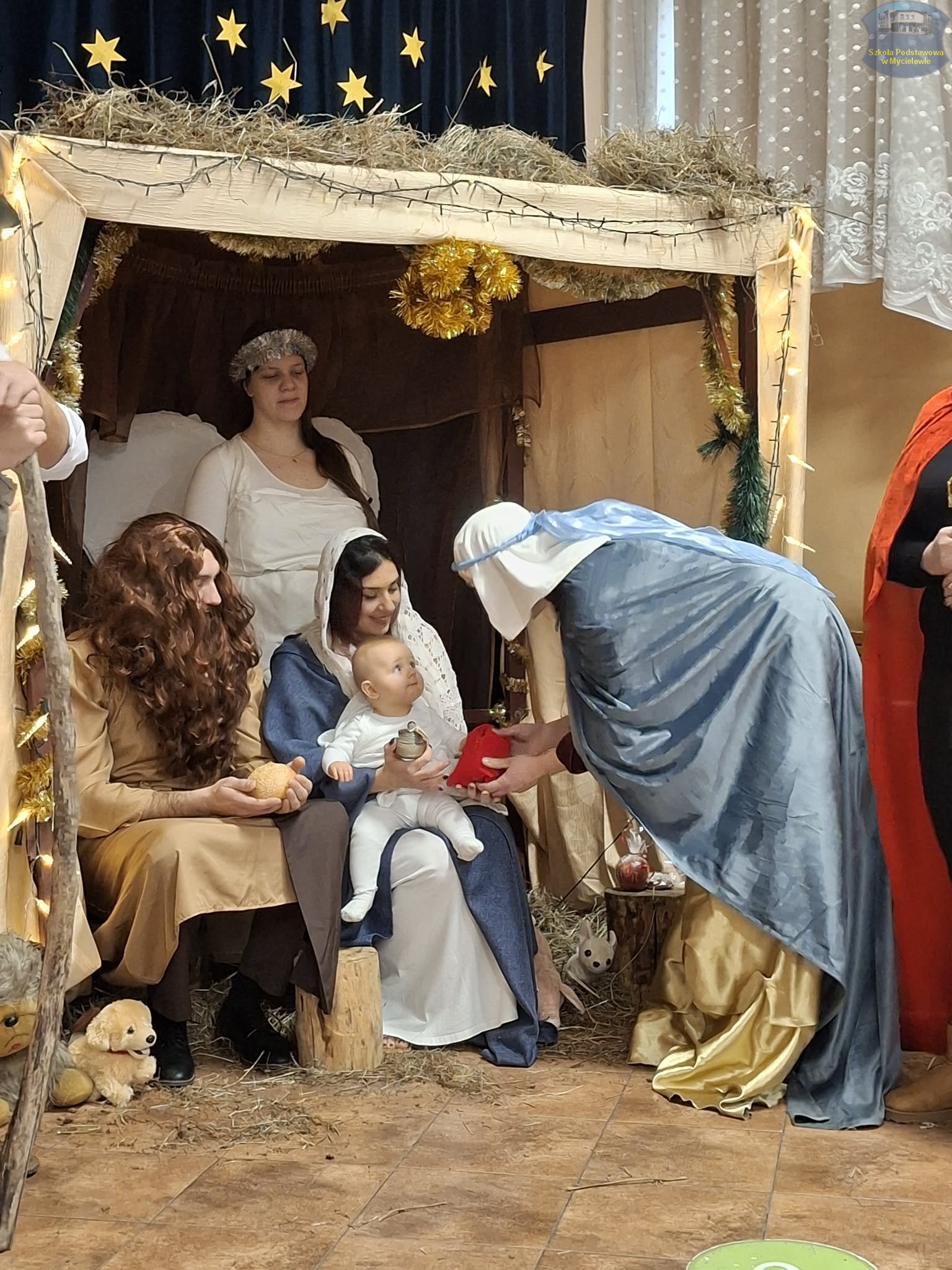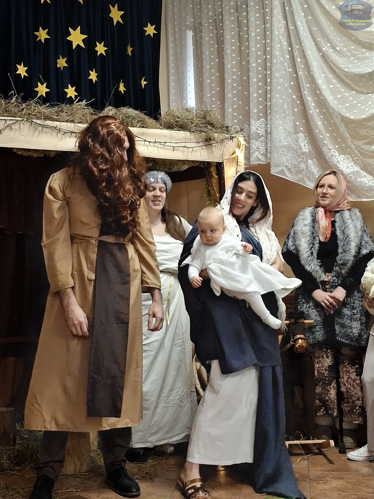 Kulminacyjnym momentem uroczystości były jasełka w wykonaniu rodziców, którzy wcielili się w biblijne postacie. Ich zaangażowanie, autentyczność oraz serce włożone w przygotowania sprawiły, że przedstawienie stało się ogromnym przeżyciem dla całej społeczności szkolnej.